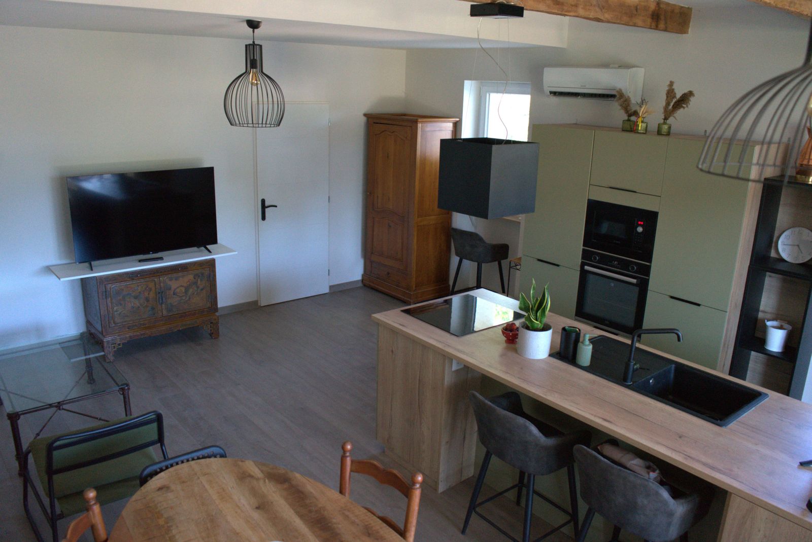 Elle comprend un séjour spacieux et lumineux exposé ouest et donnant sur le jardin, une chambre lumineuse et climatisée exposée est, une cuisine bien équipée et une salle de bains.