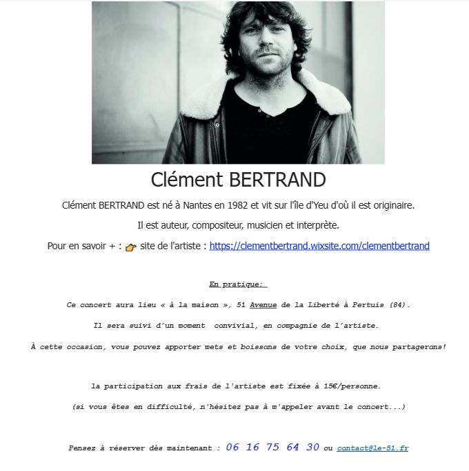 - Samedi 22 novembre à 20h00 (Clément Bertrand)