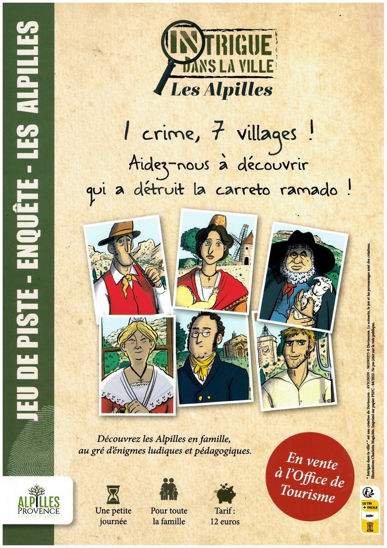 « Intrigue dans la ville® - Les Alpilles » est un jeu d’énigmes accessible à tous, pouvant se pratiquer en famille ou entre amis, destiné à faire découvrir le patrimoine de manière ludique et pédagogique.