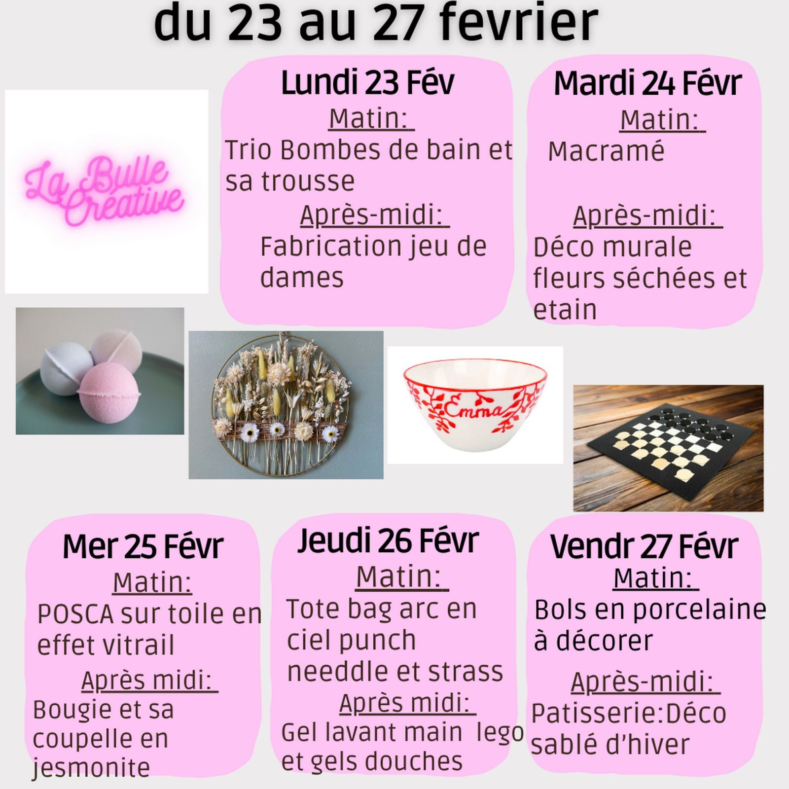 Stages créatifs pour les vacances d'hiver.