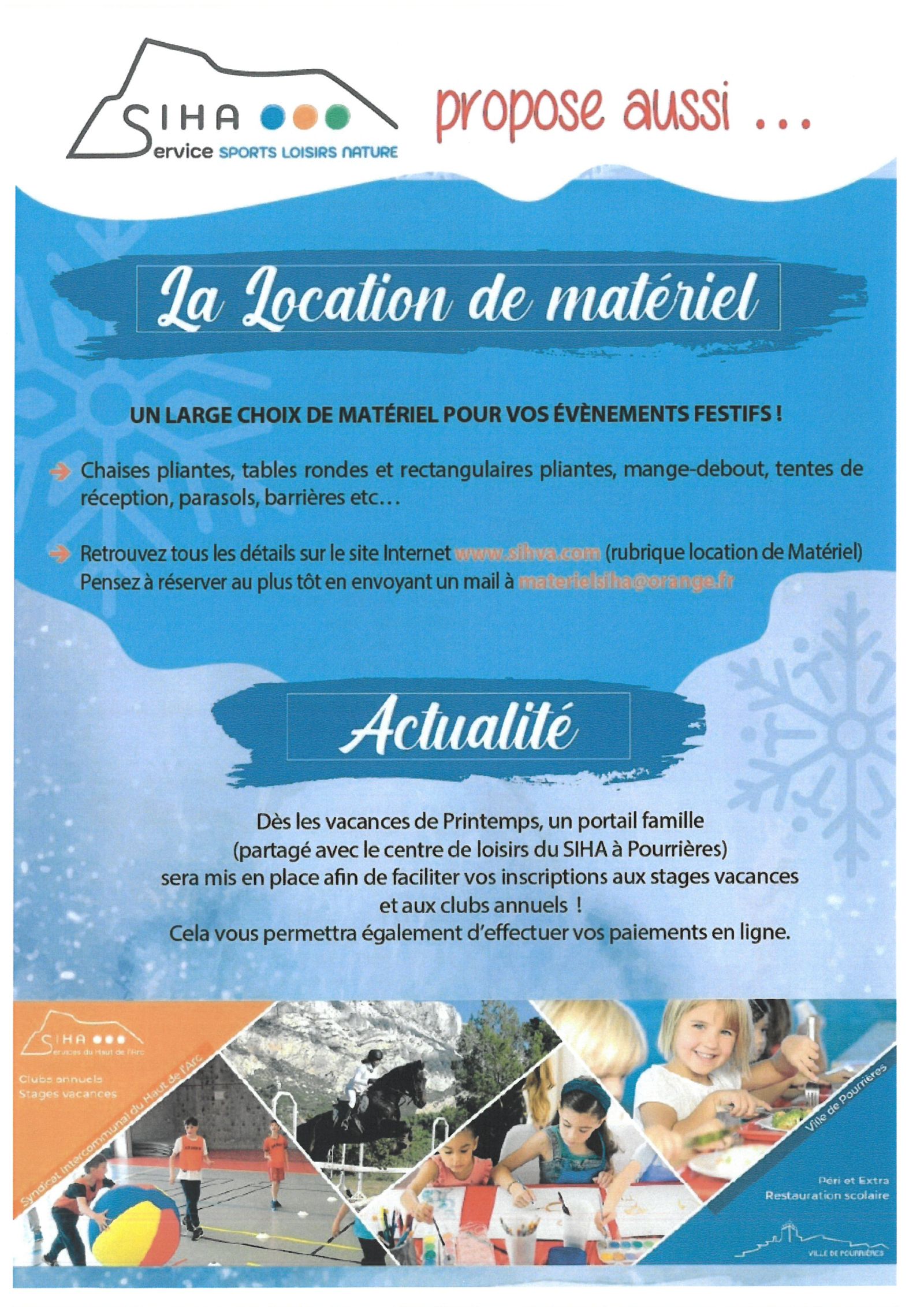 Le SIHA propose aux habitants de ses 10 communes, des activités sportives, de loisirs et en lien avec la nature. Ainsi, ce sont plus de 40 stages différents qui sont organisés lors des vacances scolaires d’automne, d’hiver, de printemps et d’été. Notre équipe propose des stages à thème spécifique, des stages multisports, ainsi que des stages mixtes multisports avec thème. Grâce à la coopération de nos partenaires fidèles et impliqués, c’est une large palette de possibilités qui s’offrent à vos enfants dès la moyenne section de maternelle.