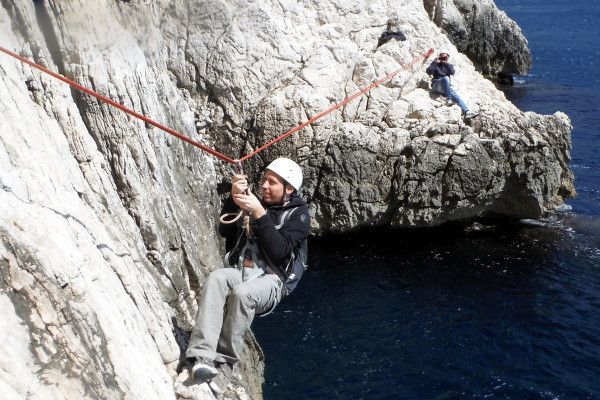Utilisant les techniques de corde telles que "le rappel", "la marche encordée sur vire" et "la tyrolienne", cette excursion à la demi-journée vous fera découvrir le cœur des Calanques où peu de personnes s’aventurent.