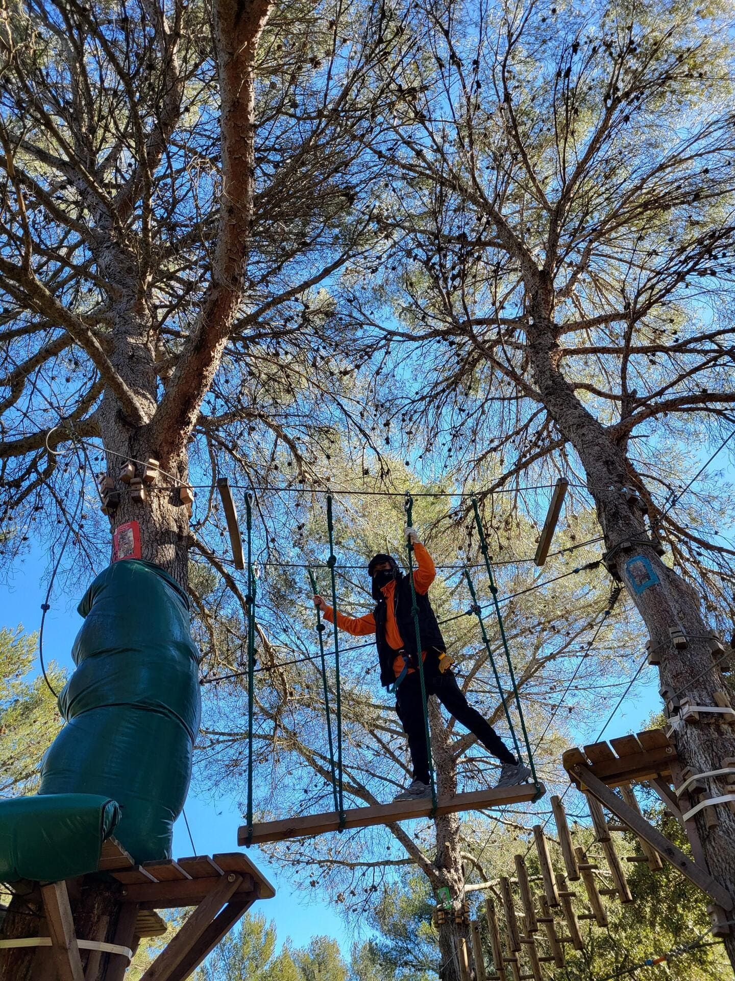 Pour les plus grands (à partir de 1m35), les plateformes sont situés un peu plus en hauteur et permettent vraiment de profiter des balanciers dans les arbres. Entre corde de Tarzan, pont de singe et maxi tyrolienne (jusqu'à 200 mètres), vous pourrez profiter d'une vue imprenable sur le parc de Figuerolles.