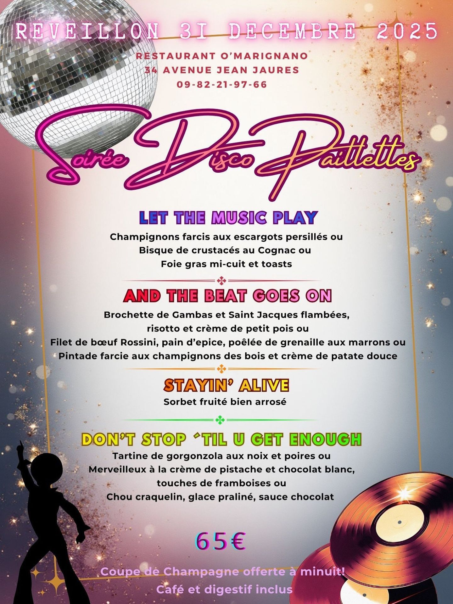 Envie de danser ? De bien manger ? De vivre une belle soirée "disco paillettes" dans une ambiance festive et conviviale pour le passage à la nouvelle année ? Le restaurant "O’Marignano" vous ouvre ses portes.