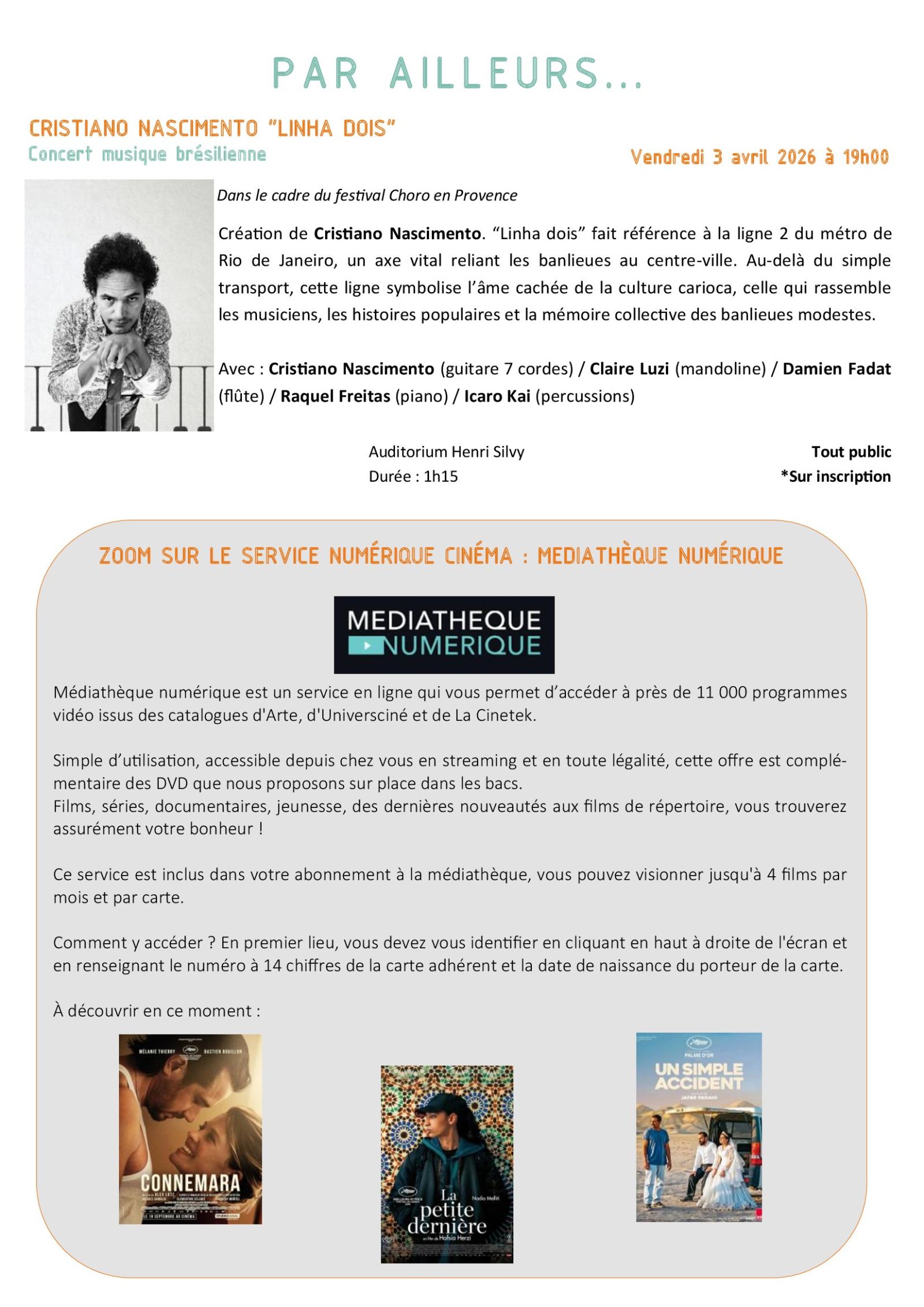 Programme médiathèque avril