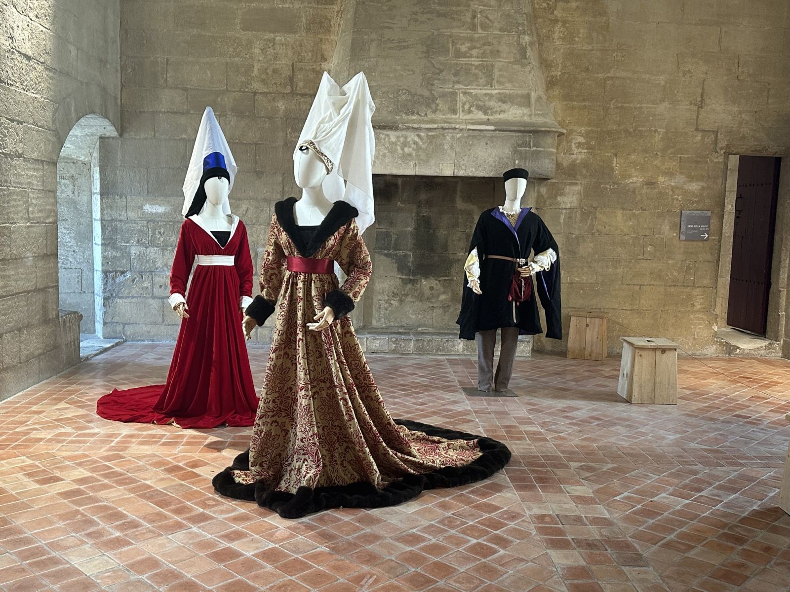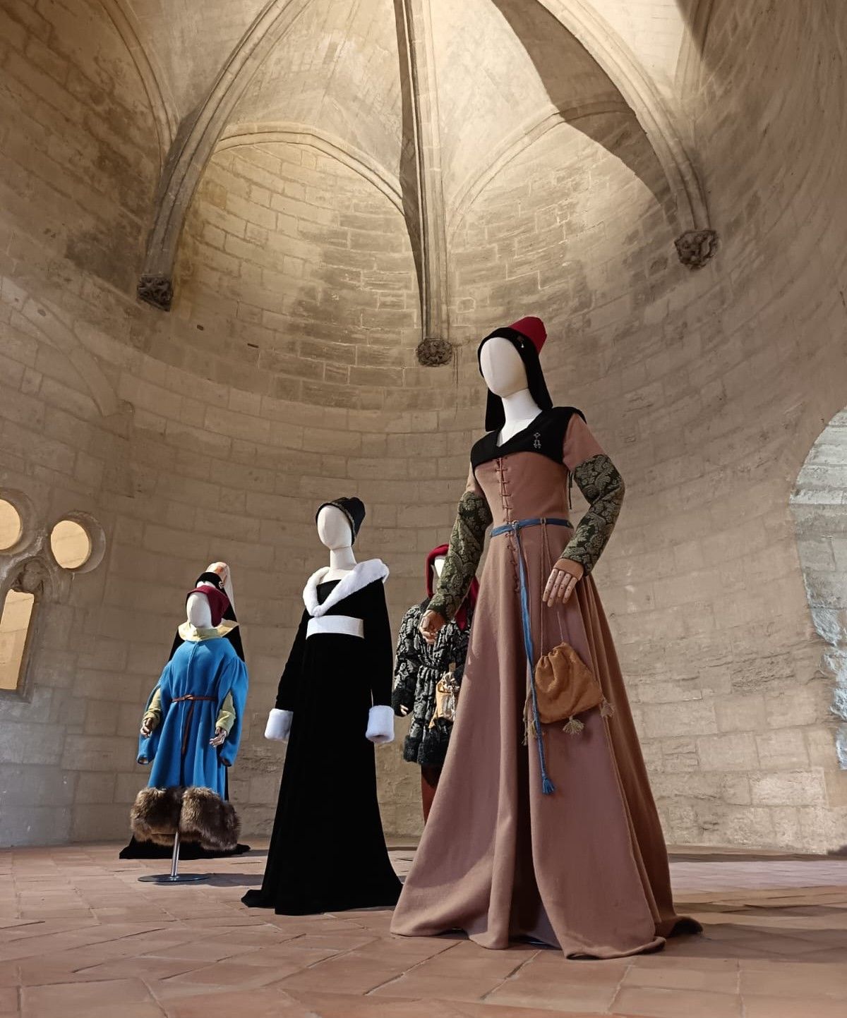 À travers costumes reconstitués, textiles précieux et accessoires somptueux, l’exposition dévoile les codes vestimentaires d’une époque où le vêtement est bien plus qu’une simple parure : un véritable marqueur social et un instrument de pouvoir. Le parcours met en lumière les influences croisées entre les grandes cours d’Europe, les innovations des tailleurs et la recherche d’élégance qui anime nobles et bourgeois. Le visiteur découvre notamment le goût du roi René d’Anjou, figure emblématique de la Provence médiévale, pour les soieries fines, les velours somptueux et les influences vestimentaires venues d’Italie ou d’Espagne ! Robes à traîne, pourpoints ajustés, houppelandes amples et coiffes extravagantes révèlent toute la créativité et la sophistication des modes médiévales. Une immersion vivante et didactique dans l’art du paraître au XVe siècle, accessible à tous les publics !