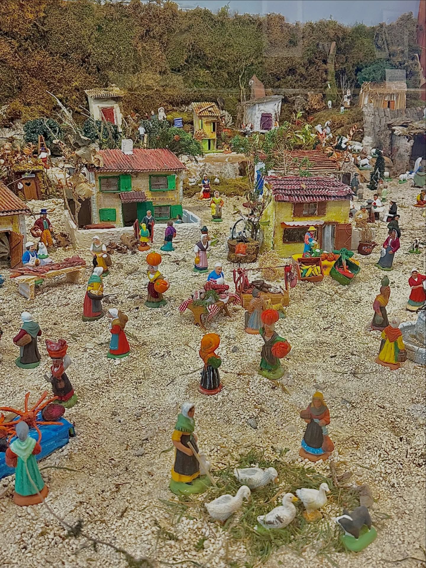 Exposition d'une crèche provençale traditionnelle représentant différentes scènes, personnages et paysages de Provence.