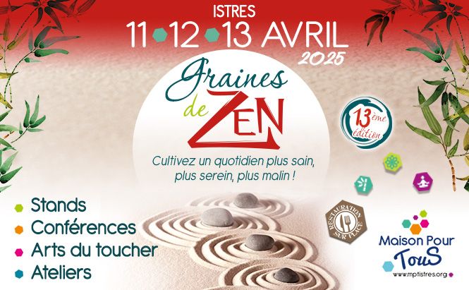 13ème édition de "Graines de Zen", le salon du bien-être organisé à Istres par la Maison Pour Tous. Sands, conférences, ateliers ...