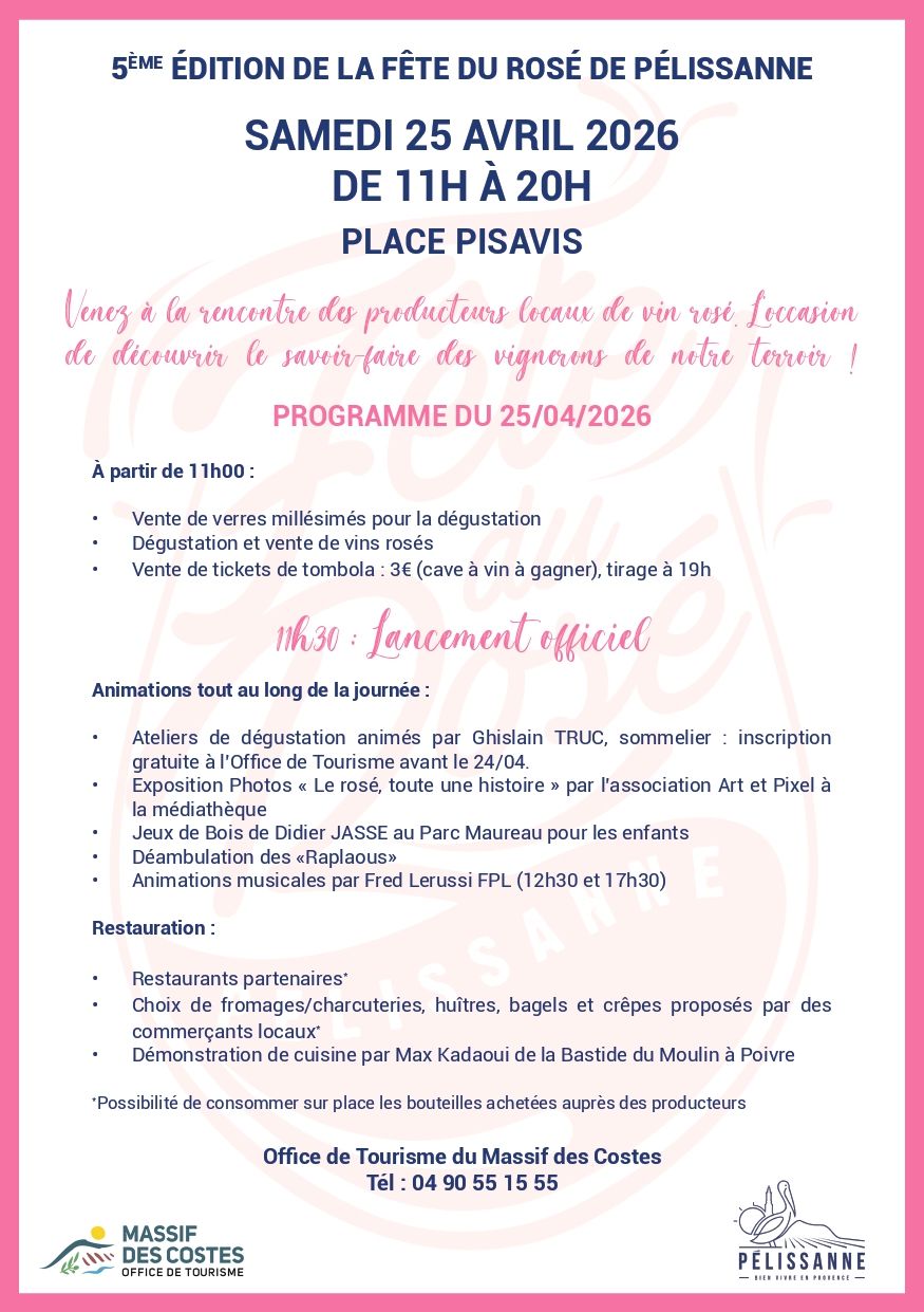 Lors de cette journée, de nombreuses animations et dégustations de vins de Provence, vous attendent dans le cœur historique de Pélissanne.