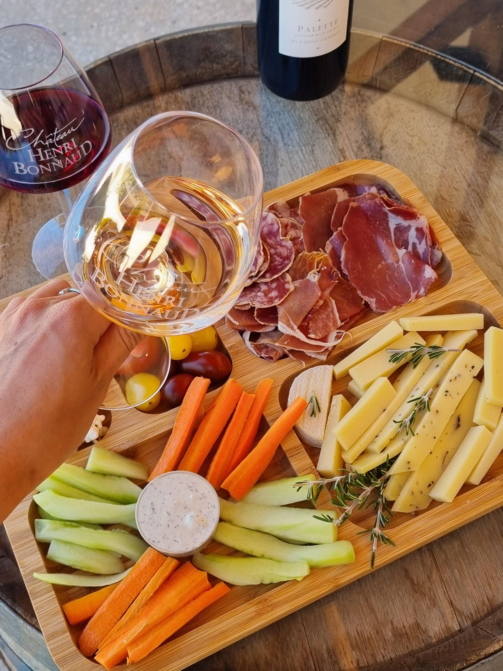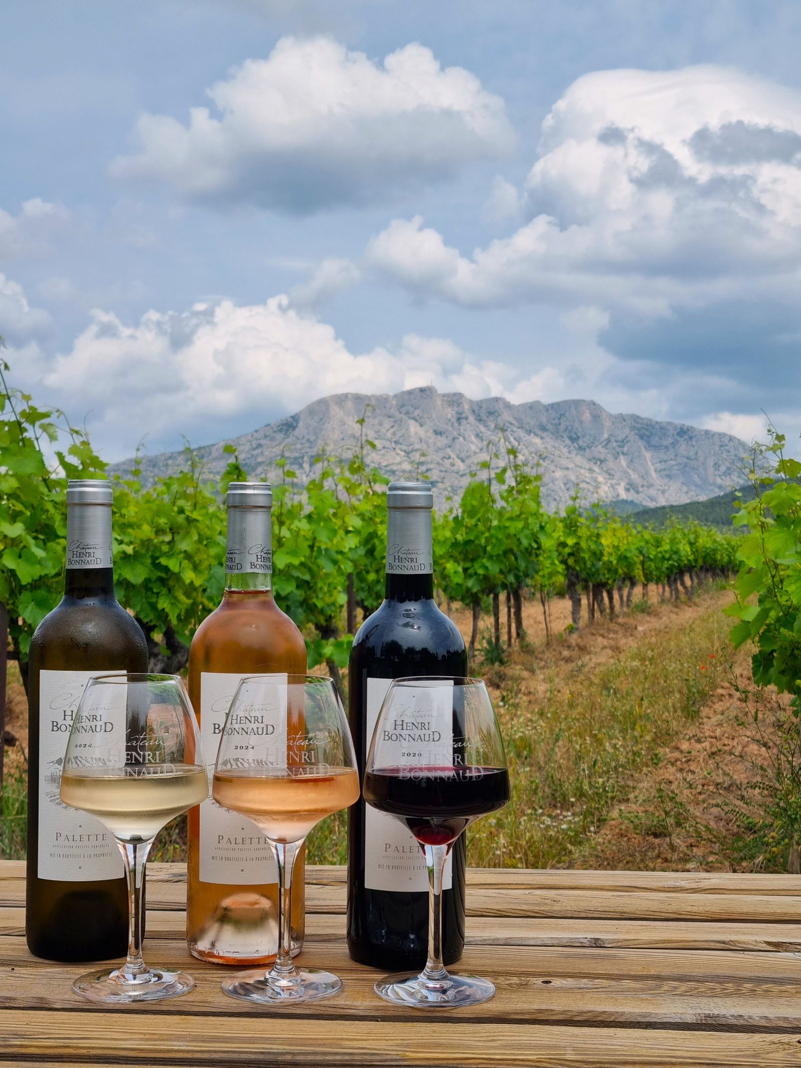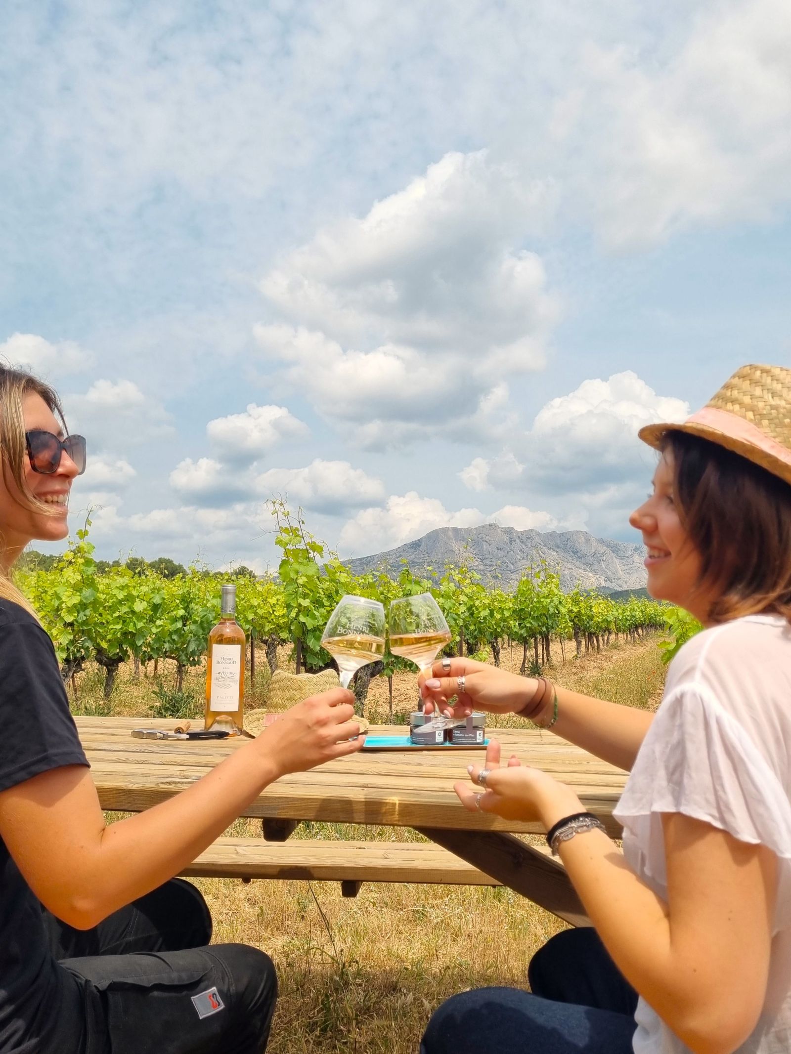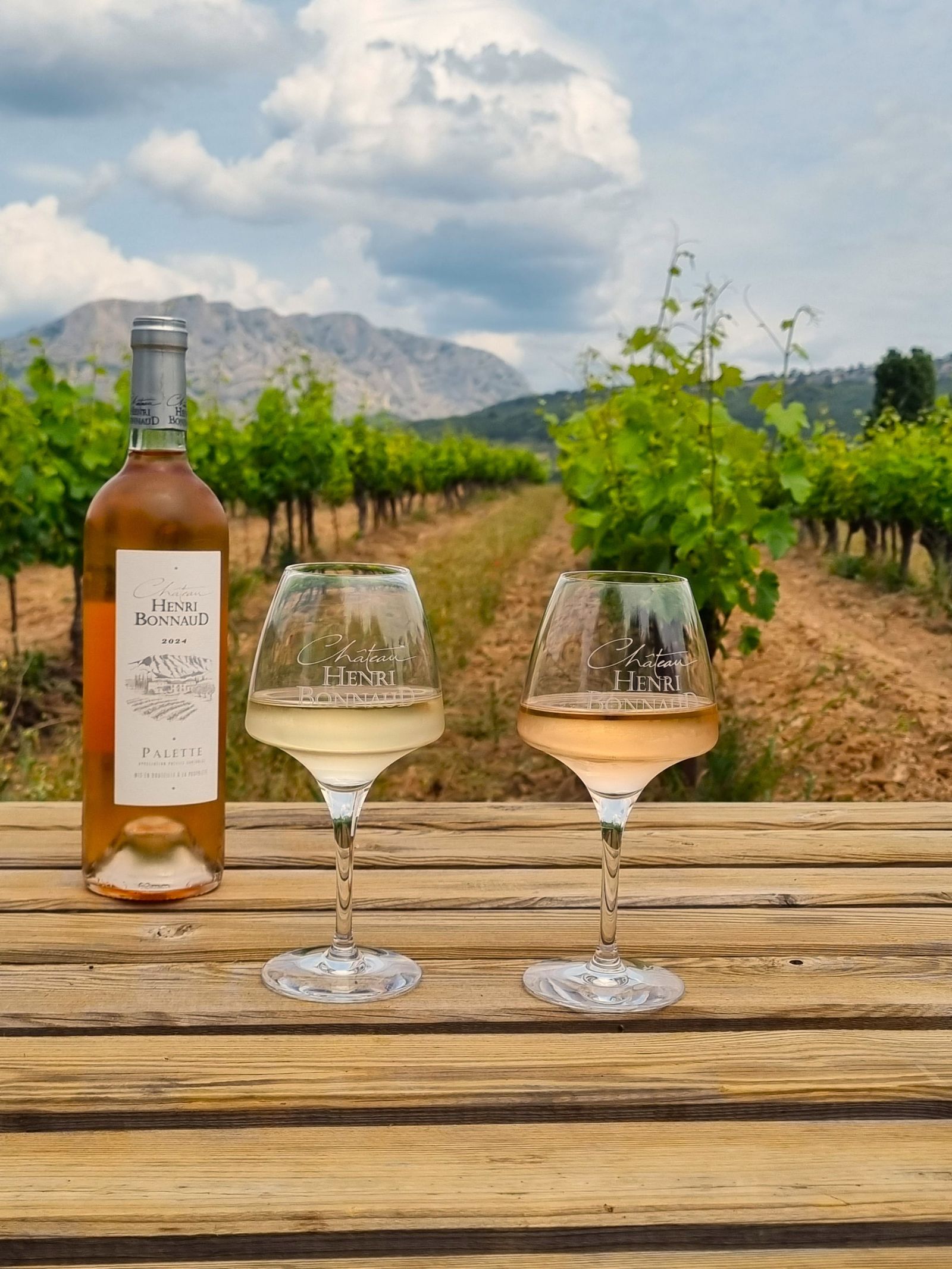 Apéro Sunset au cœur des vignes du Château Henri Bonnaud : dégustation de trois de nos cuvées emblématiques, accompagnée de généreux plateaux de fromages et de charcuteries, dans un cadre unique face à la Sainte-Victoire