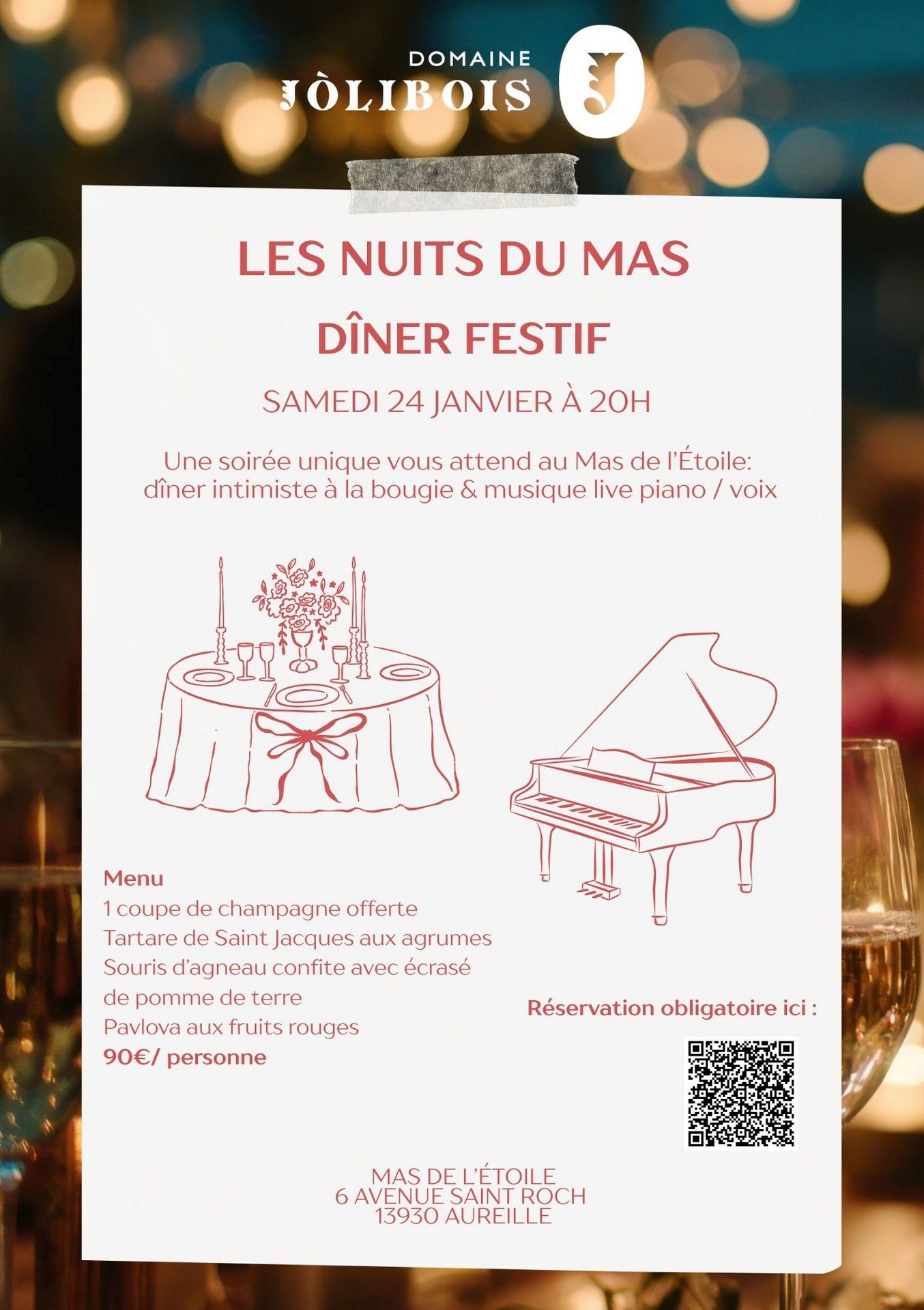 © Domaine Jolibois Affiche Menu Dîner festif au Mas de l'Étoile Aureille 24.01.26