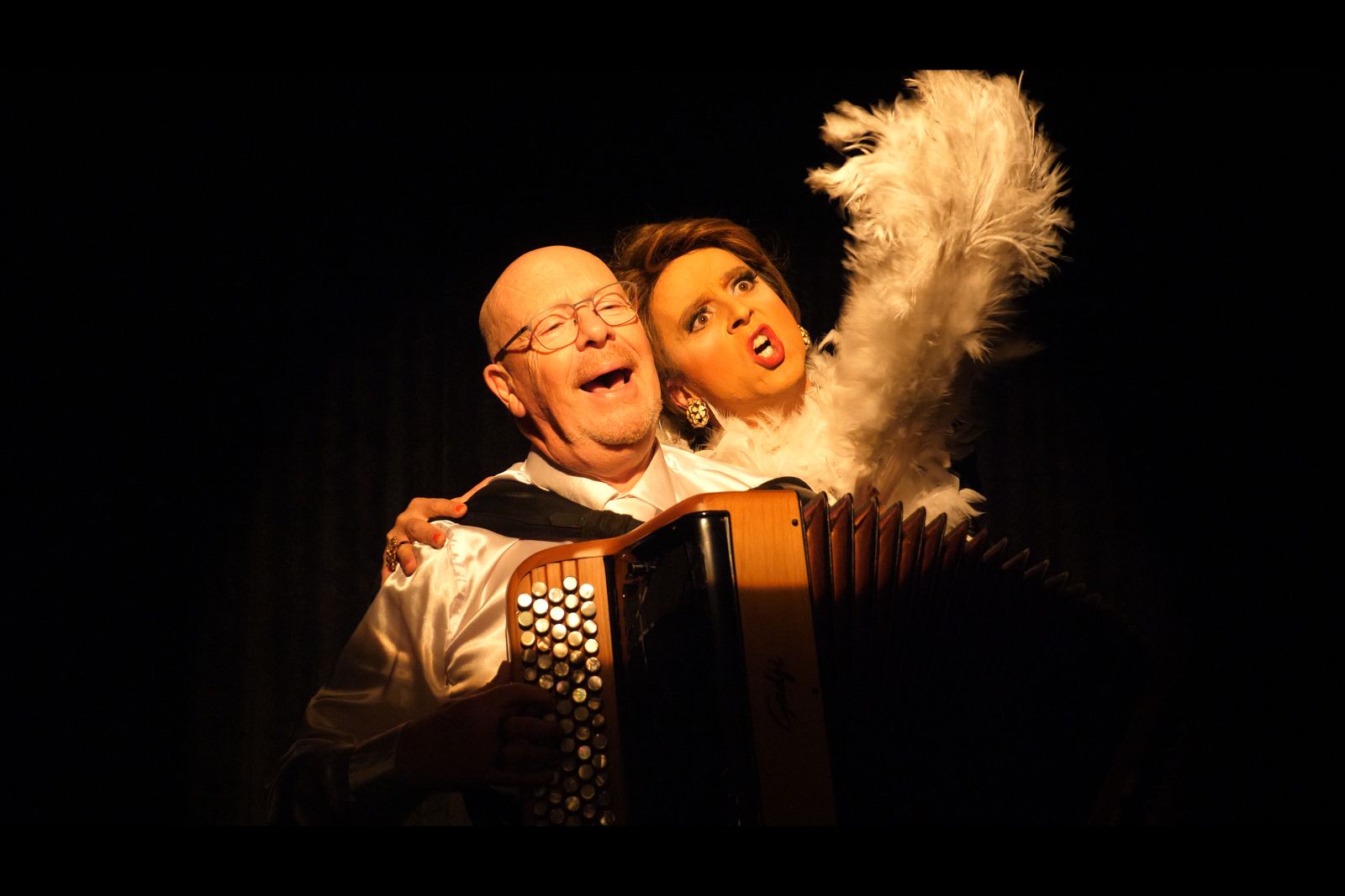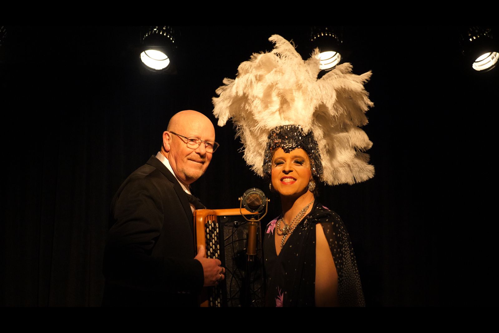 Elle interprète avec fougue des succès puisés dans le répertoire des chansons à texte qui vont devenir autant de prétextes à mettre en valeur les facettes de sa personnalité. Et quand P'tit Pierre interprète à son tour quelques standards du répertoire d'accordéon, elle s'exalte, virevolte, trébuche, et le spectacle se fait comédie. Ensemble ils interprètent des chansons d’Yvette Guilbert, Fréhel, Yvonne Printemps, Patachou, Barbara, Joséphine Baker...