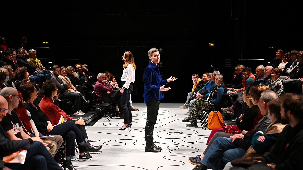 La musicienne performeuse et metteuse en scène Maguelone Vidal s’est intéressée au sujet en découvrant, à quelques rues de chez elle, une autre Maguelone Vidal, architecte. Des connaissances communes, le même boucher, une homonymie cocasse et un peu d’agacement parfois... La première en a tiré un spectacle malicieux et plein de surprises, dans lequel la seconde est inclue. Au milieu du public, le duo jongle avec un tas de questions et nous prend à partie. Qu’est-ce que nos noms et prénoms disent de nous ? Comment les avons-nous apprivoisés ? Quels fantasmes, histoires, héritages portent-ils ? Puis, d’autres voix s’élèvent, contribuent au débat, chantent, deviennent un chœur virtuose dont la partition glisse du chant grégorien au beatbox en passant par le hip hop... Et nom de nom, c’est vraiment grisant !