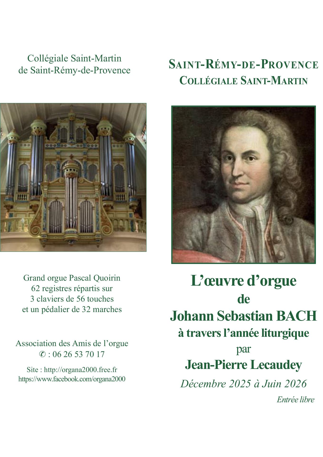 La collégiale Saint-Martin de Saint-Rémy-de-Provence vous invite à participer au Festival Organa 2025 - 2026.