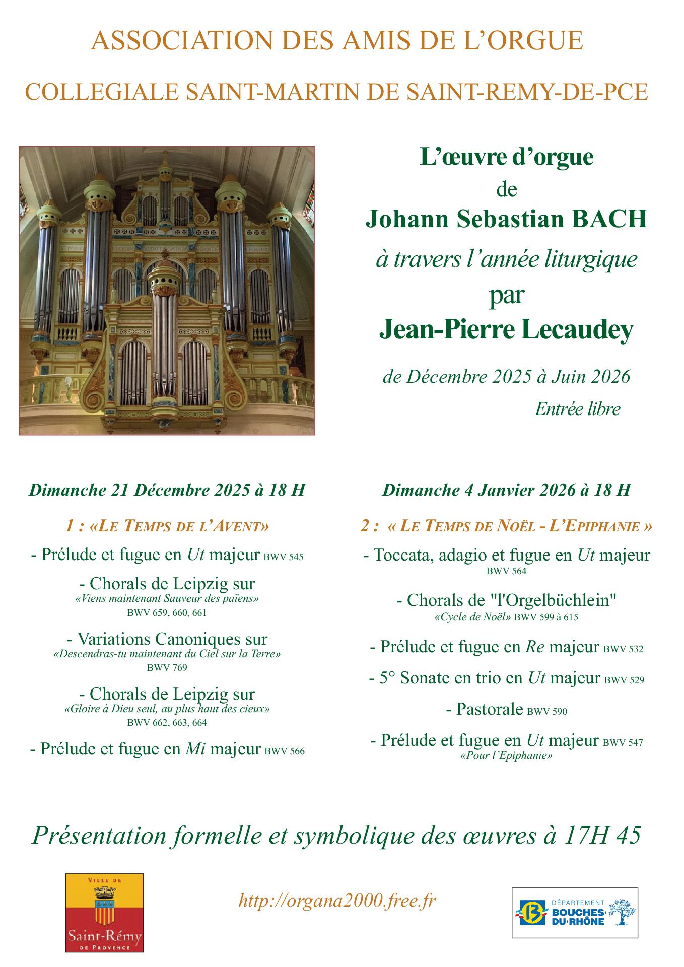 © Association des Amis de l'Orgue Dates d'audition orgue à Saint remy de provence