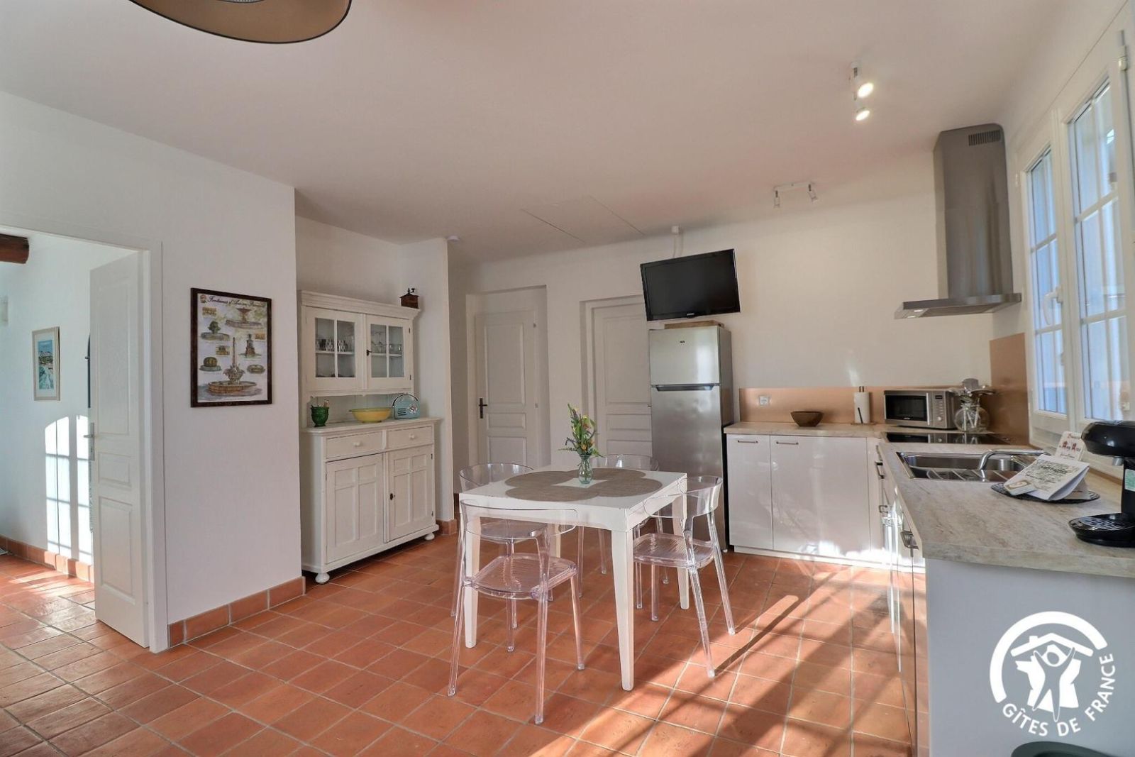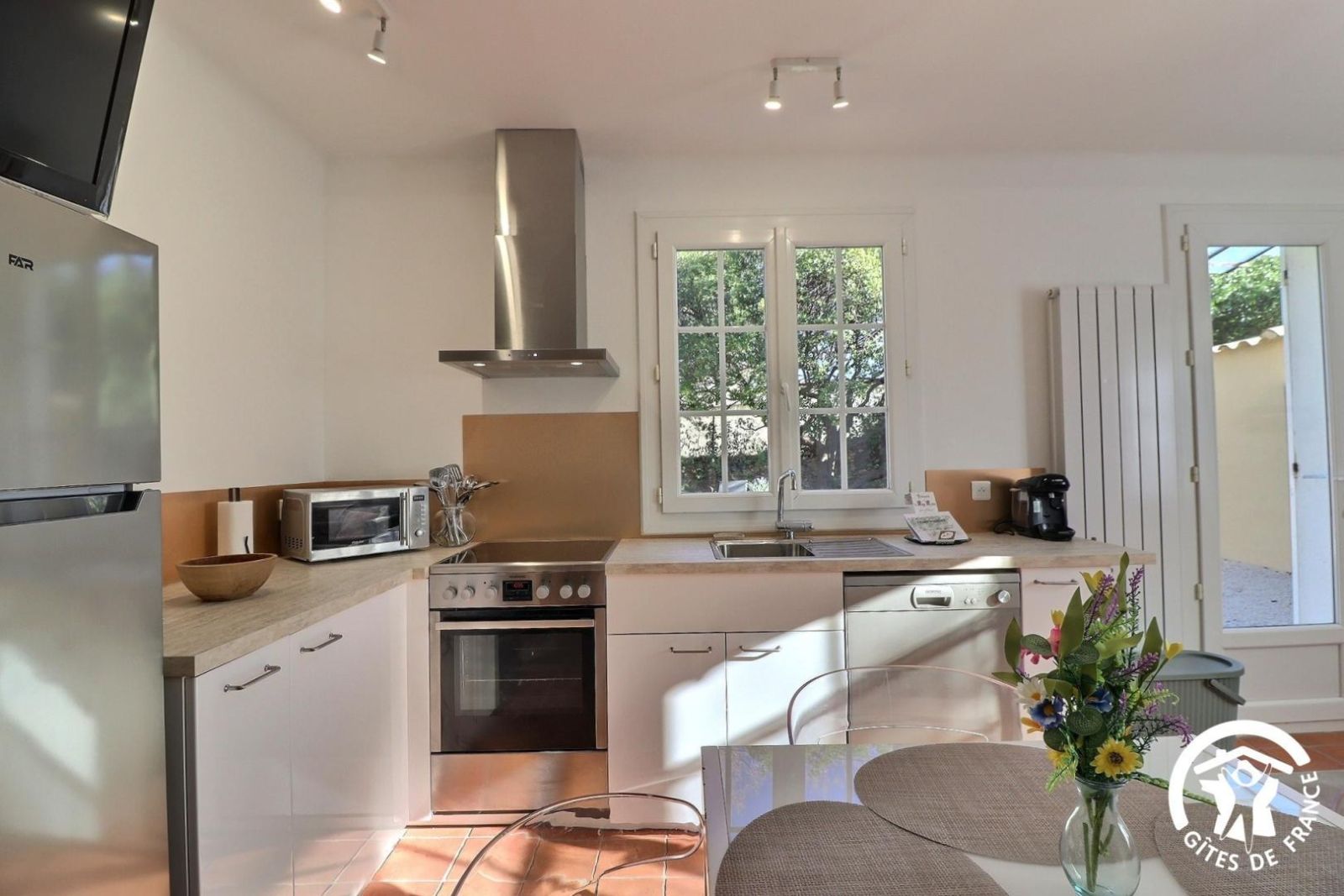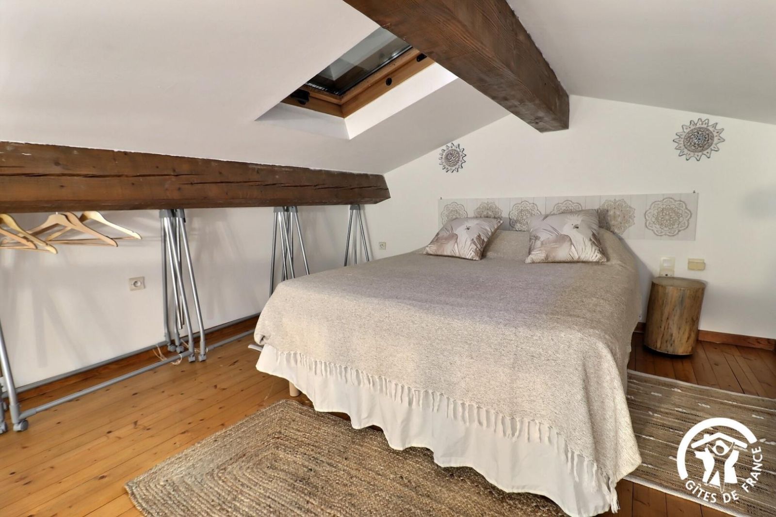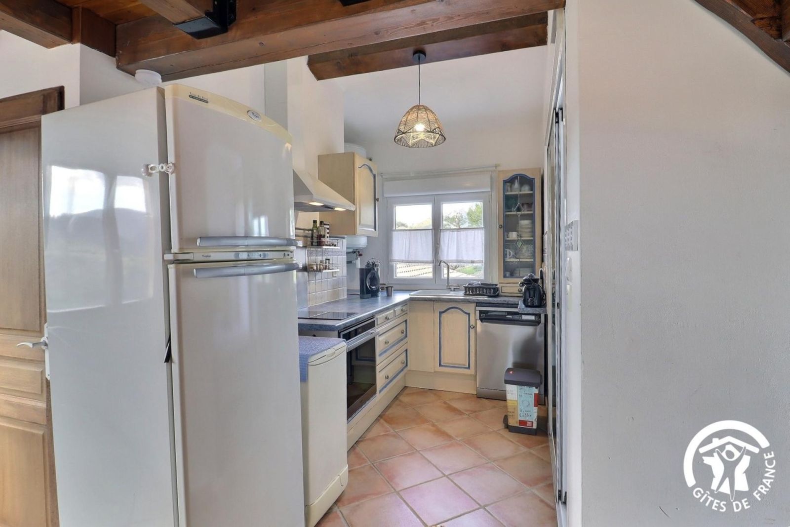 Cuisine américaine spacieuse et fonctionnelle, séjour confortable et chaleureux (convertible 2 personnes, TV, hi-fi) attenant à la chambre, lumineuse (2 lits 90 x 200 cm). Grande salle de bain aux tons de bois et d'ardoise. Chauffage électrique. Draps et torchons fournis.