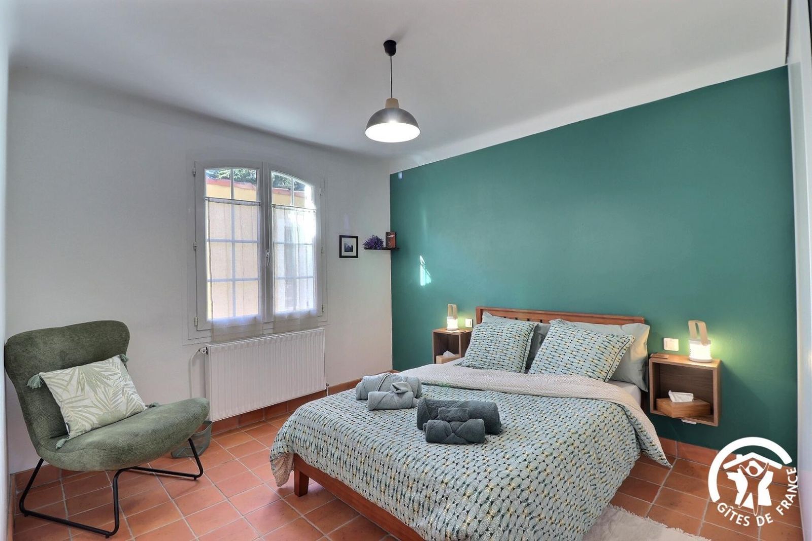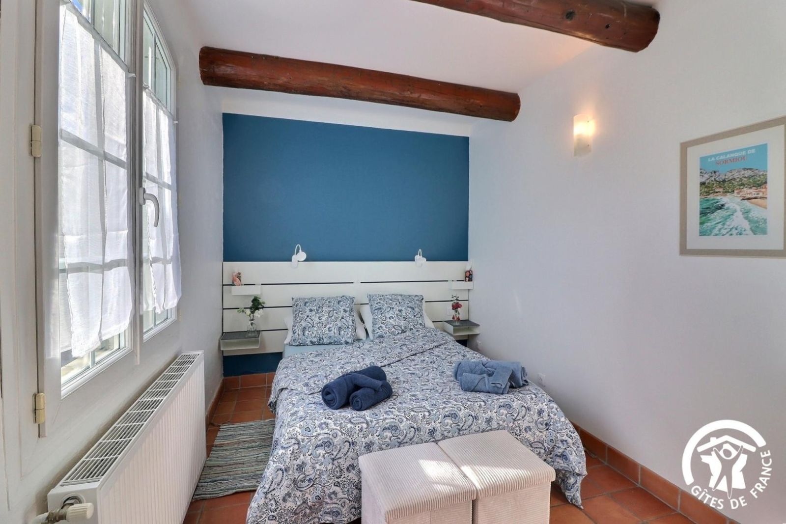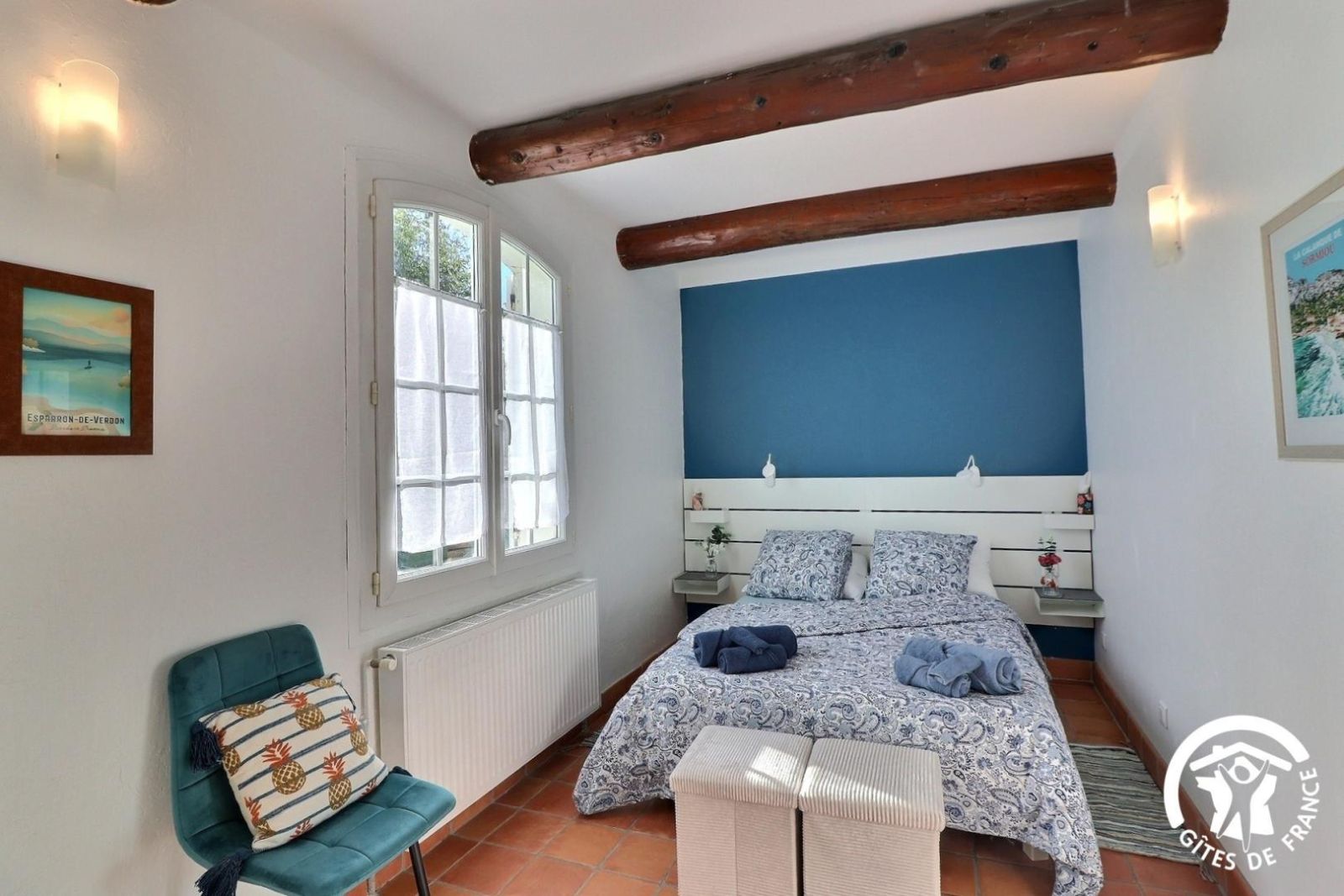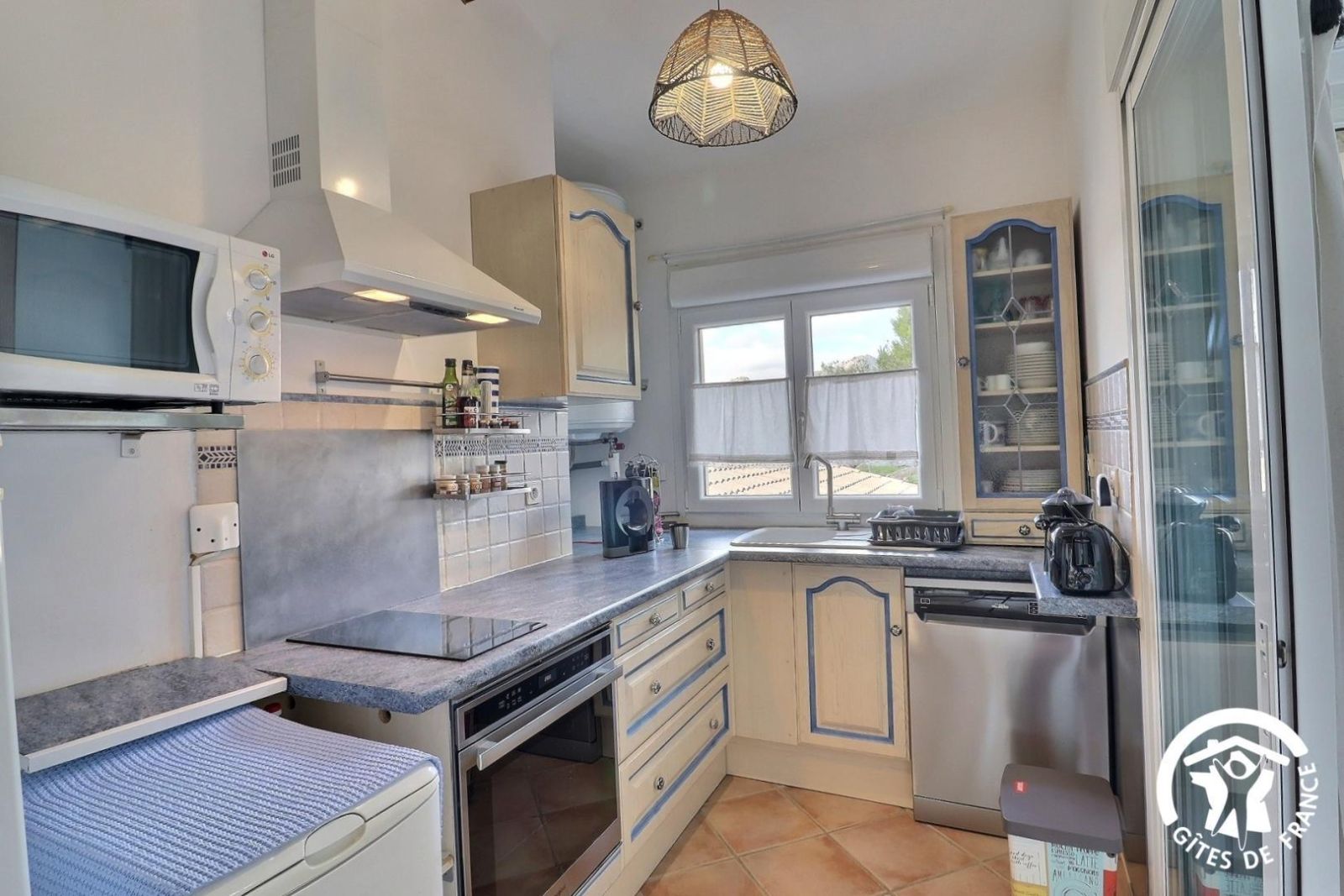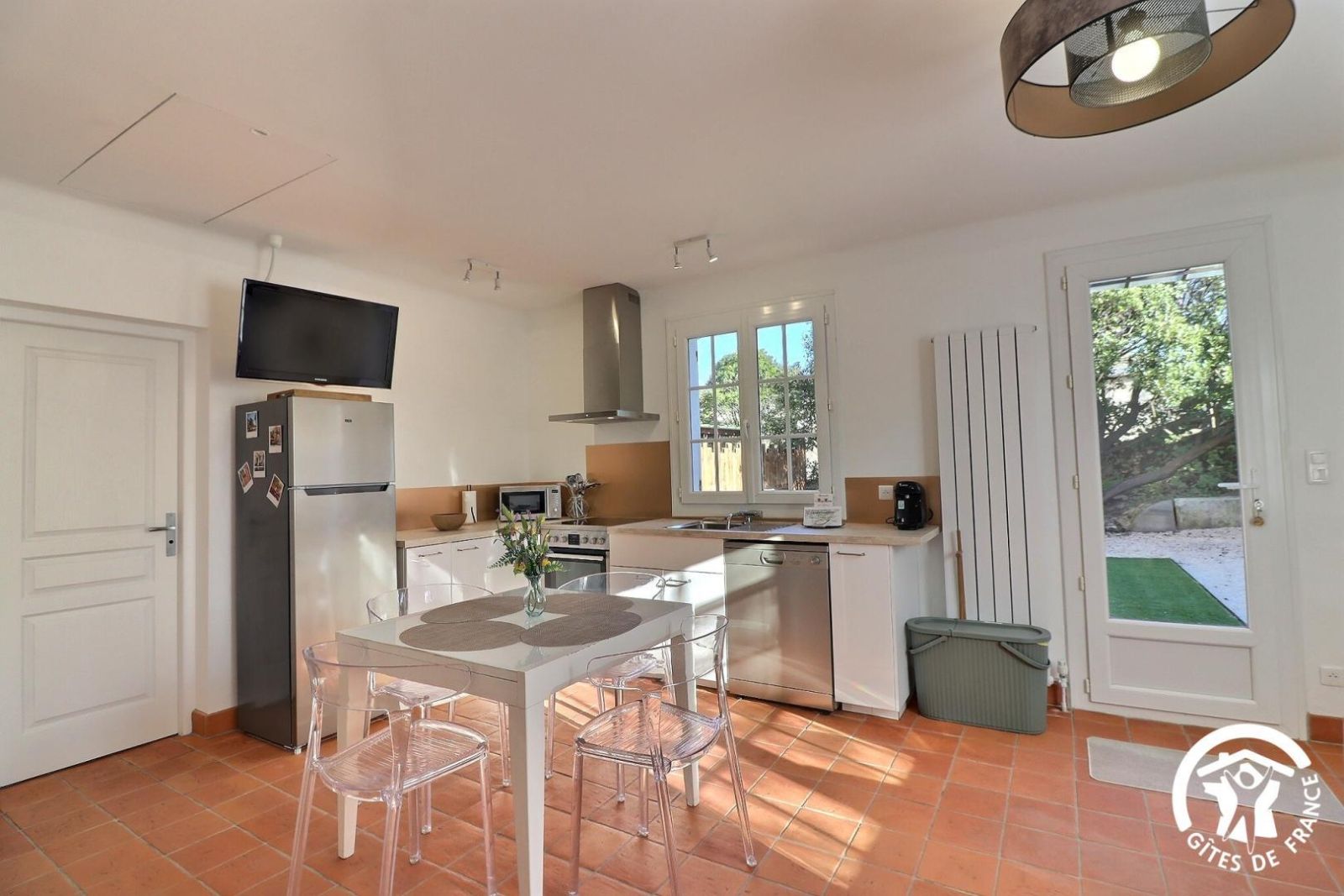 Cuisine américaine spacieuse et fonctionnelle, séjour confortable et chaleureux (convertible 2 personnes, TV, hi-fi) attenant à la chambre, lumineuse (2 lits 90 x 200 cm). Grande salle de bain aux tons de bois et d'ardoise. Chauffage électrique. Draps et torchons fournis.