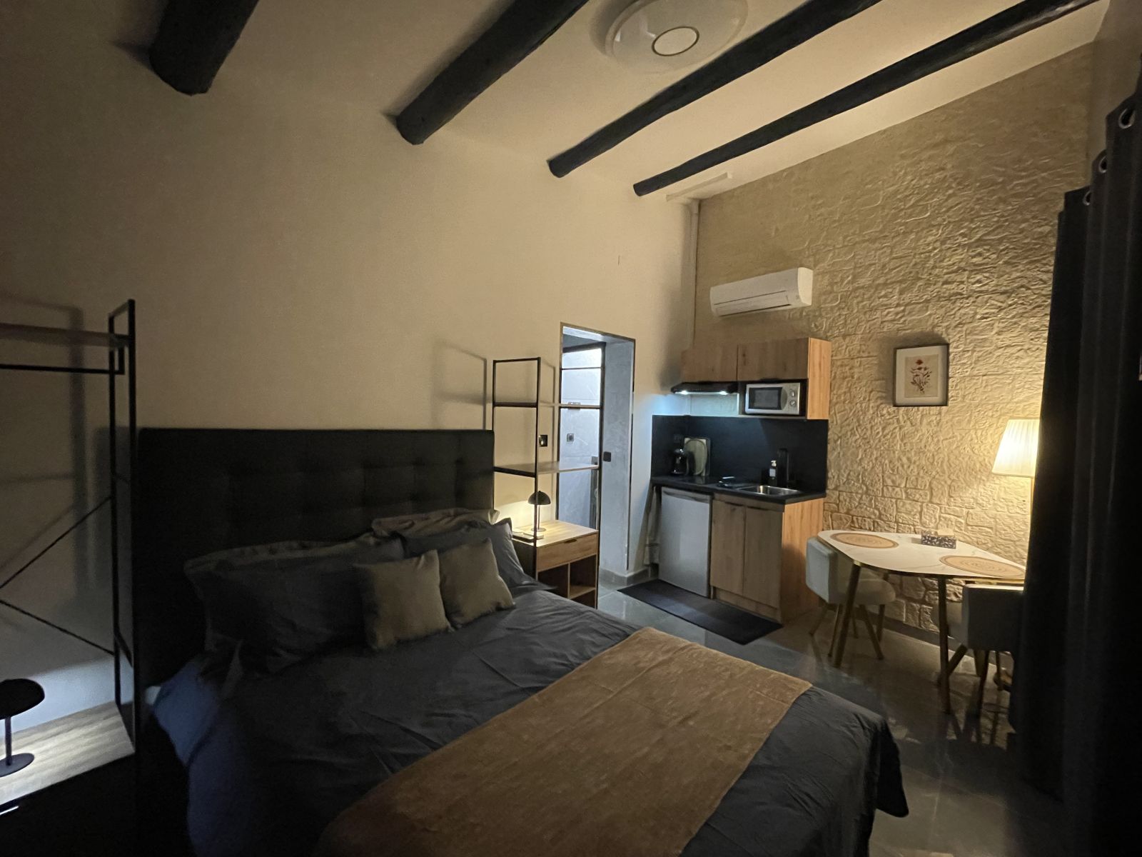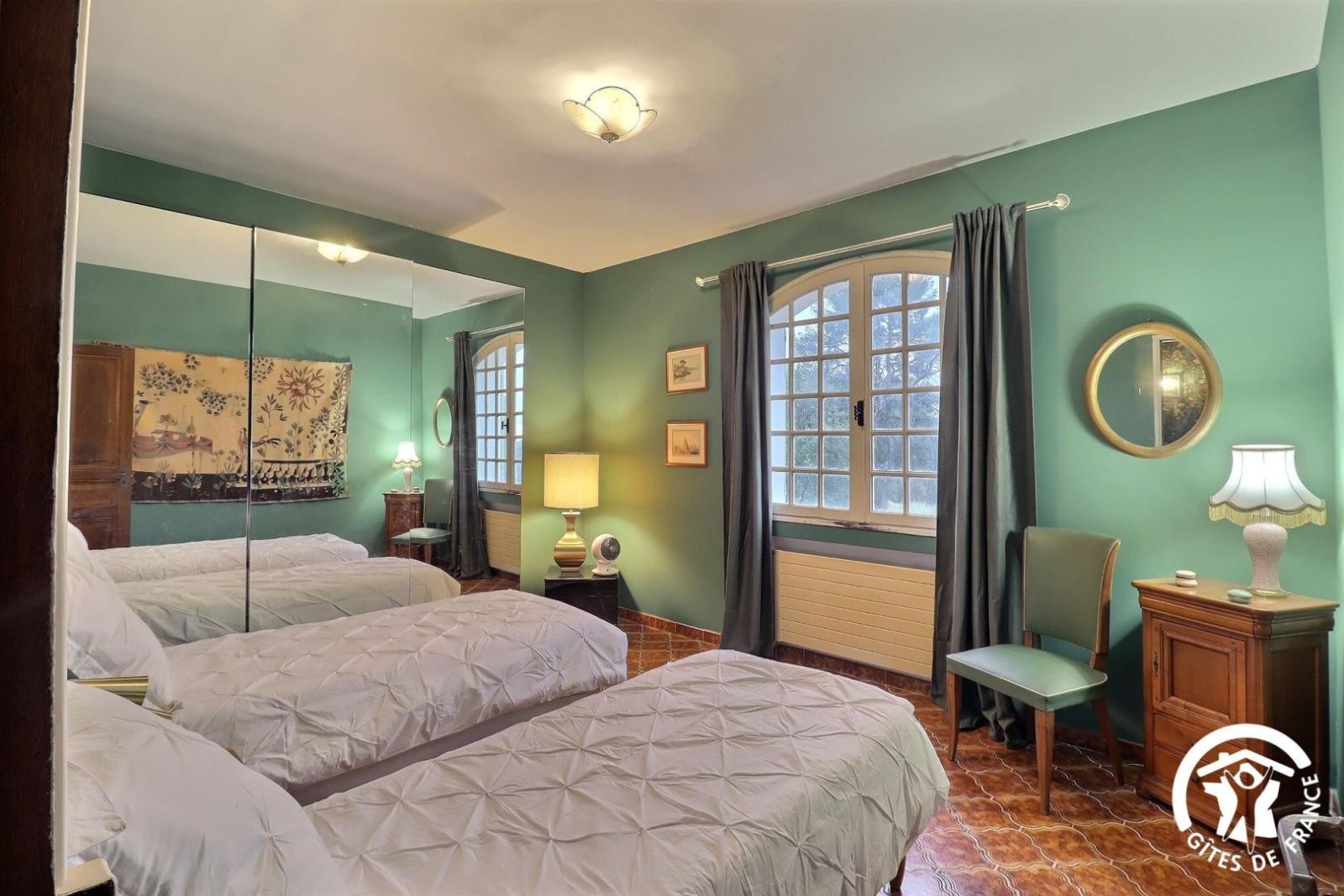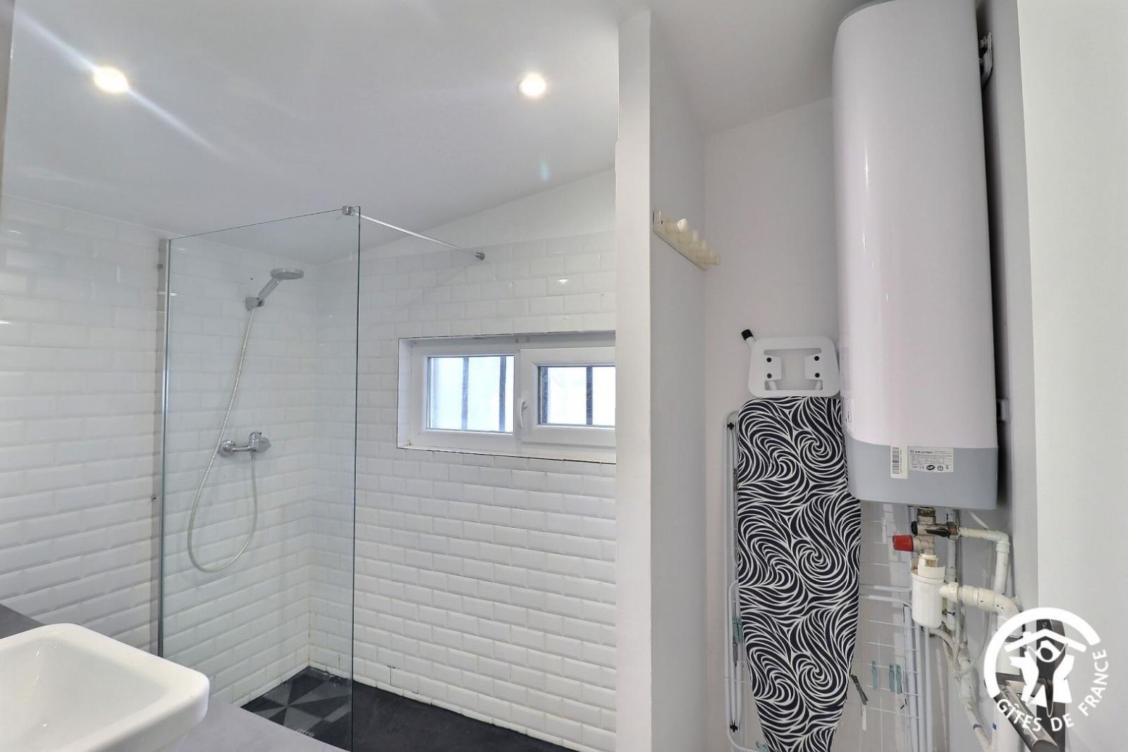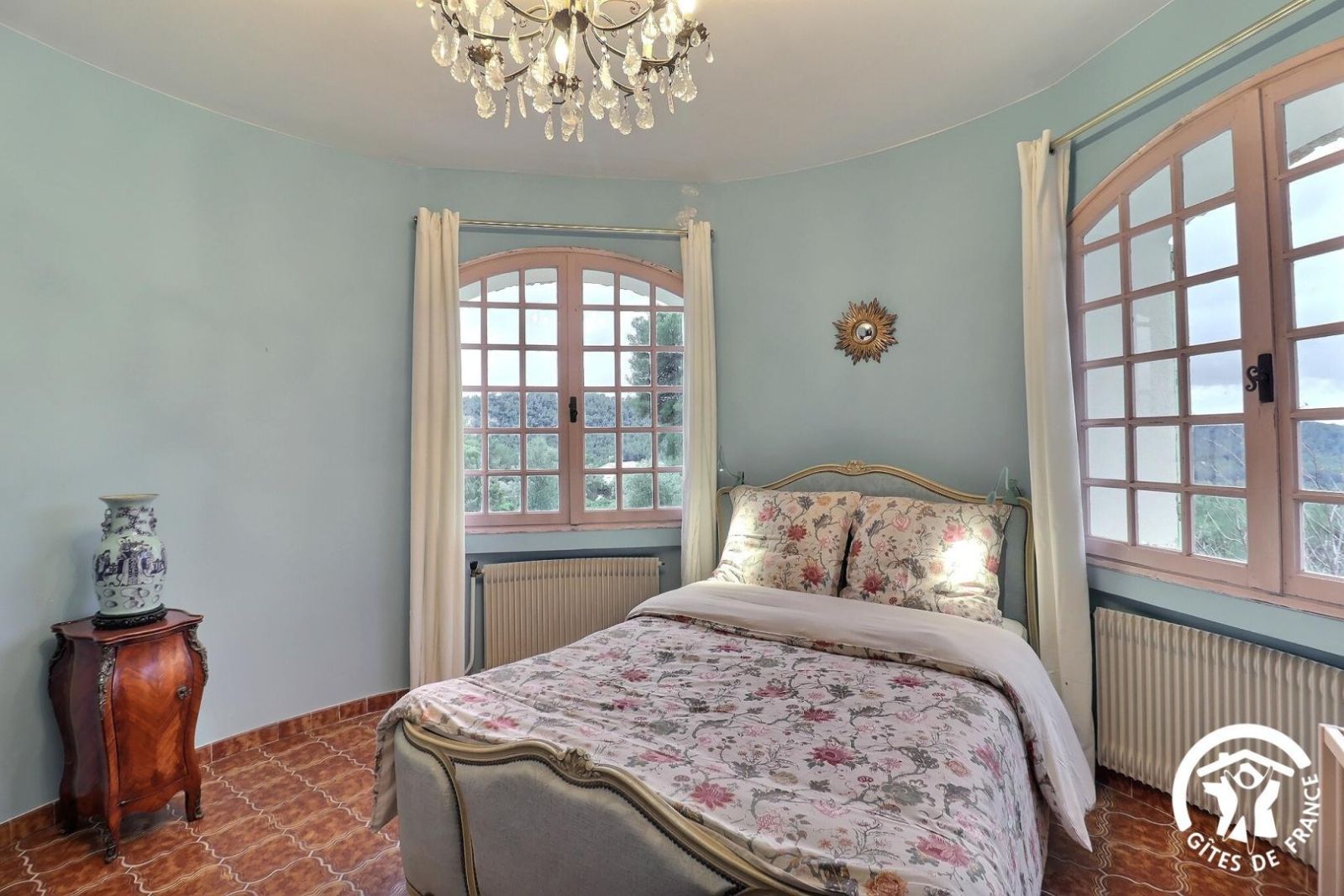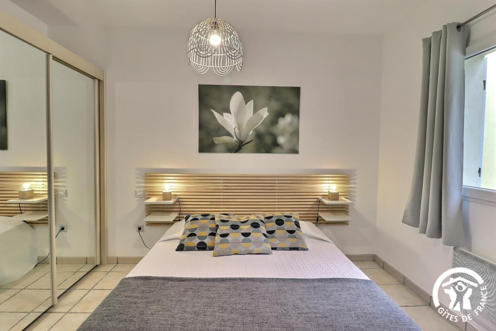 - Une grande chambre avec un lit 140x190, placard, lit bébé et salle d'eau attenante avec baignoire, meuble double vasque.
