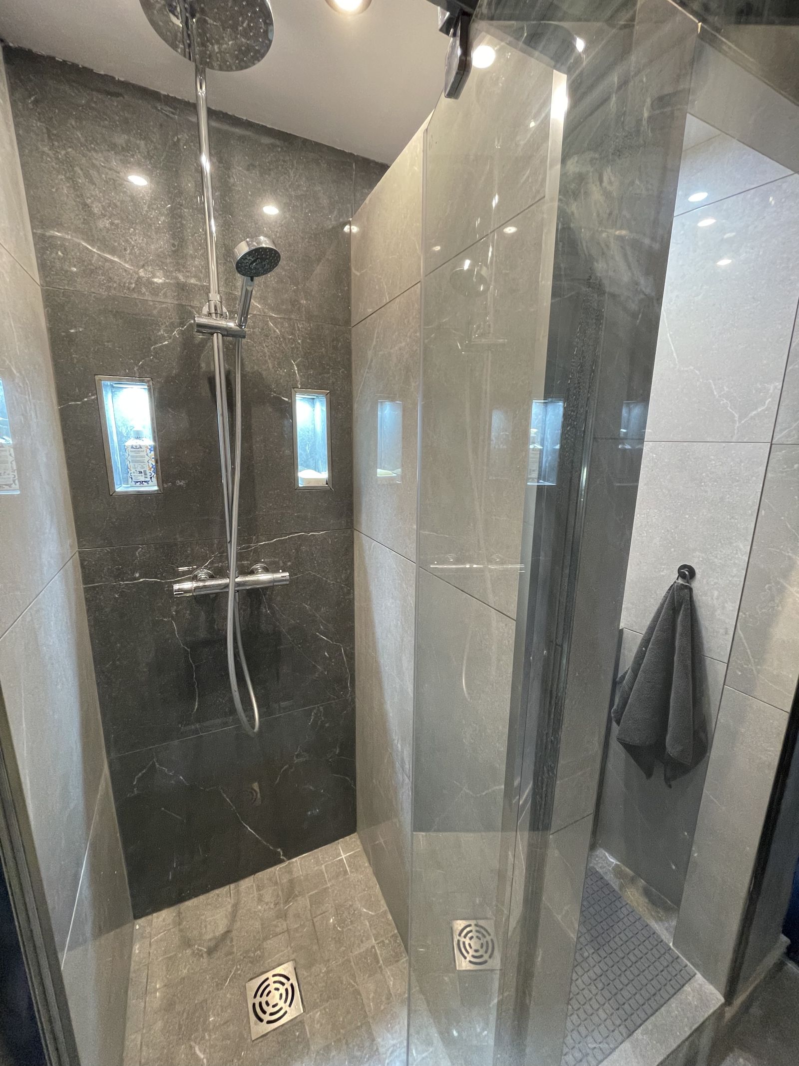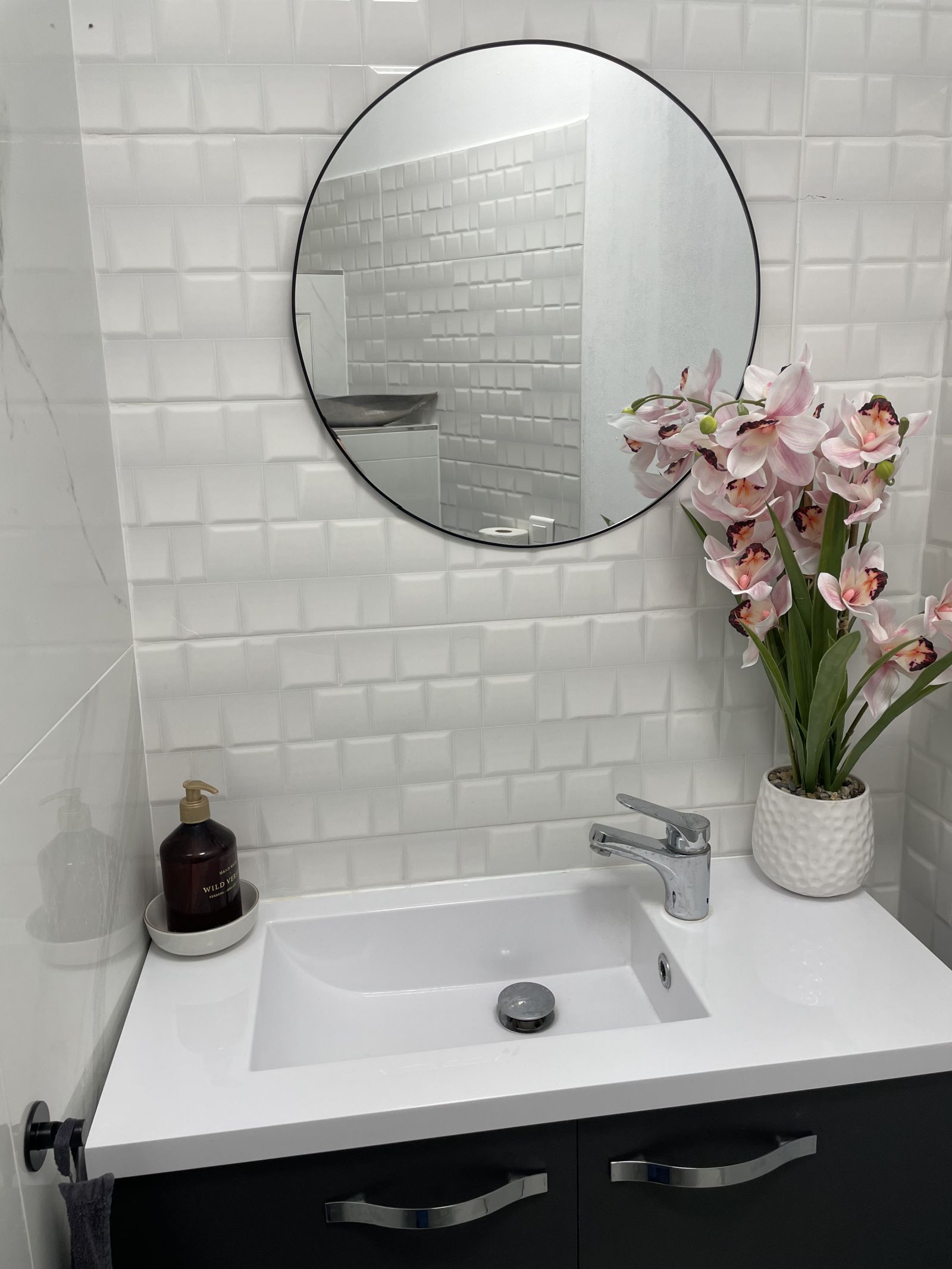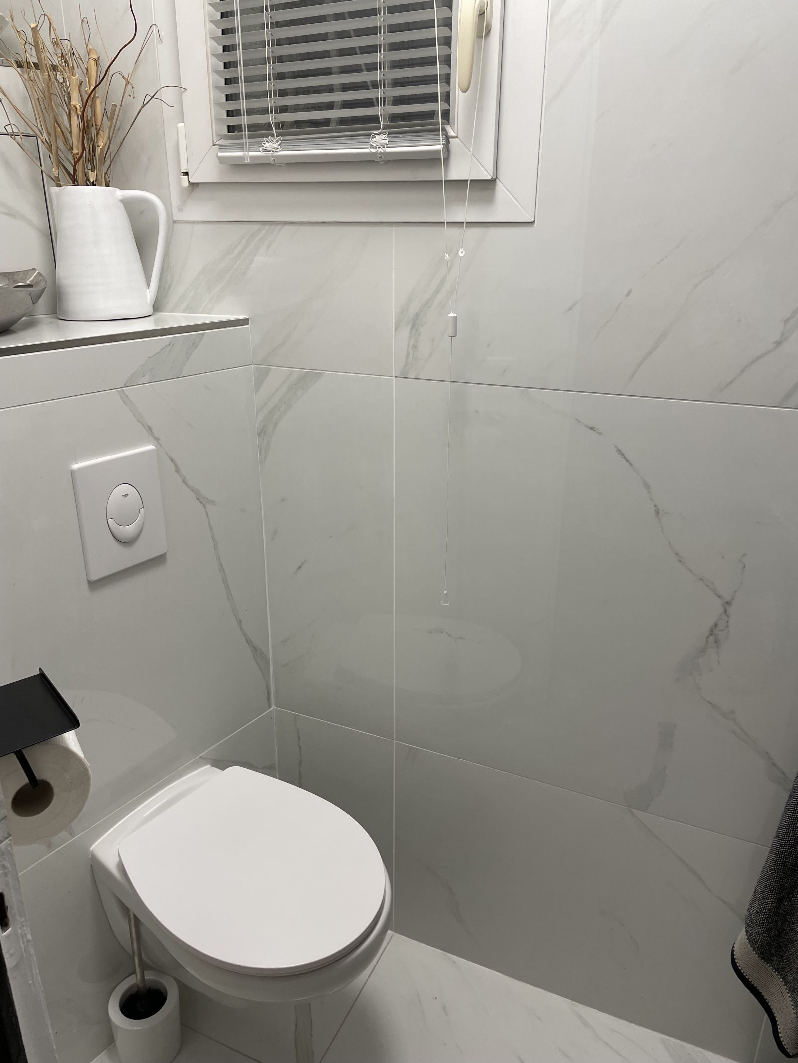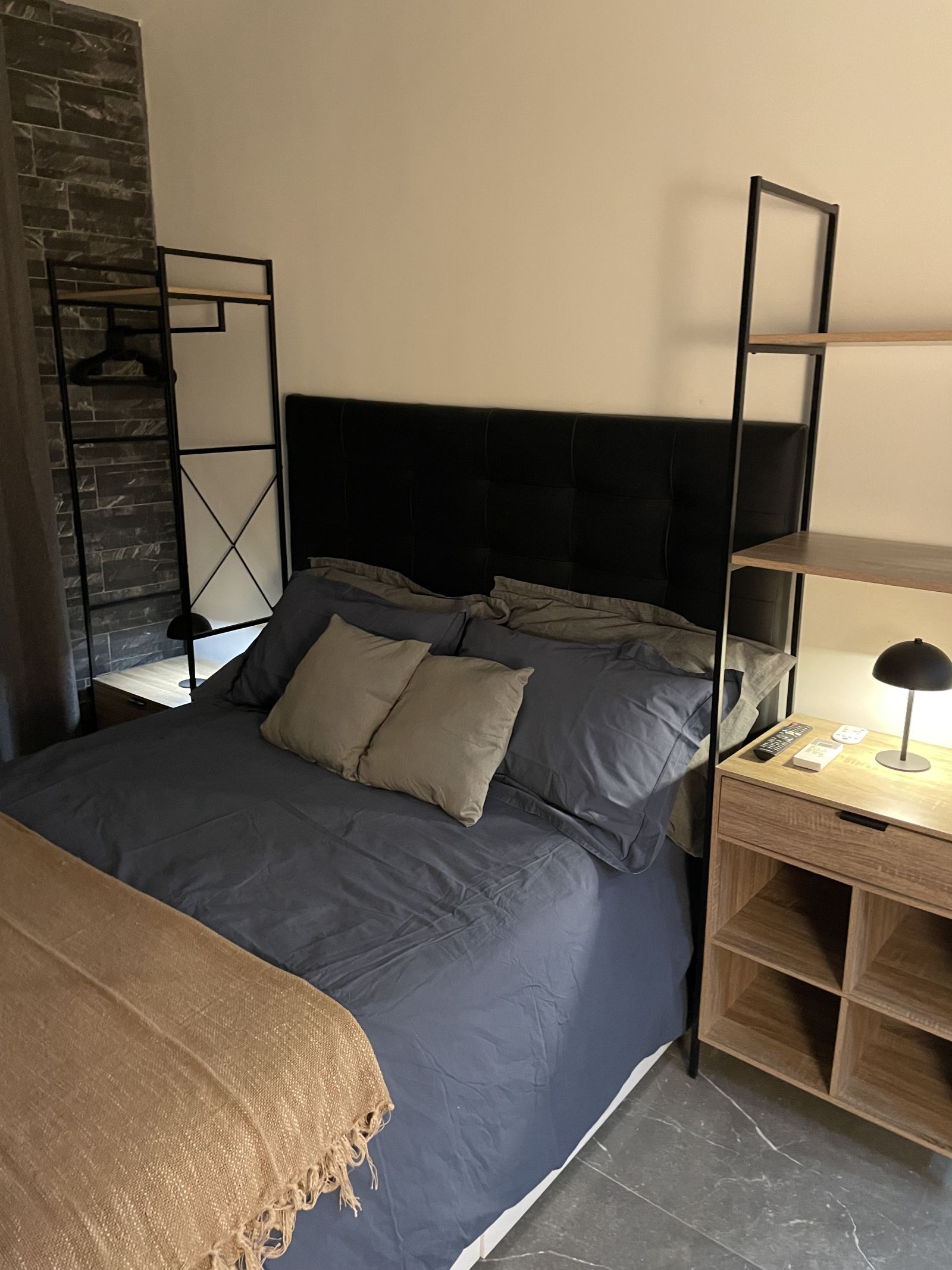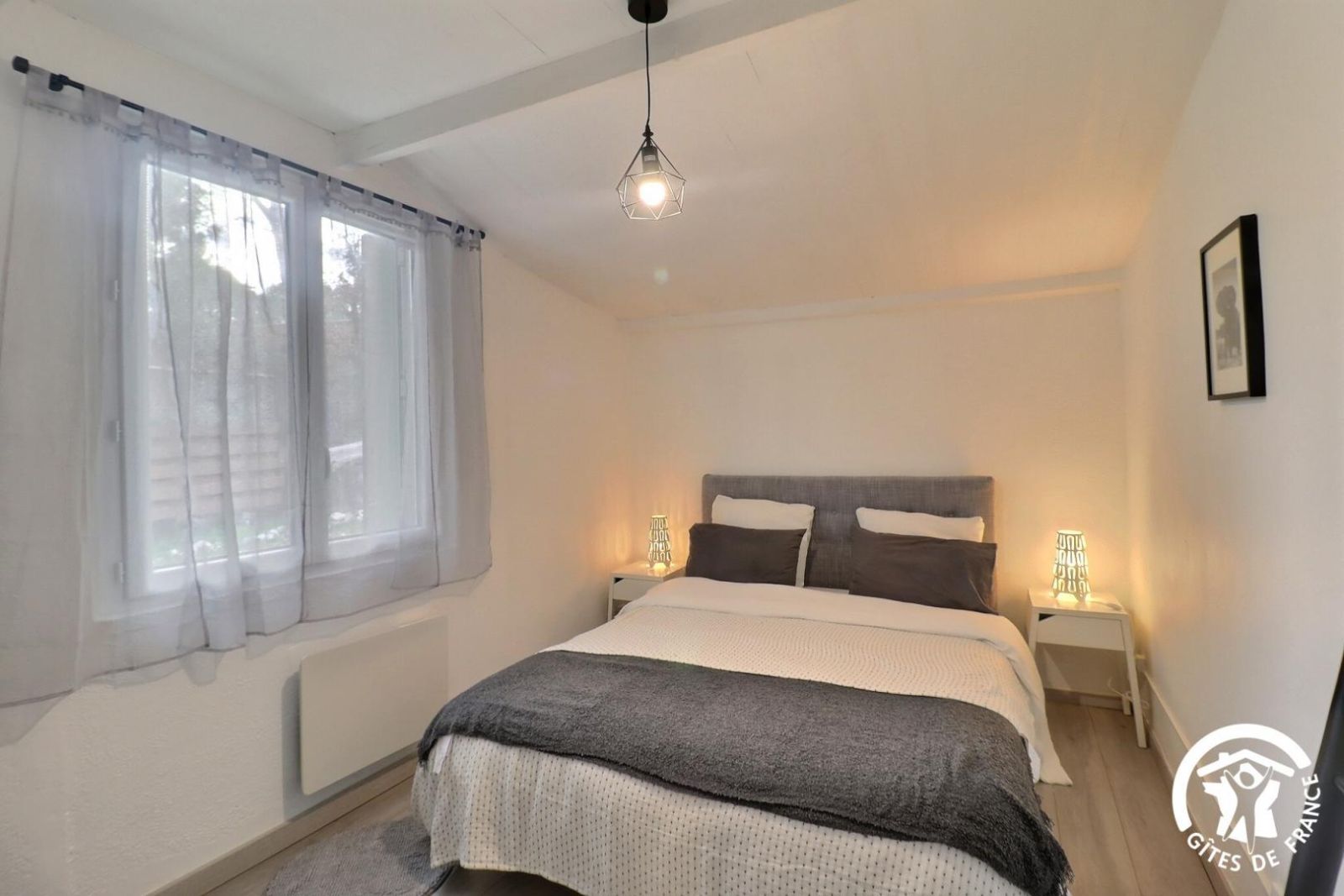 - Une grande chambre avec un lit 140x190, placard, lit bébé et salle d'eau attenante avec baignoire, meuble double vasque.