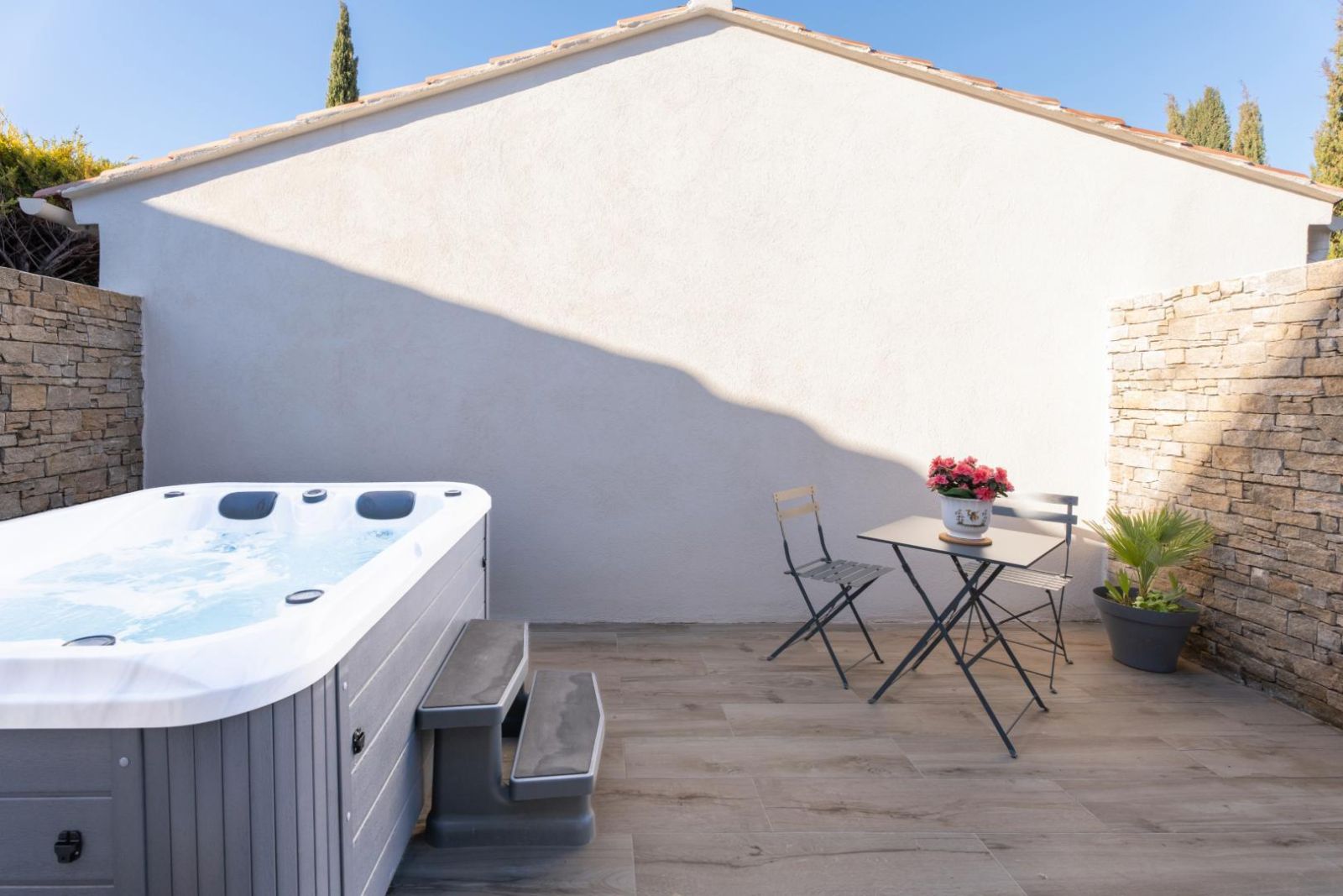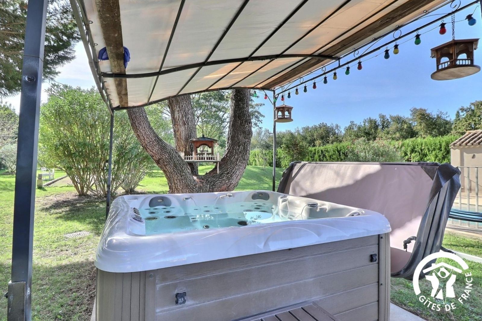 Implanté sur un terrain arboré de 4000 m², le mas offre un grand jardin entièrement clos, parfait pour laisser jouer les enfants en toute sécurité. Vous pourrez profiter d'une belle terrasse ombragée pour vos repas en extérieur, d'un jacuzzi pour des moments de détente, et d'une piscine chauffée privative (8mx4m fond 1m50 à 1m60 au chlore et sécurisée par portillon).