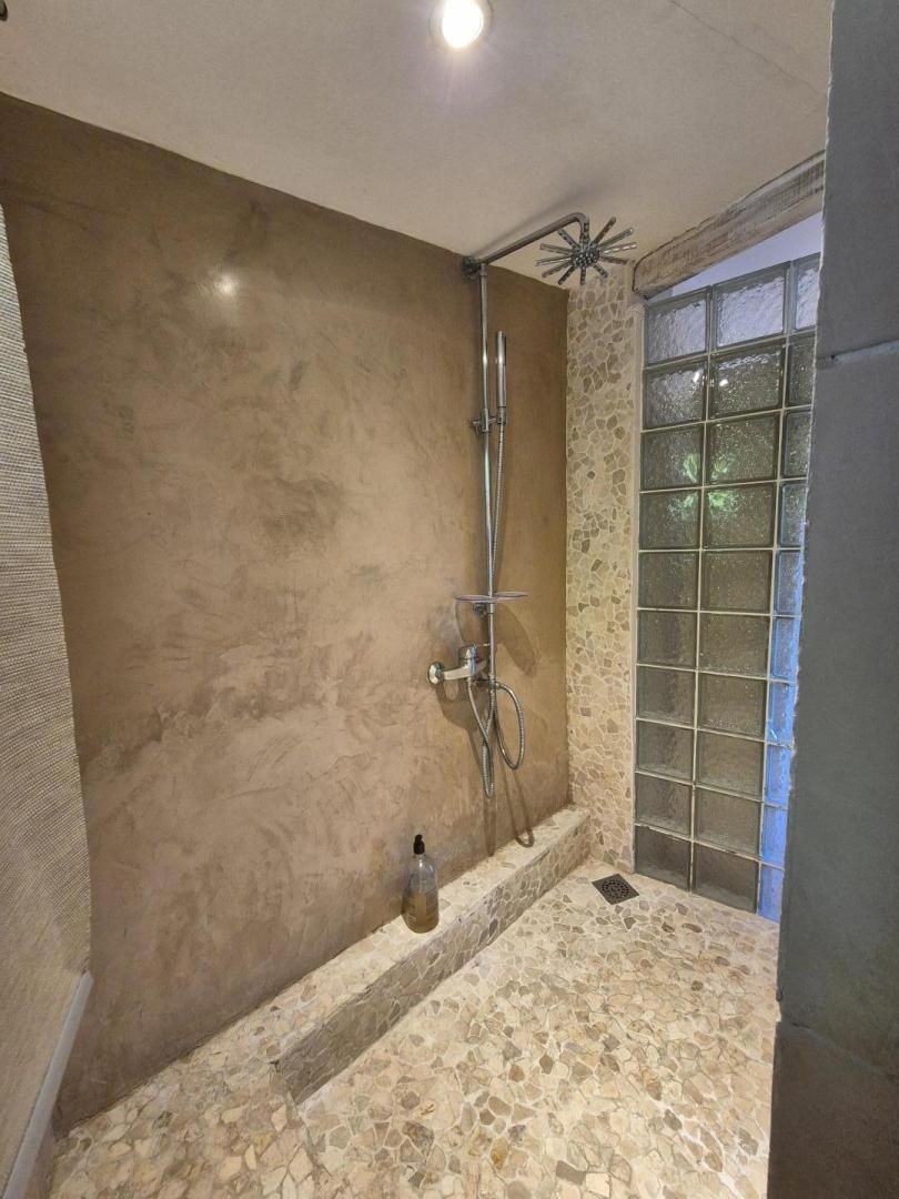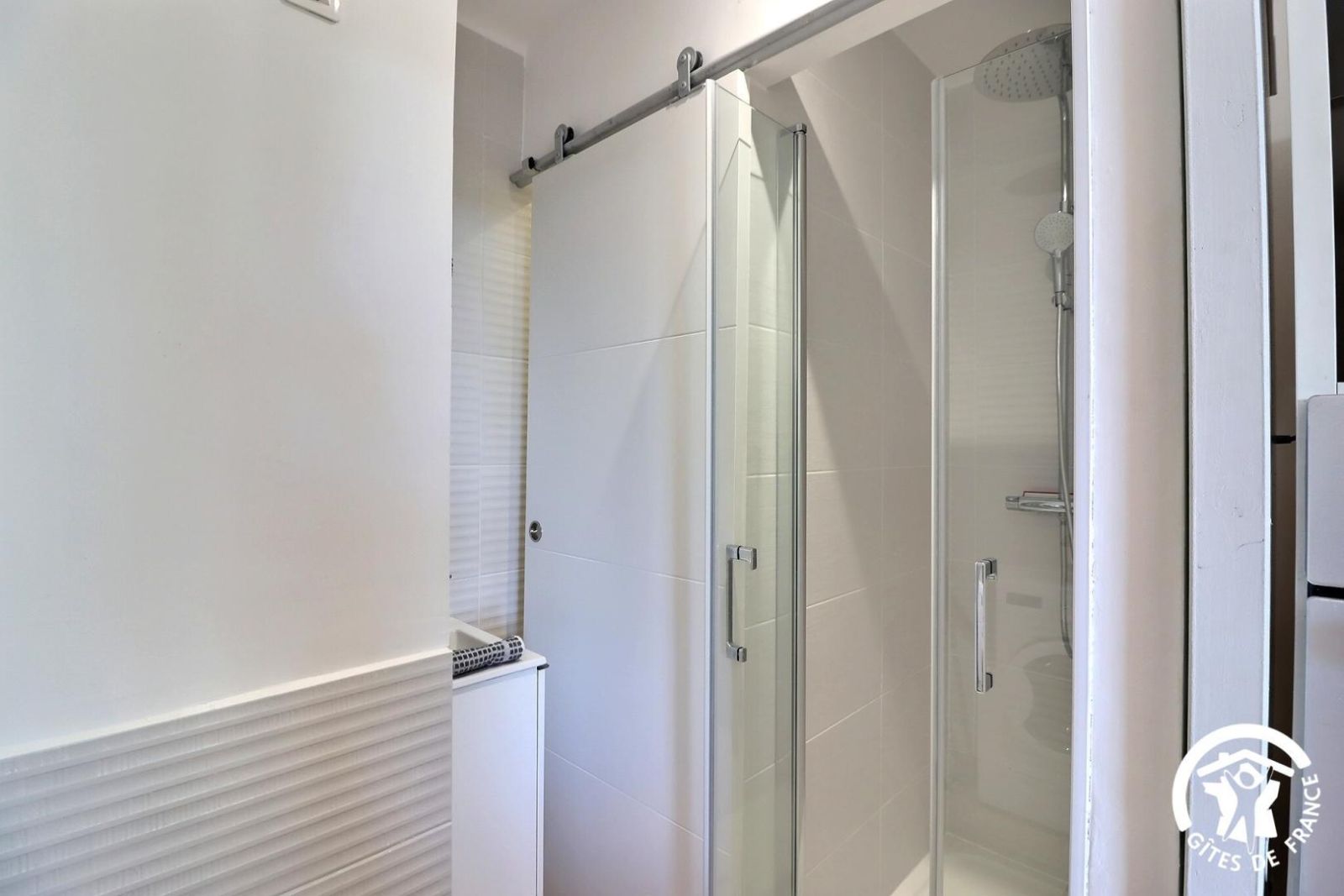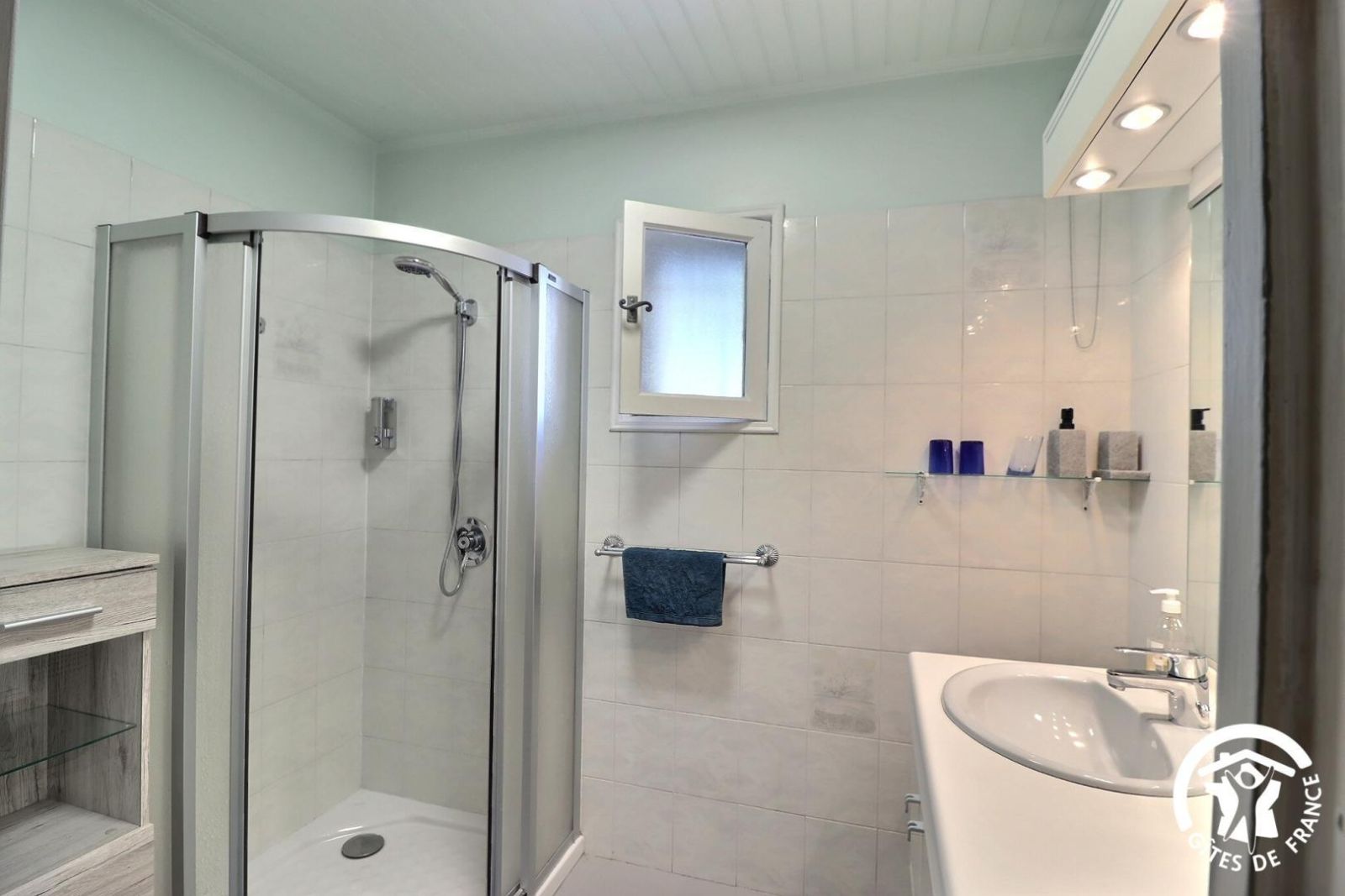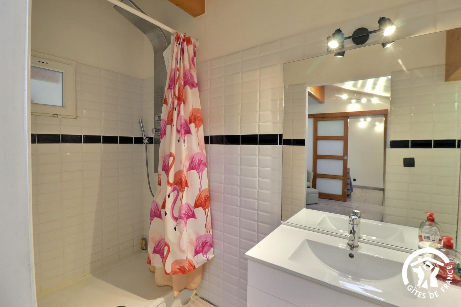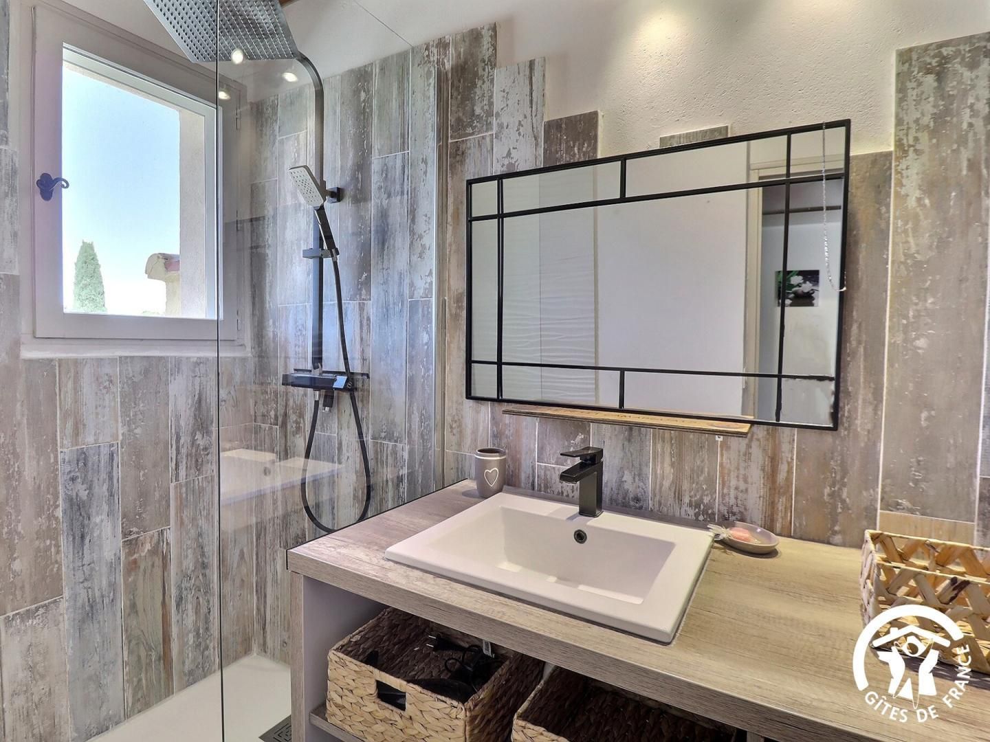 - Une salle d'eau avec douche et meuble vasque