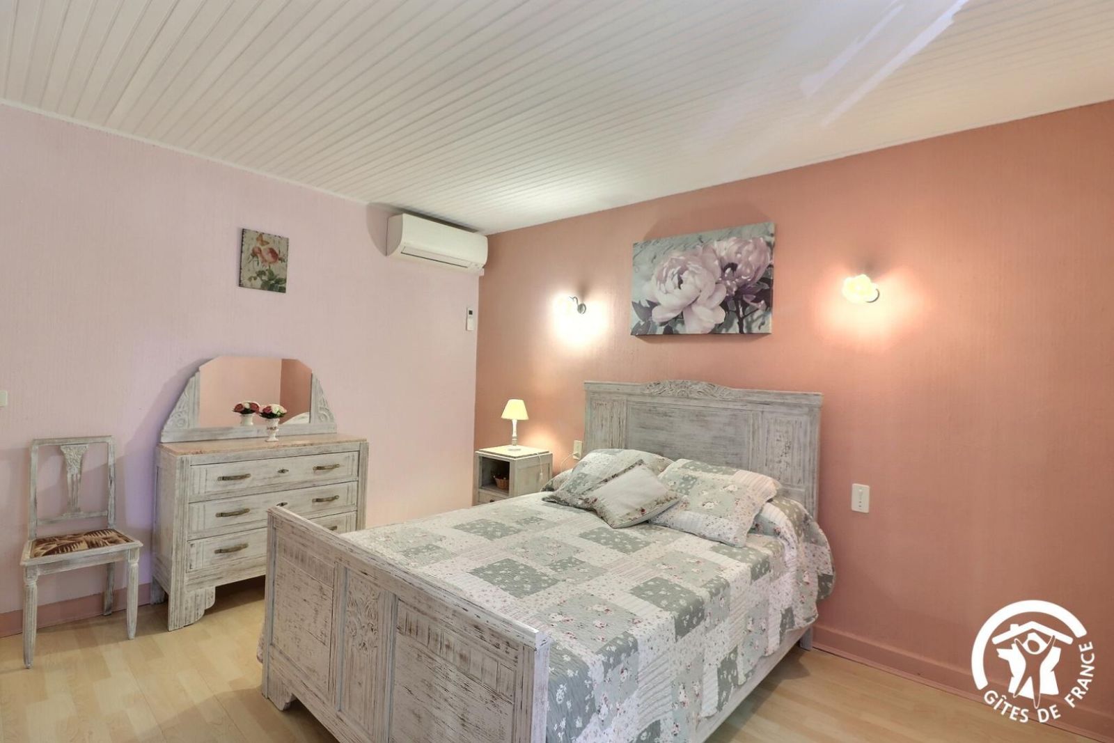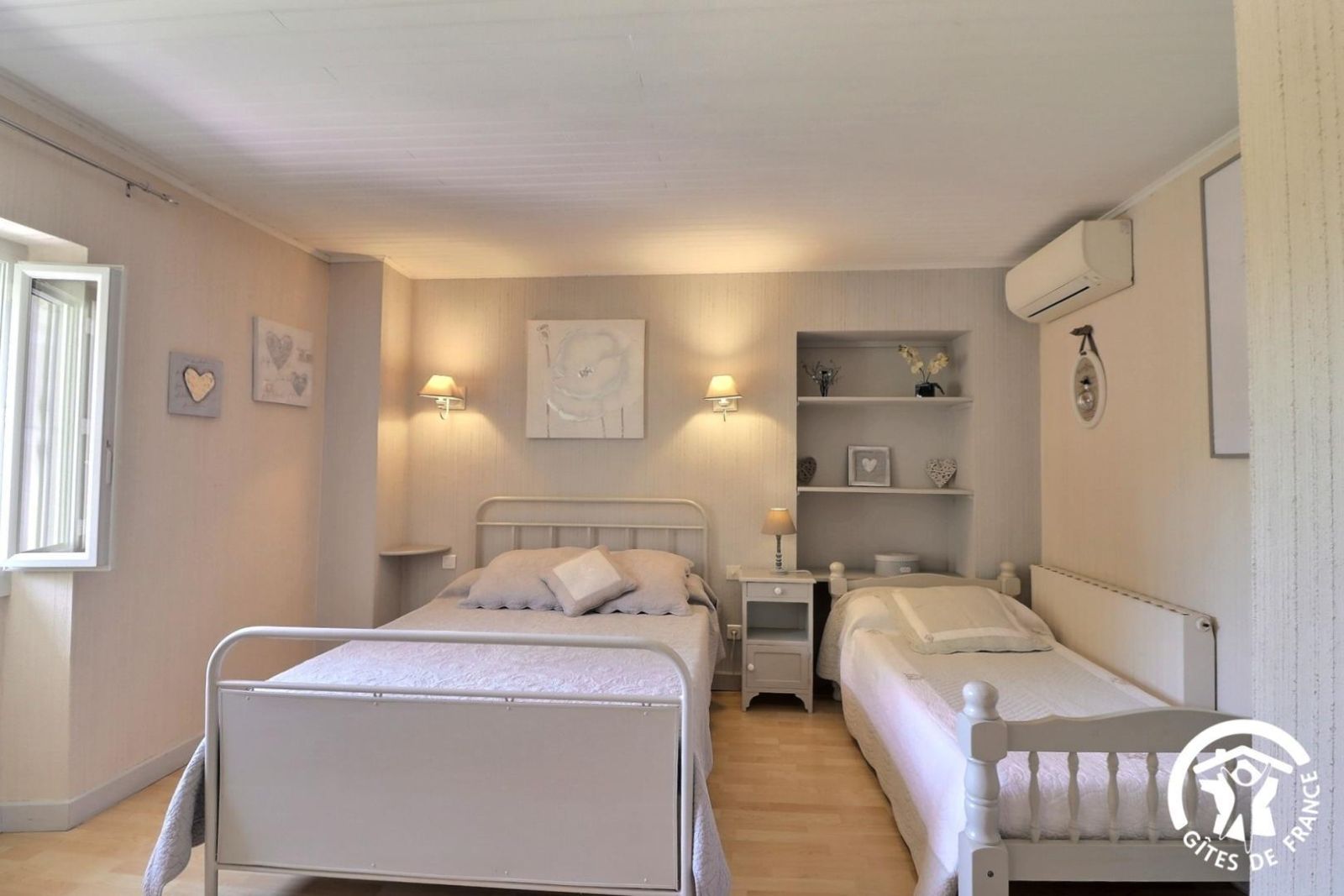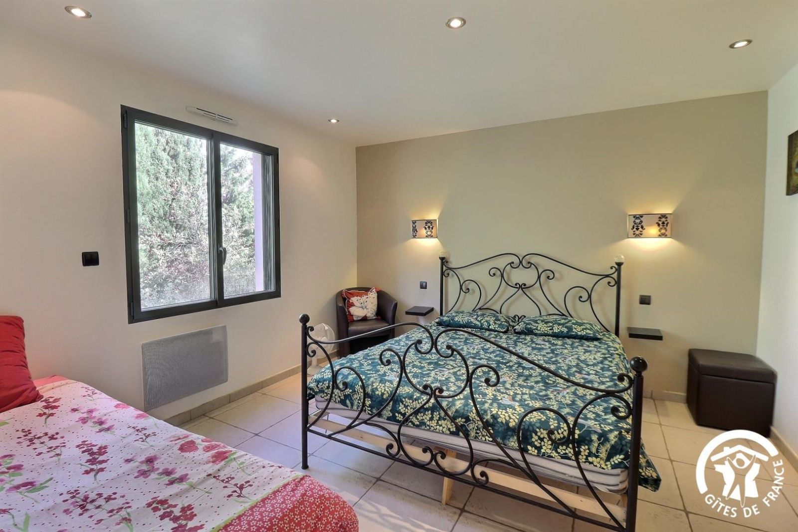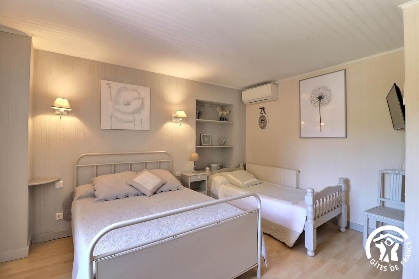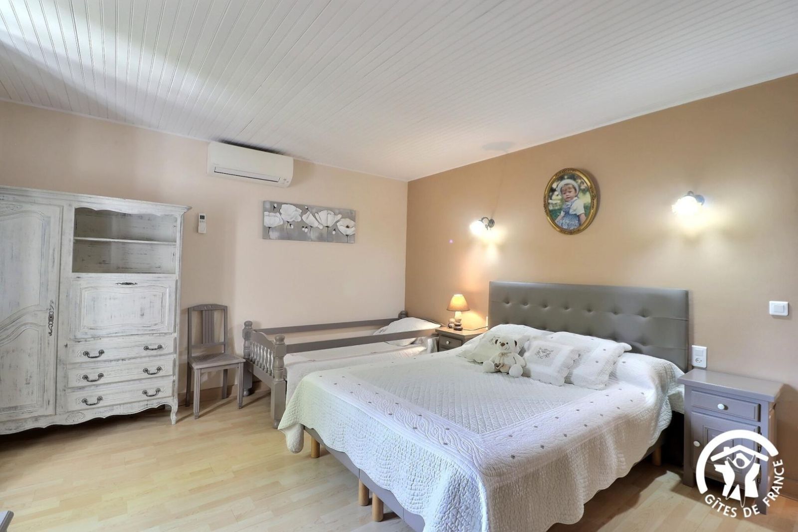 - Une première chambre climatisée avec un lit 160x200 et un lit 90x190 (recommandé pour un enfant), armoire et TV