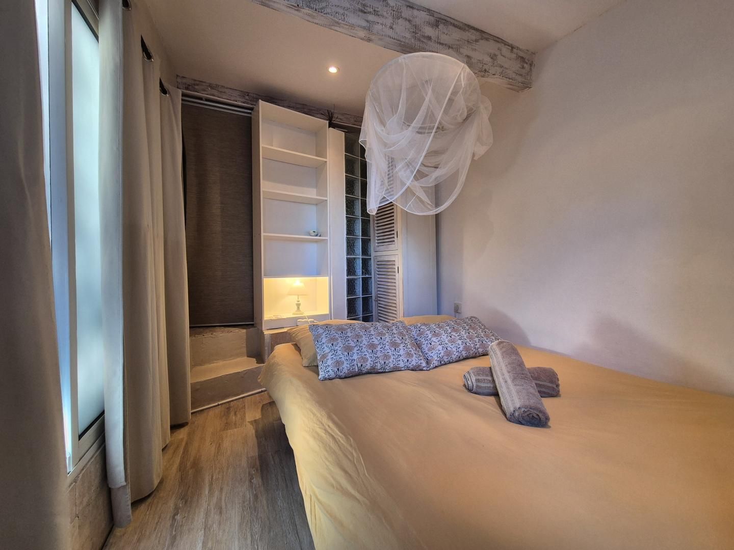 - Une seconde chambre climatisée avec un lit 140x200 et un lit 90x190 (recommandé pour un enfant), placard et TV