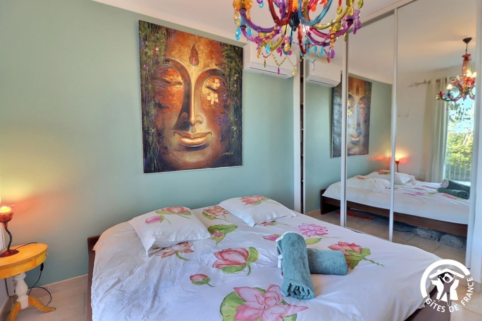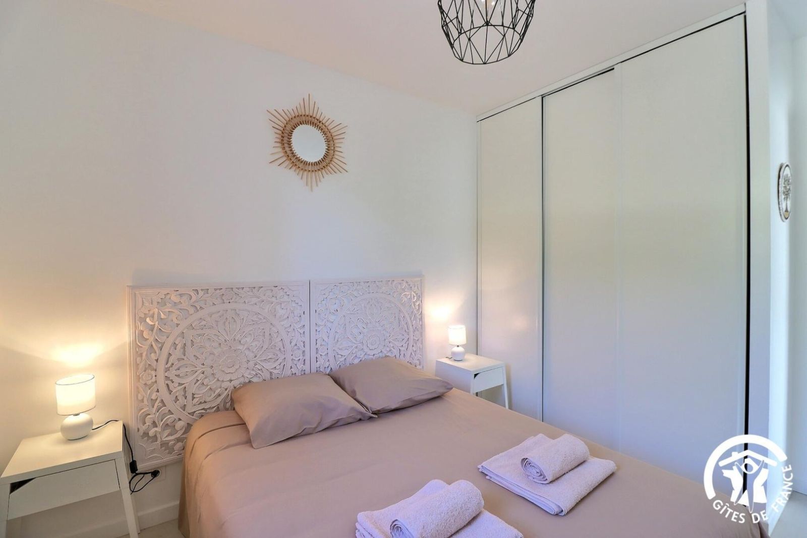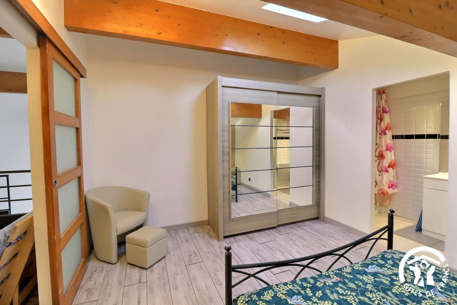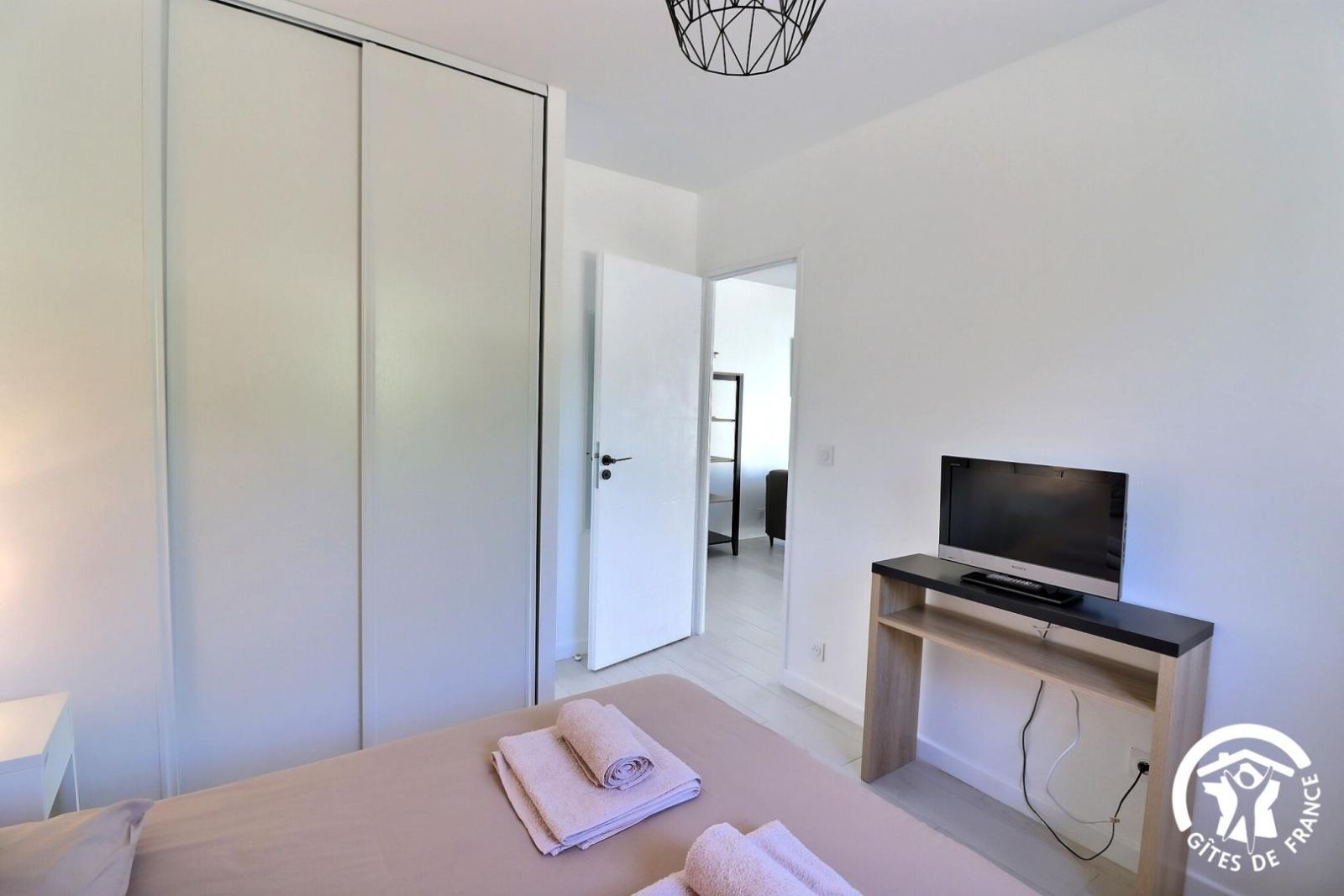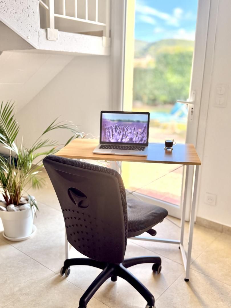 - Une troisième chambre climatisée avec un lit 140x190, une commode, un portant et un bureau