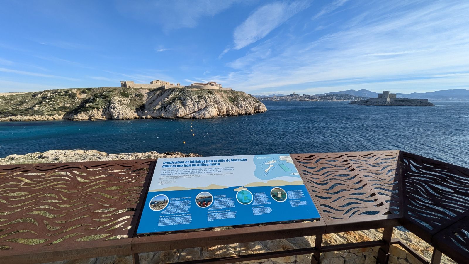 Bâtie sur la côte rocheuse de l'île de Ratonneau, à 15 min. à pied du port du Frioul, la maison des îles et du littoral surplombe la mer face à la corniche de Marseille.