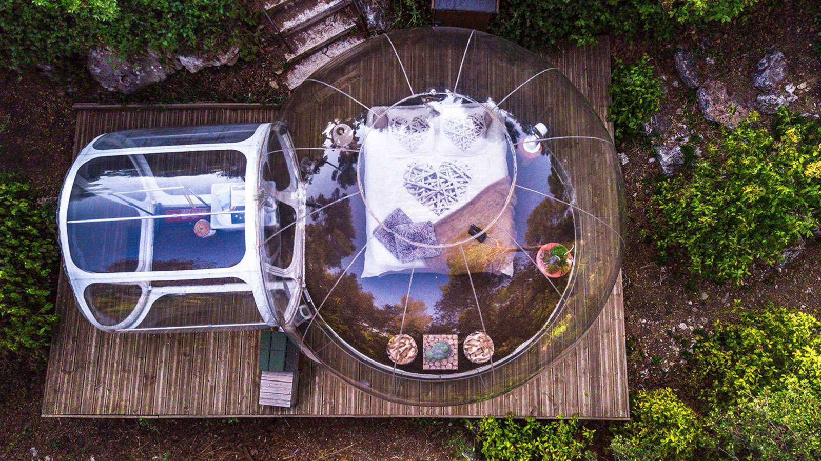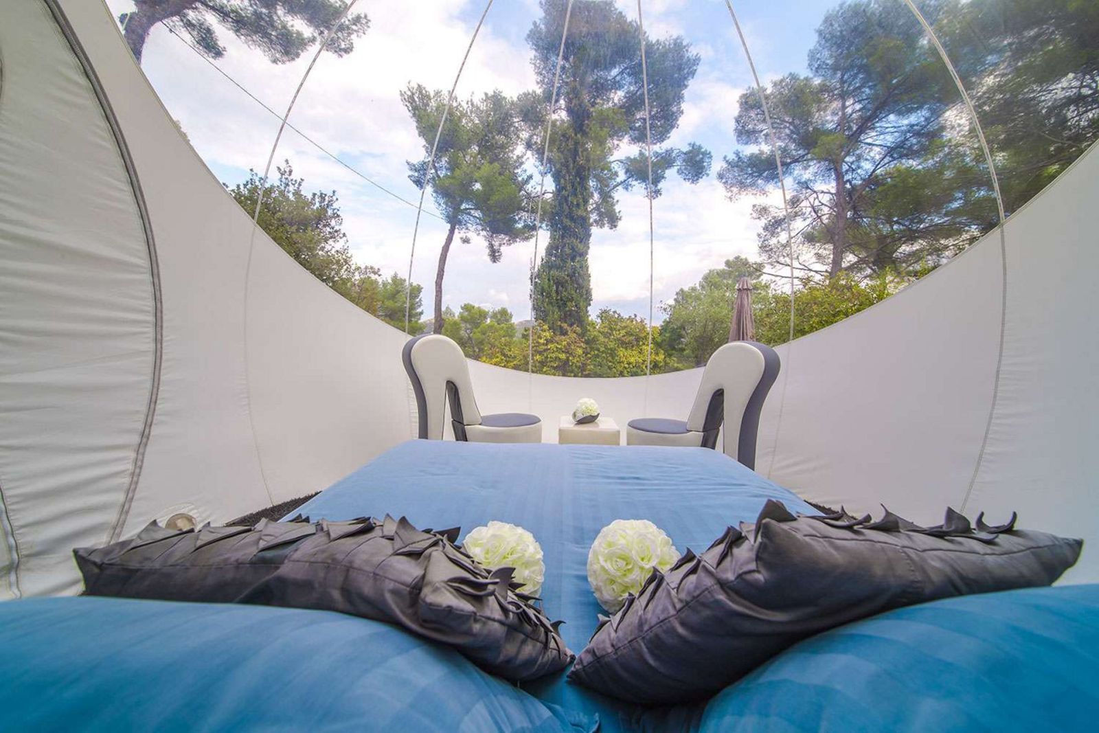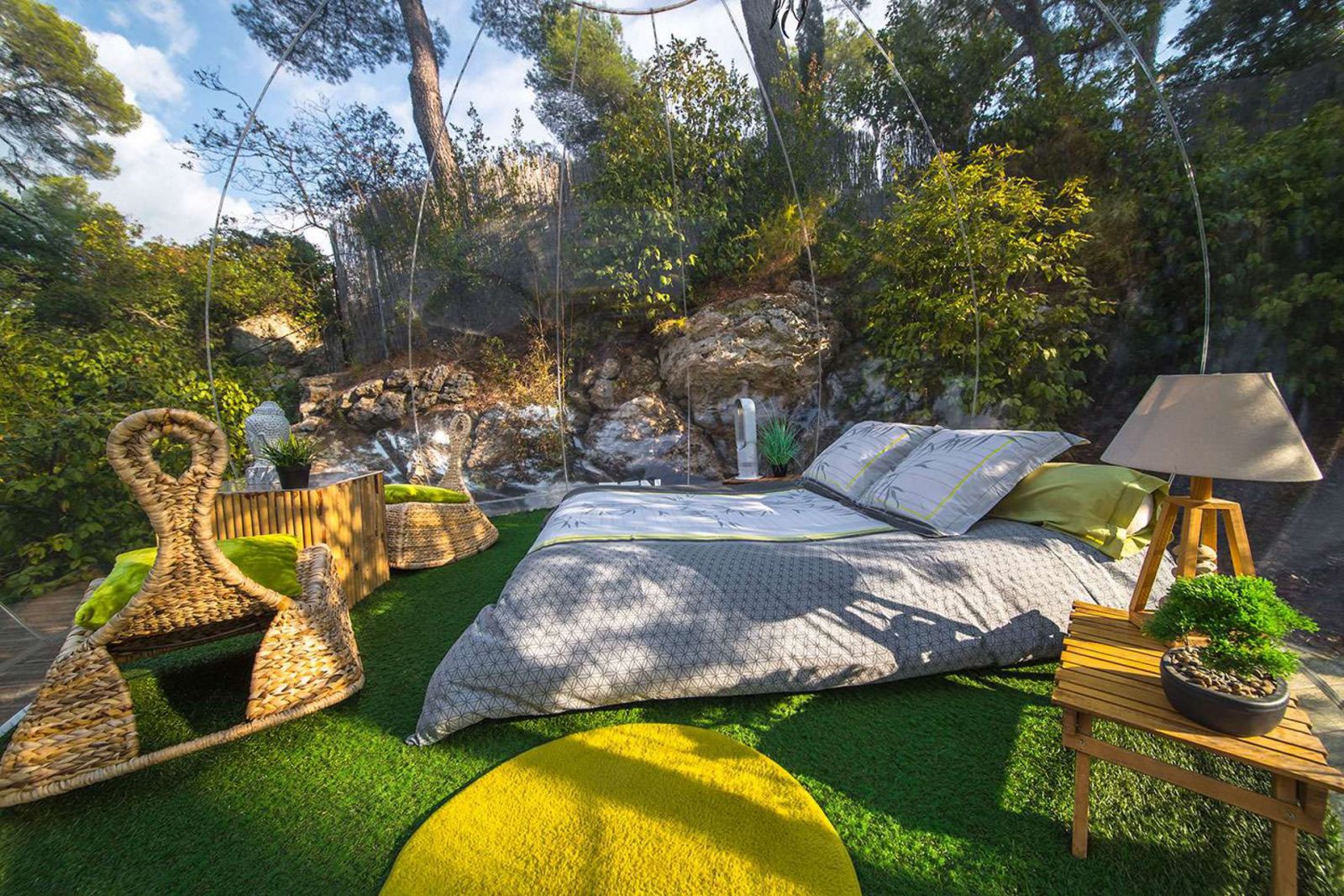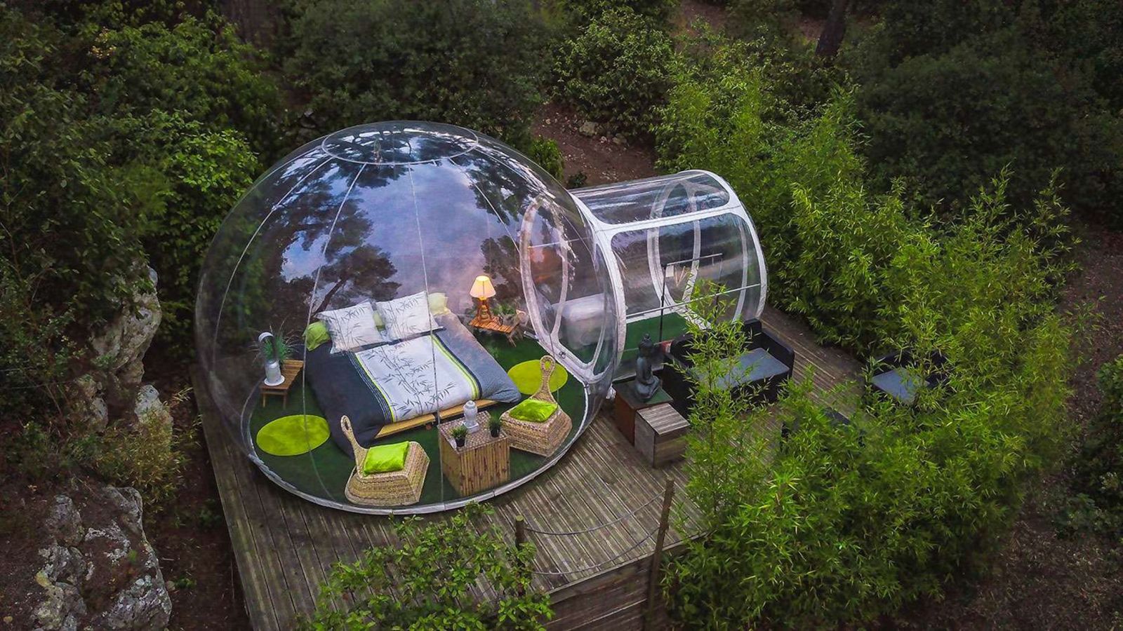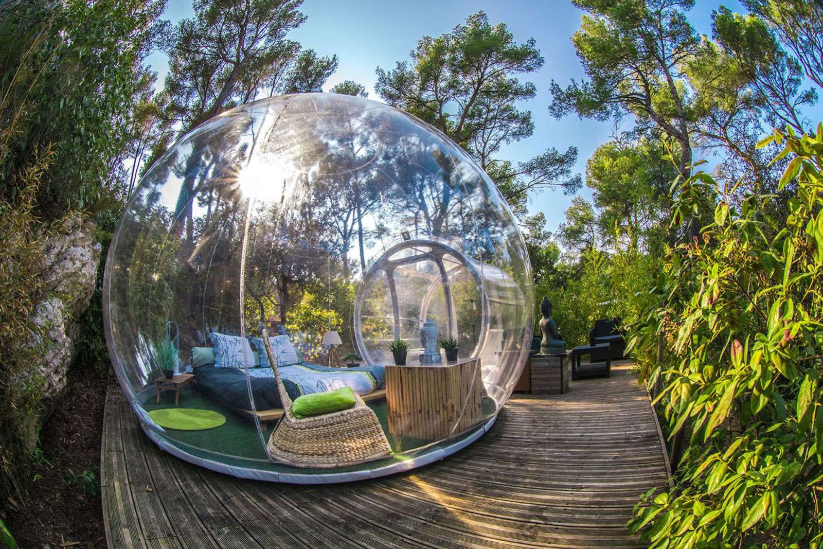 Dans une magnifique pinède de 15000m², les hébergements insolites sont répartis de façon à préserver votre intimité. Vous pourrez profiter d'une splendide piscine ou bien buller de plaisir dans un des jacuzzi!