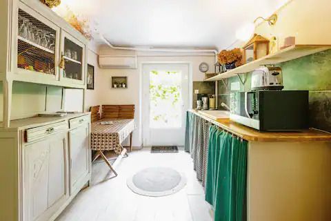 Une cuisine est à disposition. Le quartier est très calme et se situe à 5´ à pied de tous les monuments, des expos photos et de la Tour LUMA. L’école PROFAC se situe à 30 m sur le même trottoir. Et celle de la photographie à 5 mn à pied. Parking gratuit dans la rue juste devant . Possibilité de garer des vélos ou moto dans le jardin. La propriétaire réside à l'étage