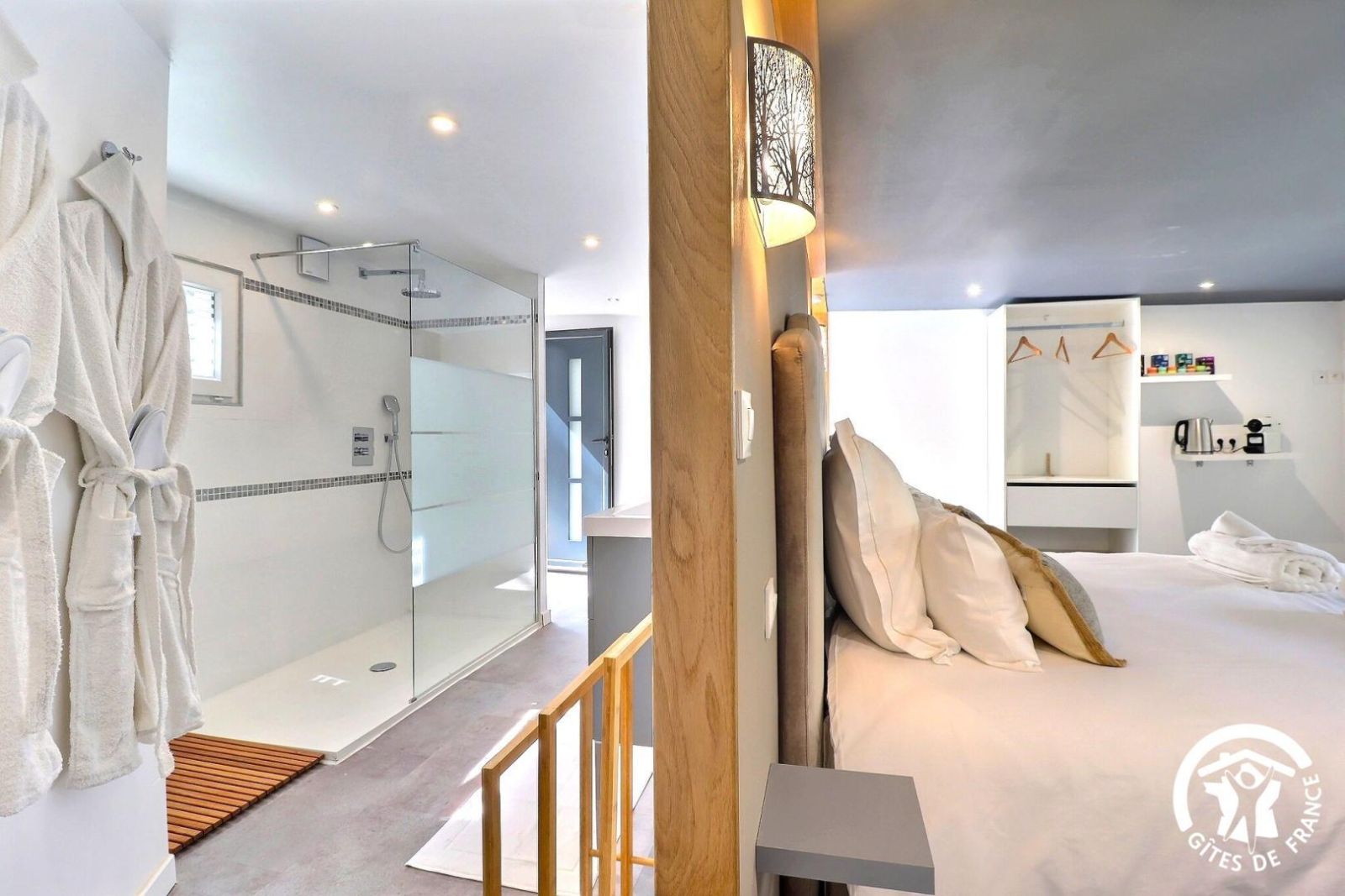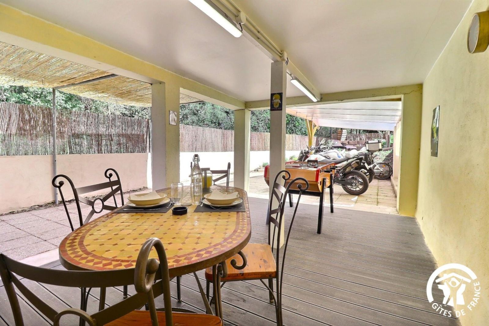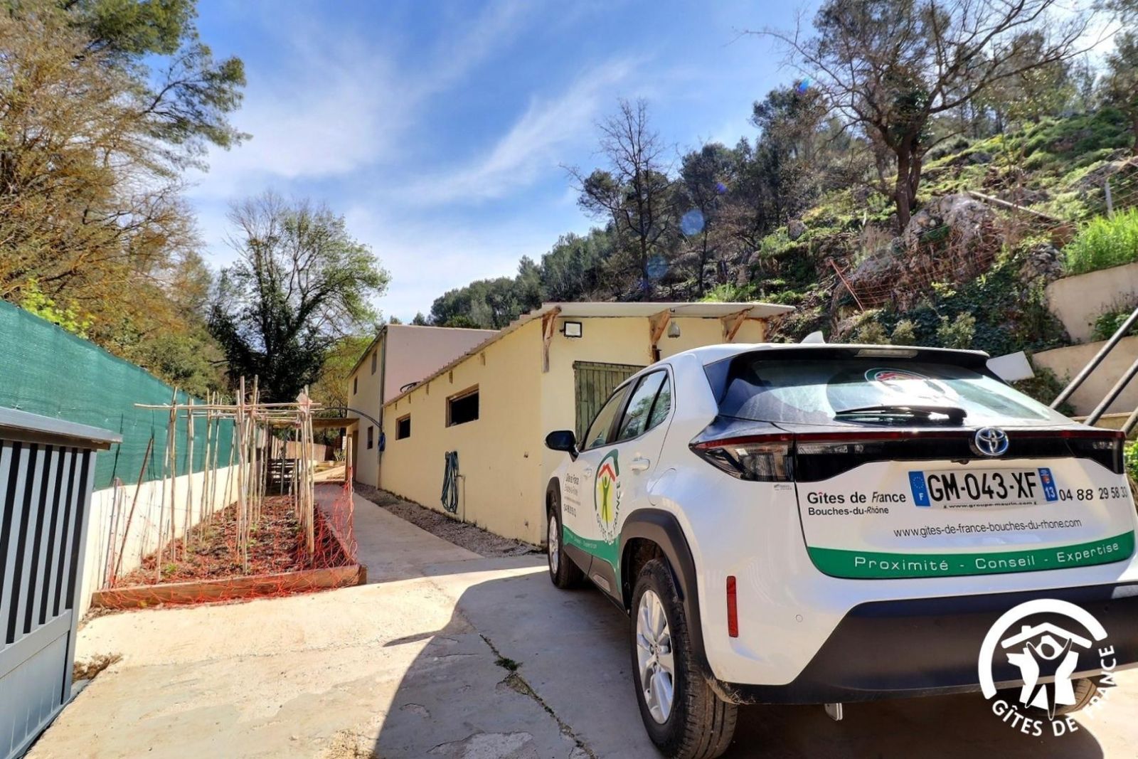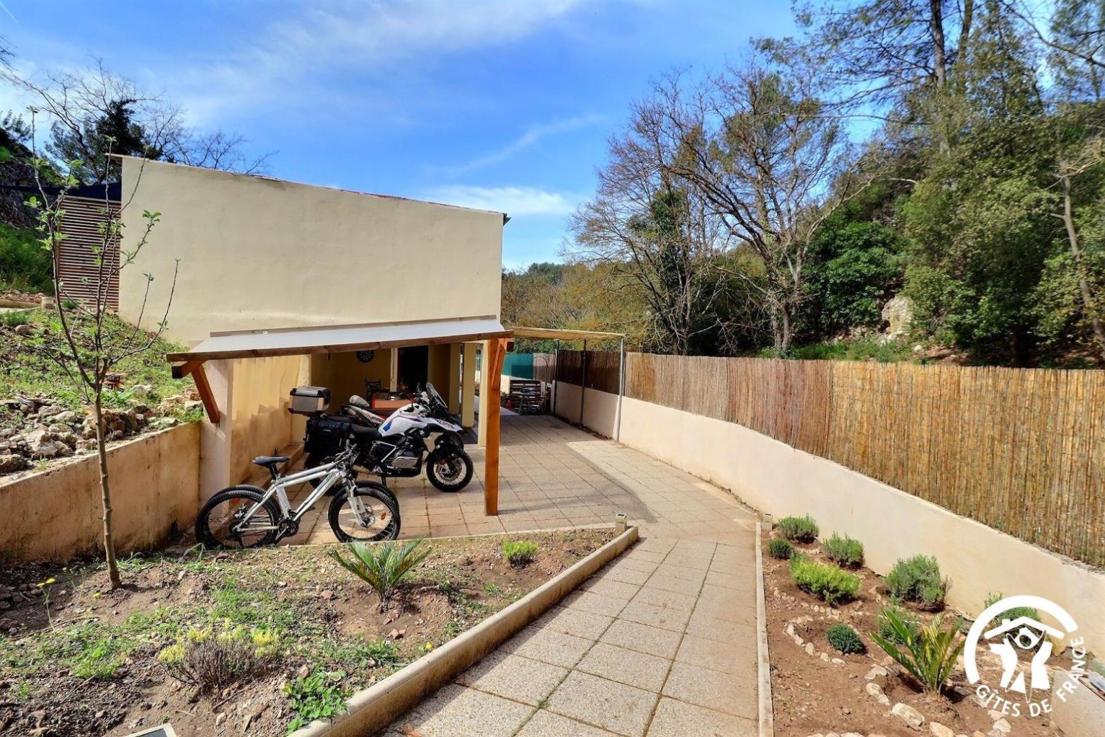 Ami Motard, bienvenue chez Béa et Francky ! Cette chambre d'hôtes, qui peut aussi être louée en gîte (sans les petits-déjeuners), a été pensée et conçue pour les motards, qui pourront se détendre et se relaxer après une belle journée de balade dans les collines de Pagnol environnantes... Elle a été organisée autour du parking pour motos/vélos, couvert et sécurisé, dans la propriété fermée, accessible au bout d'un chemin de terre de 300m (attention aux véhicules bas), au bout d'une impasse. L'accès à la chambre se fait en surplomb du parking : un lit 2 personnes 180x200cm, plateau) de courtoisie avec cafetière à dosettes Nespresso et bouilloire, penderie. Salle d'eau ouverte sur la chambre avec grande douche type italienne, double vasque, porte-serviettes chauffant, grand miroir lumineux (miroir grossissant intégré et anti-buée). WC indépendant. Petite terrasse avec salon de jardin immédiatement attenante. En contrebas, au bout du terrain, beau salon de détente extérieur couvert, avec bains de soleil. Spa gonflable privatif à disposition. Le parking des motos / vélos se prolonge par une terrasse couverte avec salon de jardin, baby-foot et jeu de fléchettes. Cuisine commune (accès extérieur uniquement) avec espace repas pour 4 personnes, gazinière 4 feux avec four gaz, micro-ondes, cafetière torréfacteur à grains, réfrigérateur/congélateur américain distributeur de glaçons et d'eau et lave-vaisselle. Barbecue à disposition. Franck et Béa partageront avec vous leur passion de la moto, dans une atmosphère chaleureuse et conviviale. Un gonfleur est à disposition pour la pression des pneus et en cas de pépin, Franck pourra vous proposer un service de dépannage. Service de pressing possible sur demande. Animaux bienvenus gratuitement (chiens, chats et chèvres sur la propriété). Une belle adresse pour les amateurs de motos, dans un environnement préservé et un cadre verdoyant !