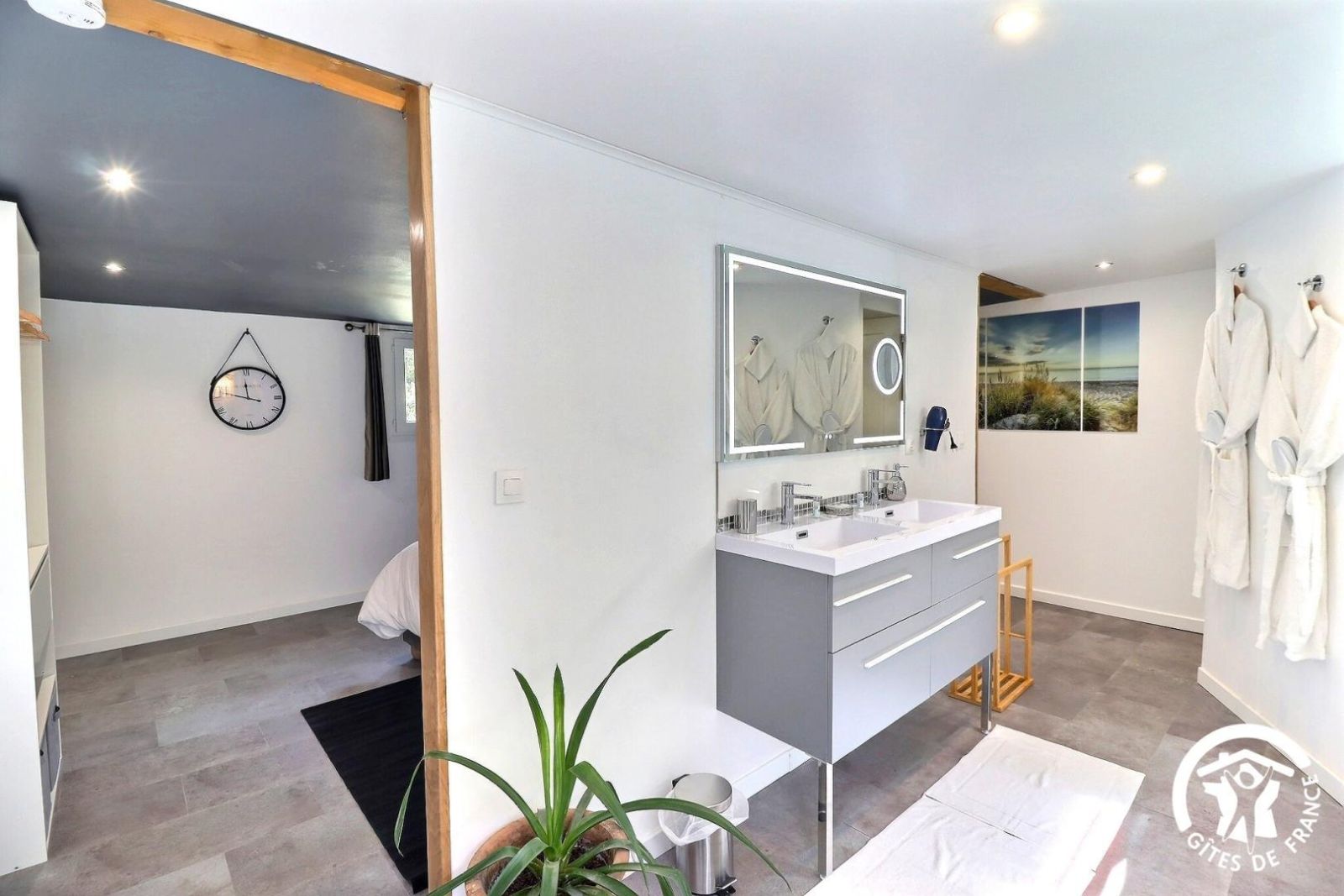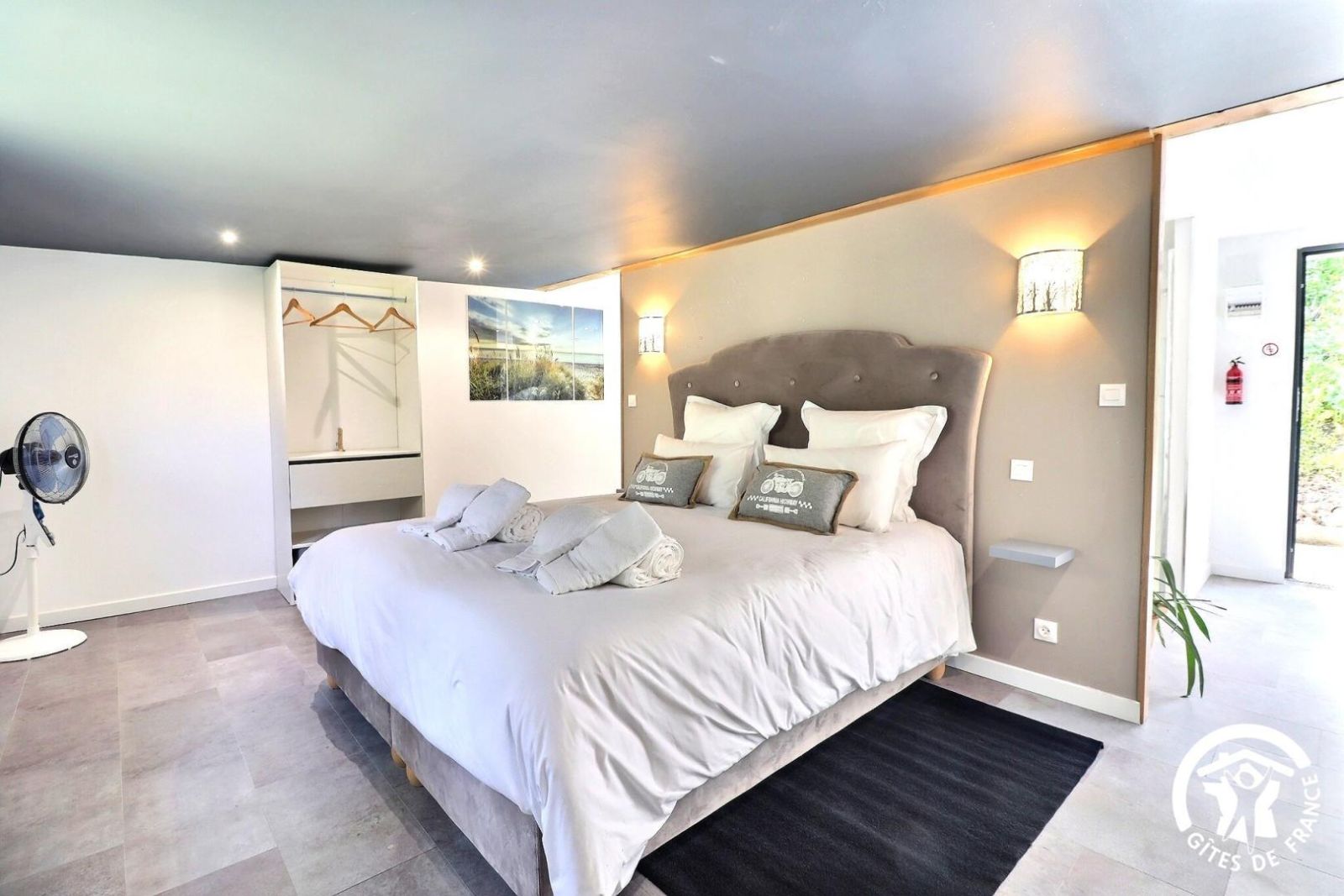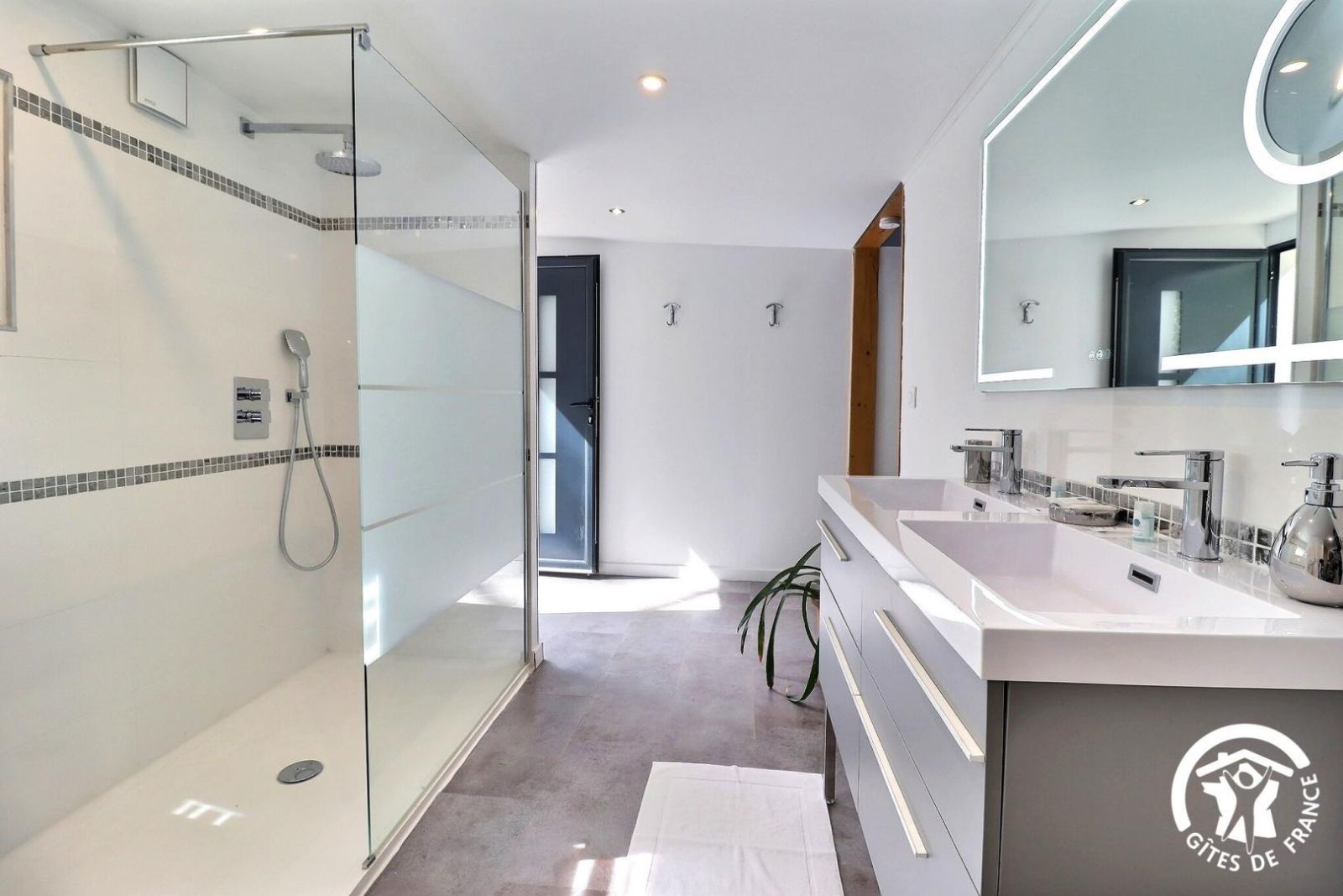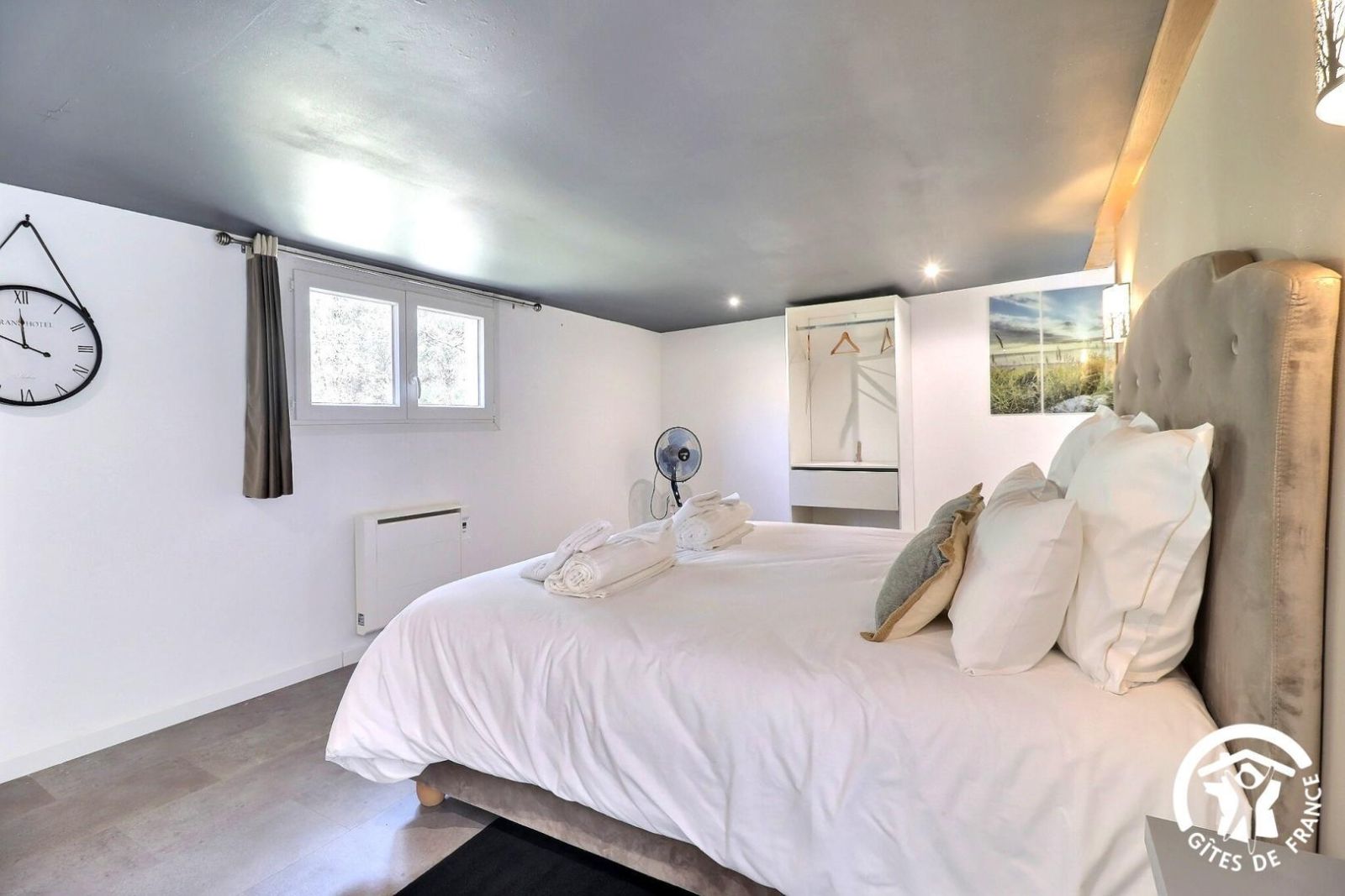 Ami Motard, bienvenue chez Béa et Francky ! Cette chambre d'hôtes, qui peut aussi être louée en gîte (sans les petits-déjeuners), a été pensée et conçue pour les motards, qui pourront se détendre et se relaxer après une belle journée de balade dans les collines de Pagnol environnantes... Elle a été organisée autour du parking pour motos/vélos, couvert et sécurisé, dans la propriété fermée, accessible au bout d'un chemin de terre de 300m (attention aux véhicules bas), au bout d'une impasse. L'accès à la chambre se fait en surplomb du parking : un lit 2 personnes 180x200cm, plateau) de courtoisie avec cafetière à dosettes Nespresso et bouilloire, penderie. Salle d'eau ouverte sur la chambre avec grande douche type italienne, double vasque, porte-serviettes chauffant, grand miroir lumineux (miroir grossissant intégré et anti-buée). WC indépendant. Petite terrasse avec salon de jardin immédiatement attenante. En contrebas, au bout du terrain, beau salon de détente extérieur couvert, avec bains de soleil. Spa gonflable privatif à disposition. Le parking des motos / vélos se prolonge par une terrasse couverte avec salon de jardin, baby-foot et jeu de fléchettes. Cuisine commune (accès extérieur uniquement) avec espace repas pour 4 personnes, gazinière 4 feux avec four gaz, micro-ondes, cafetière torréfacteur à grains, réfrigérateur/congélateur américain distributeur de glaçons et d'eau et lave-vaisselle. Barbecue à disposition. Franck et Béa partageront avec vous leur passion de la moto, dans une atmosphère chaleureuse et conviviale. Un gonfleur est à disposition pour la pression des pneus et en cas de pépin, Franck pourra vous proposer un service de dépannage. Service de pressing possible sur demande. Animaux bienvenus gratuitement (chiens, chats et chèvres sur la propriété). Une belle adresse pour les amateurs de motos, dans un environnement préservé et un cadre verdoyant !