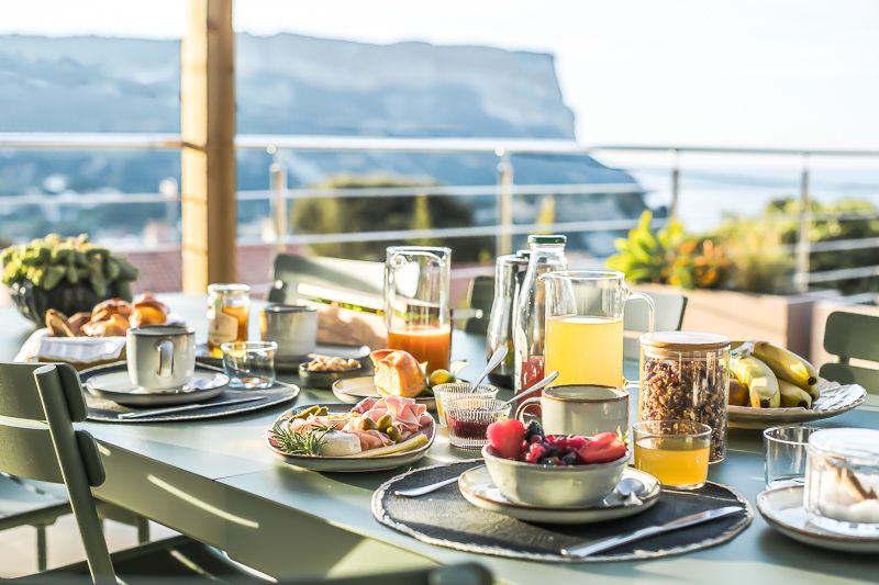 Suites 23, ce sont 3 chambres chez l’habitant nichées au coeur d’un jardin luxuriant, donnant côté piscine et le Cap Canaille. Les petits déjeuners bio sont servis sur la terrasse avec une magnifique vue mer.