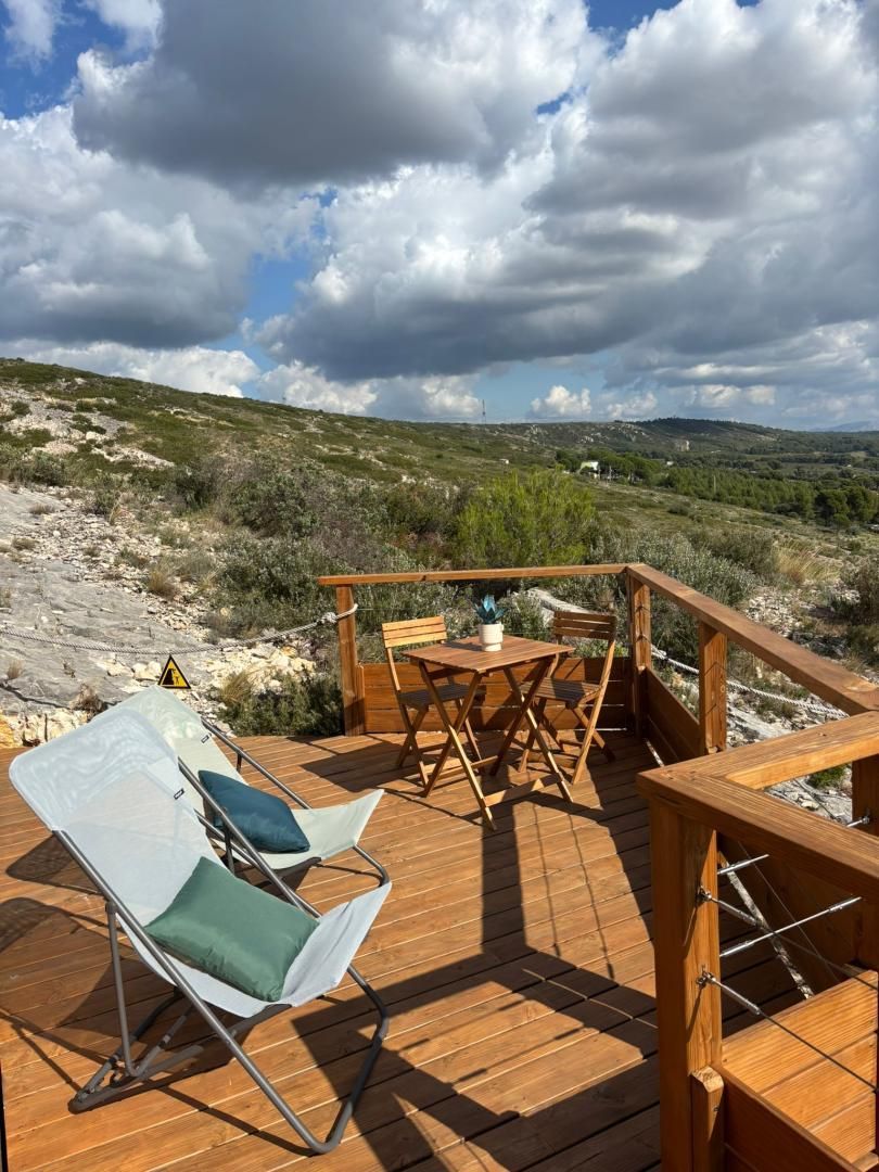 Perché en hauteur, le Chalet ensoleillé offre une impressionnante vue à 360°, de la Sainte Victoire à l'Etang de Berre. Le chalet insolite sur pilotis est équipé avec tout le confort d'une chambre avec salle d'eau privative, wc séparé, coin bureau et terrasse panoramique. La piscine complète l'expérience, au bord de laquelle vous pourrez prendre un petit déjeuner complet préparé par la propriétaire. Son emplacement dans la colline permet un accès facile aux randonnées ou courses à pied ou à vélo. Le chalet est également situé dans le triangle entre Aix-en-Provence, Marseille et Salon-de-Provence, à proximité des axes routiers et de la mer (Côte Bleue et Calanques), mais aussi de l'aéroport de Marseille.