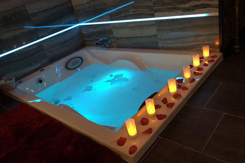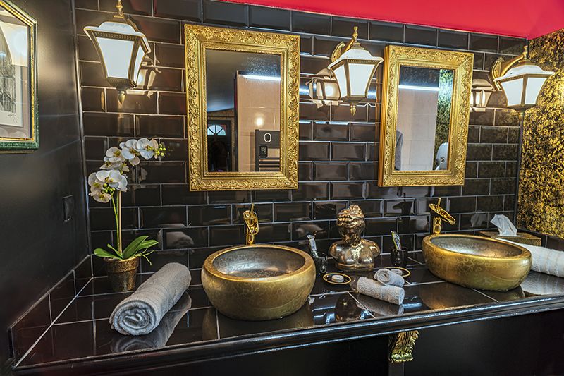 Une suite à la décoration baroque chic, aux éclairages tamisés.