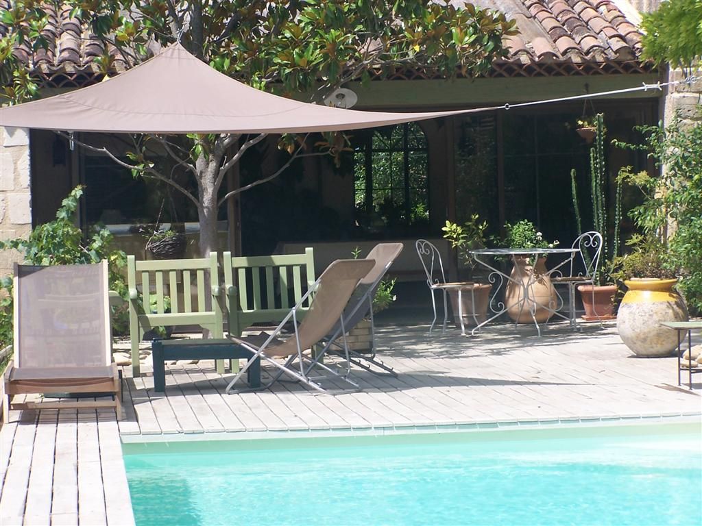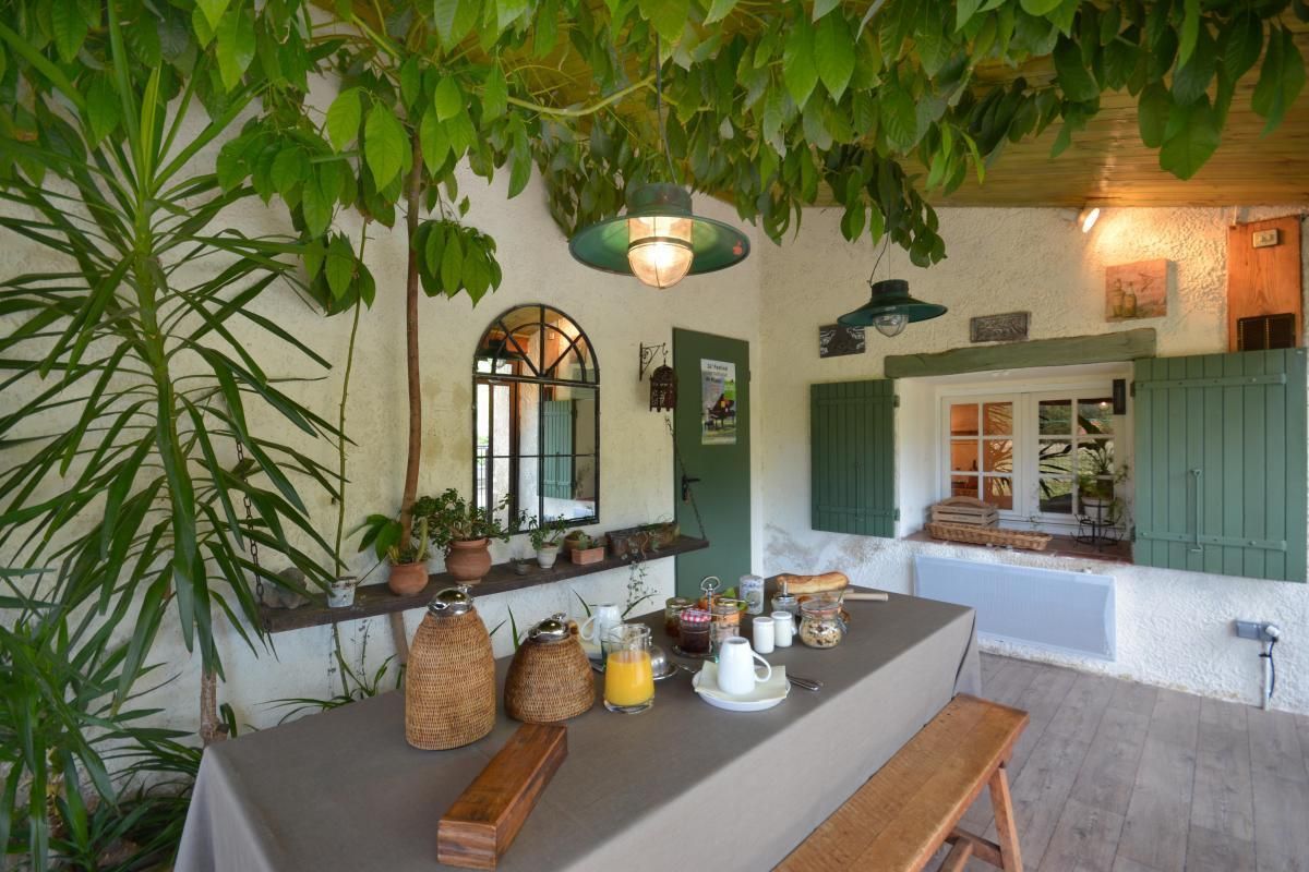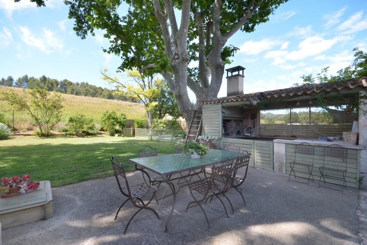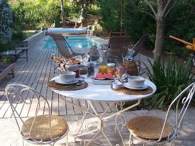 En campagne, jolie maison en pierre, fleurie et ombragée par des platanes centenaires. Piscine de 10x3,5 m avec horaires. Beau mobilier, décoré avec goût.<br> A proximité d'Aix en Provence, lieu de séjour idéal pour les promeneurs. Un autre meublé sur place.<br> A l'étage : une première chambre Côté Quille avec 1 lit 2 personnes en 160x200cm. Salle d'eau avec matériaux de qualité et décoration raffinée, WC, porte-serviettes chauffant.<br> Seconde chambre Côté Platanes avec 1 lit 2 personnes en 160x200cm. Salle de bains légèrement en contrebas avec décor marin, WC, porte-serviettes chauffant. Produits d'accueil variés de qualité.<br>Chambres climatisées. Coin séjour/bibliothèque avec TV/DVD sur le palier commun. Terrasse privative (16 m²) à l'étage avec salon de jardin.<br> Rez-de-chaussée : terrasse commune ombragée. Terrain clôturé. Véranda où les petits-déjeuners sont servis face à la piscine. Wi-Fi. Parking. Chambres non fumeur. Paiement par chèque, virement ou espèces. (pas de règlement par cartes) Retenu dans le Guide du Routard 2020 Nos meilleures chambres d'hôtes en France . Taxe de séjour : 1,10€ par adulte et par nuit.