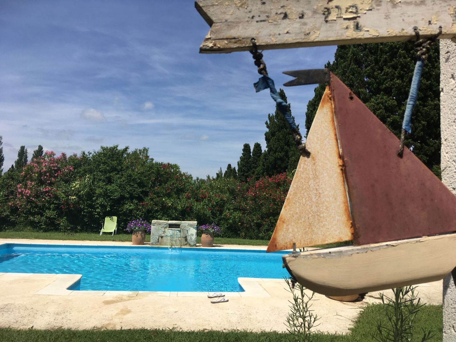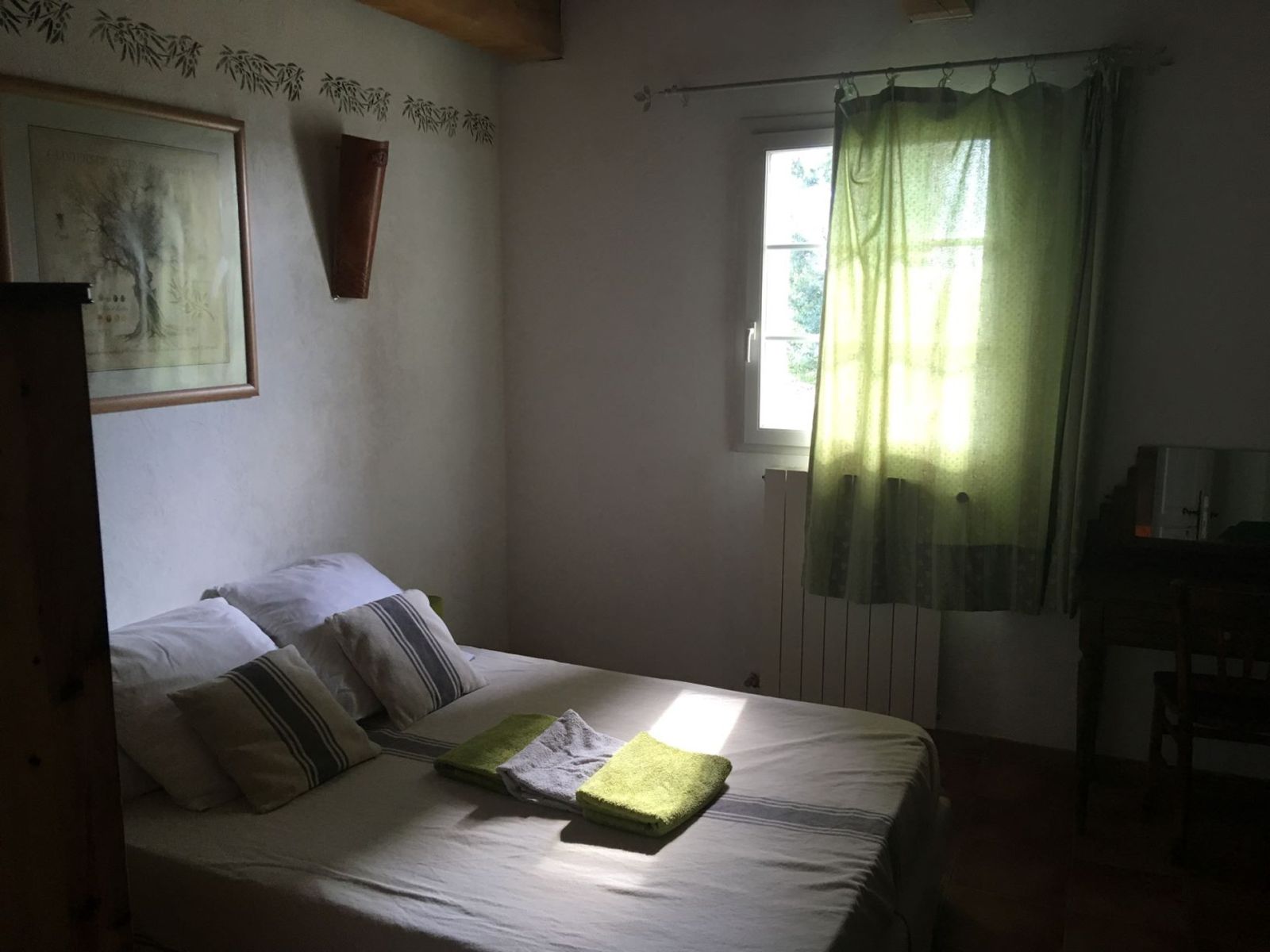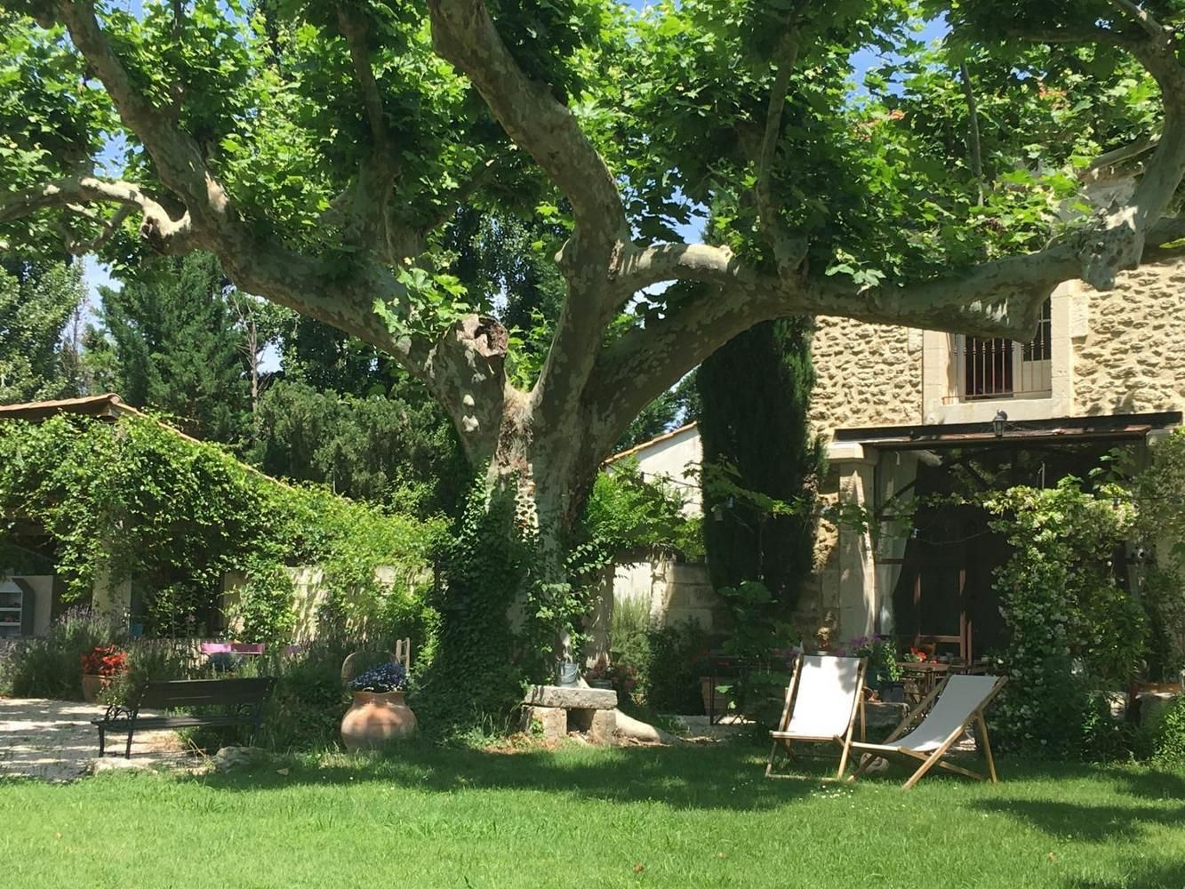 En pleine campagne mais idéalement situé entre Avignon et St Rémy de Provence, ancien mas rénové proposant 3 chambres avec entrée indépendante. Vous aimerez la terrasse ombragée par les platanes, la roseraie face au parking, la piscine (clôturée - 10x5 m - du 10/05 au 10/09) avec sa fontaine, sans oublier le couple d'ânes dans le pré sur le côté de la maison. Au rez-de-chaussée : salle de petit déjeuner avec coin salon (jeux de société) et télévision écran plat, coin cuisine accessible aux hôtes (micro-ondes, réfrigérateur, évier). A l'étage : les 3 chambres Soleil, Olivier et Vendanges, qui comportent chacune un lit 140x190cm et une petite salle d'eau avec douche et wc. Parking, boulodrome, trampoline, table de ping-pong. Lit et siège bébé sur demande. Wifi. Chauffage central.
