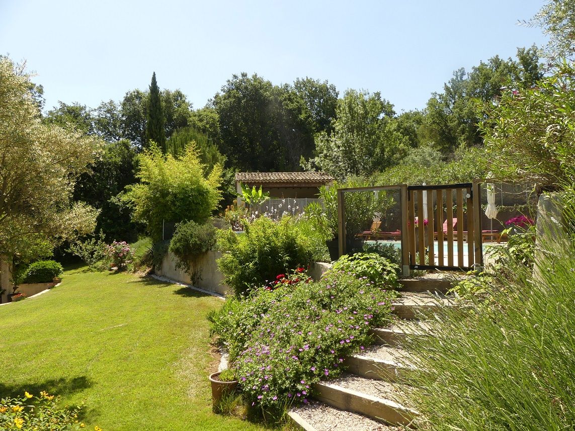 © Gîtes de France jardin Mas du Biaou et la piscine sur la droite
