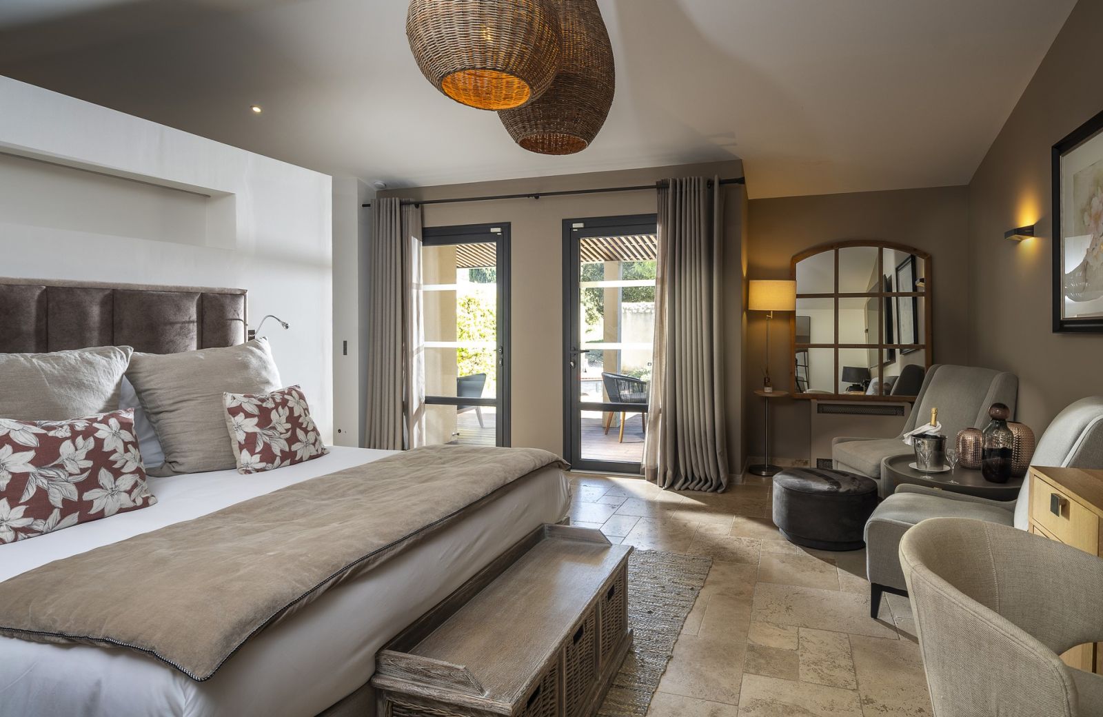 Le Domaine s’articule autour de 15 suites et chambres spacieuses, toutes ouvertes sur la nature environnante. Inspirées de l’esprit des mas provençaux, elles allient charme traditionnel et confort moderne : pierres apparentes, bois patiné et touches contemporaines créent une atmosphère douce et apaisante. Chaque chambre dispose d’une terrasse privative, certaines disposant d'un jacuzzi extérieur, d’autres une vue spectaculaire sur les champs de lavande ou les oliviers. La literie haut de gamme, le choix d’oreillers et les senteurs personnalisées assurent des nuits paisibles et réparatrices dans un calme absolu.
