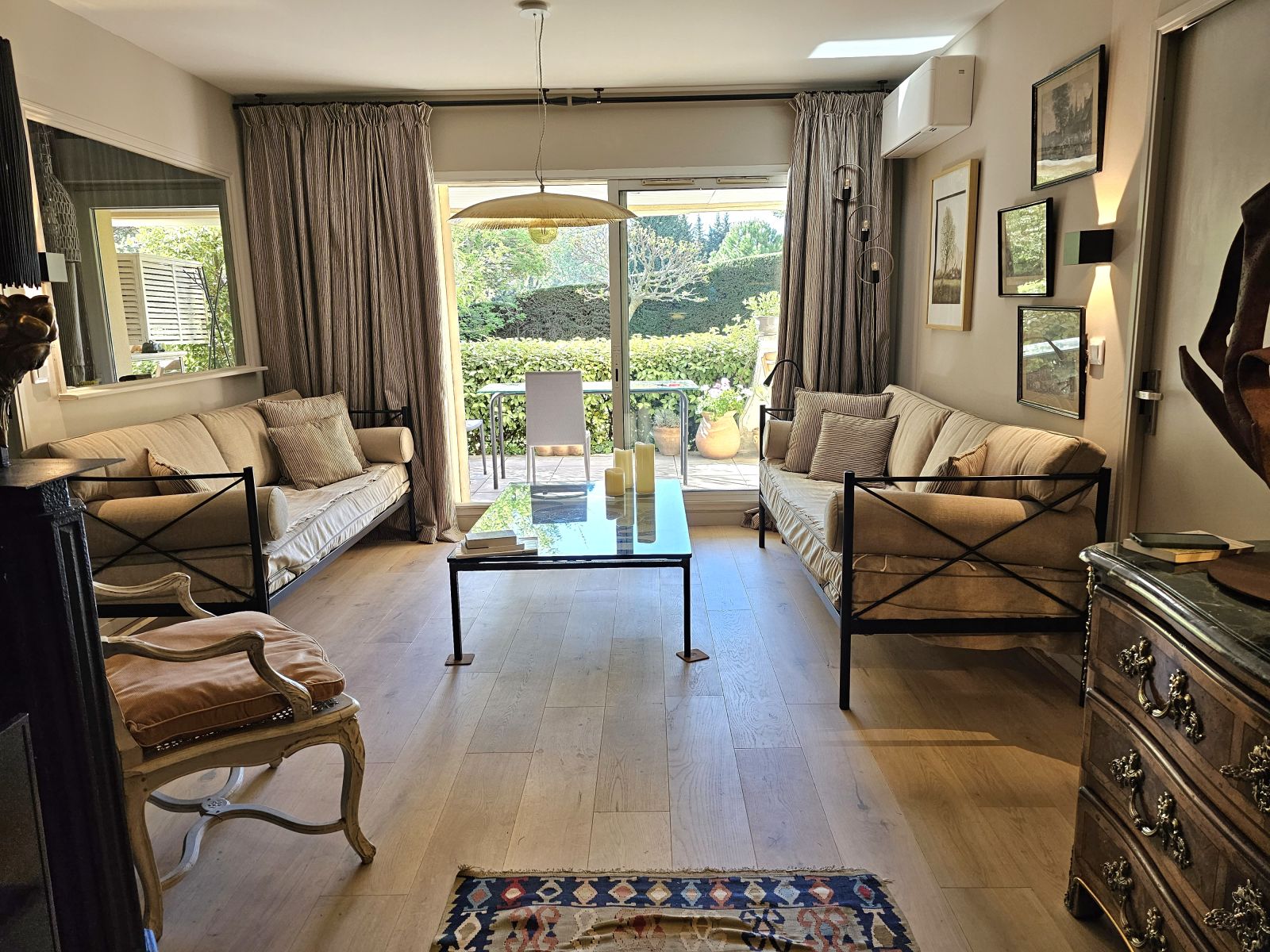 Appartement raffiné et avec grande terrasse sur jardin au rez-de-chaussée d'une petite résidence privée très calme, à 500m du centre historique d'Aix-en-Provence.