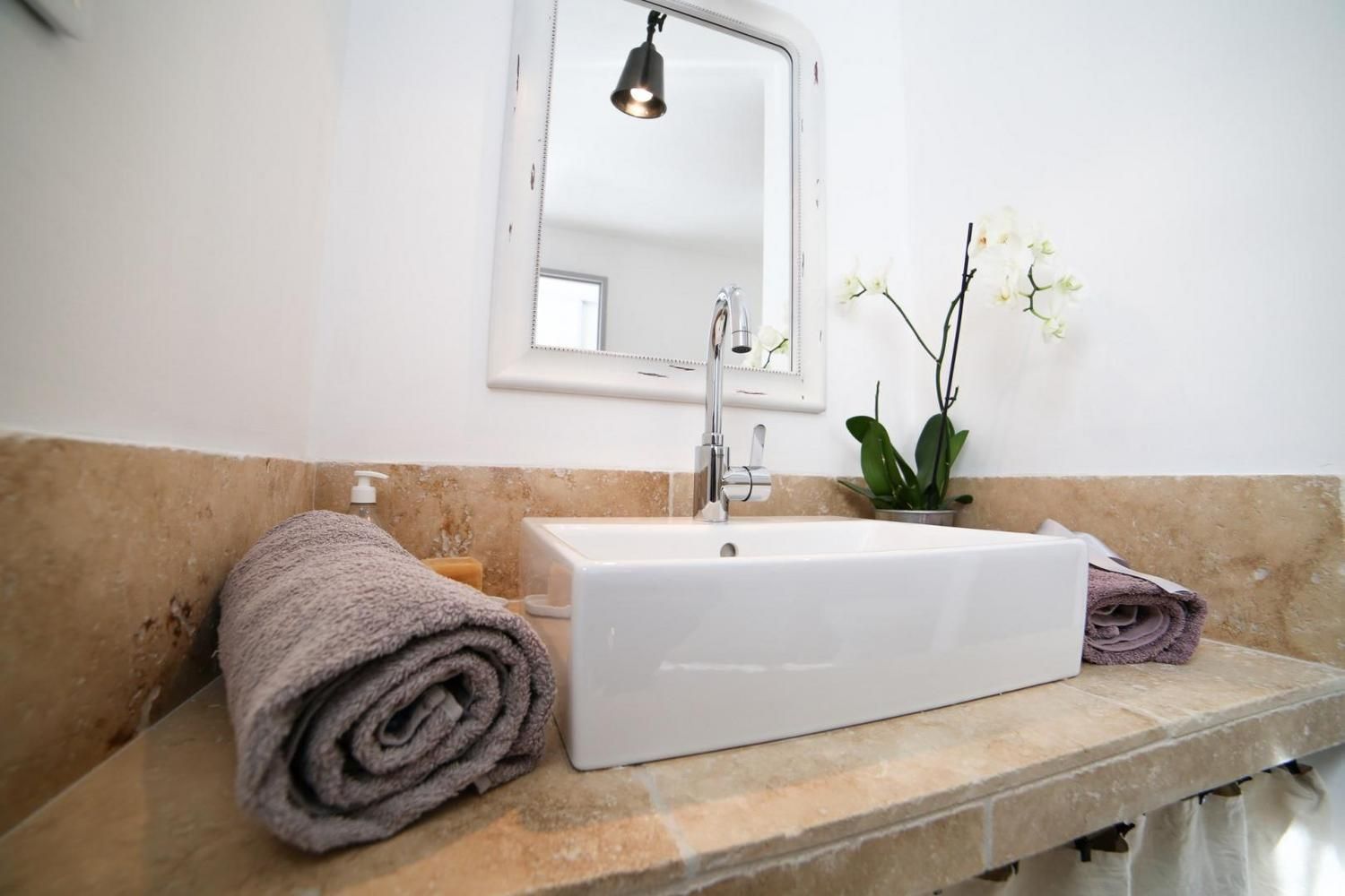 Au coeur de la campagne aixoise, dans une grande propriété sécurisée avec portail à digicode, deux cottages mitoyens dans une dépendance du Mas des propriétaires (aucun vis à vis) jardin privatif clôturé, climatisation, piscine clôturée à partager (4.40x10m, profondeur 1.60m,ouvert de mai à octobre), abris voiture. Maison en duplex au style élégant et contemporain pour 2 personnes ( possibilité bébé jusqu'à 12 mois ) Au rez-de-chaussée : entrée indépendante avec grands placards de rangement, lave-linge et lave-vaisselle. Séjour avec belle hauteur sous plafond et poutres apparentes, coin cuisine intégrée et équipée (four, plaque vitrocéramique, hotte aspirante, micro-ondes, cafetière de type Nespresso et traditionnelle à filtres . Espace repas. Salon avec canapé convertible), TV écran plat, bureau, chaîne hifi, lecteur DVD. Salle d'eau avec jolie douche à l'italienne (mitigeur thermostatique), vasque en pierre, porte-serviettes chauffant, WC. A l'étage : chambre avec lit 2 personnes (160x200cm séparables). Depuis le séjour, accès à un jardin privatif de 90 m² avec salon de jardin, pergola, barbecue entièrement clôturé avec petit portillon. Choix soigné des matériaux de construction : pierre de Bourgogne, travertin, fer forgé et boiserie. Parking ombragé et sécurisé avec abris voiture Tout inclus : draps, linge de toilette, chauffage. Ménage en option. Internet (wifi). Mise à disposition équipement pour bébé : lit, chaise, table à langer, baignoire ... Tarif personne/ enfant supplémentaire à partir de 2 ans : 19€ par personne et par nuit. Le cottage est idéalement situé pour découvrir Aix-en-Provence, à 5,5 km seulement du centre-ville (cours Mirabeau) mais pourtant en campagne, dans un environnement préservé. Club sportif à 200m avec nombreuses activités possibles (tennis, golf) et restaurant T