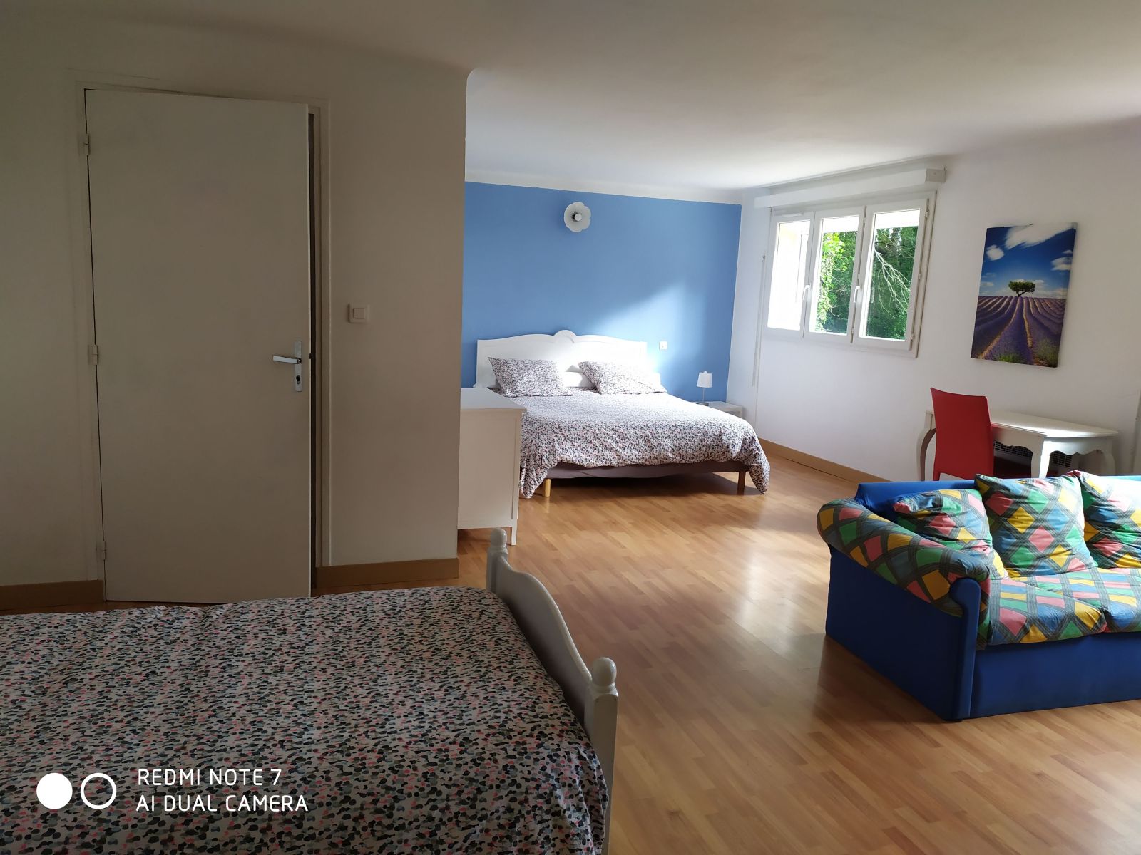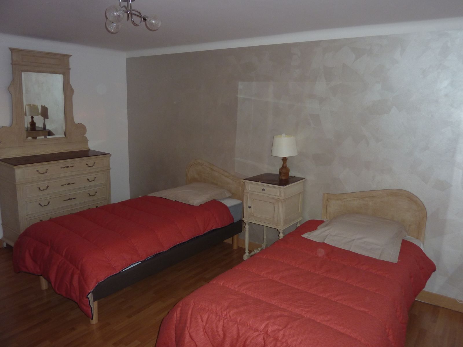 - Chambre 1 : lit 140, armoire, commode, fauteuil.