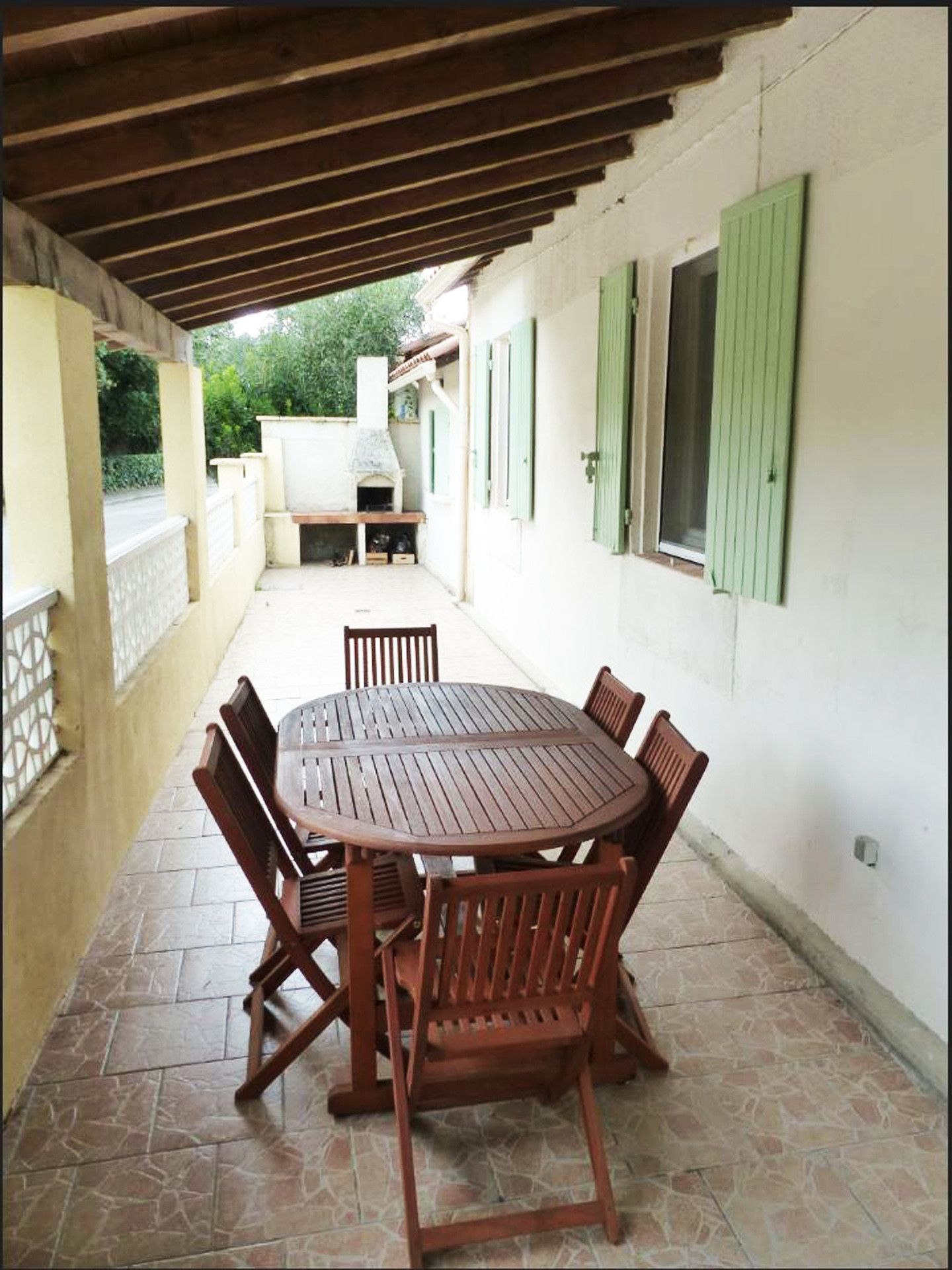 Dans le hameau de Gageron sur la route des Salins de Giraud au sud d'Arles, maison totalement indépendante sur terrain entièrement clôs. Une terrasse, couverte côté sud, entoure la maison sur 2 côtés.