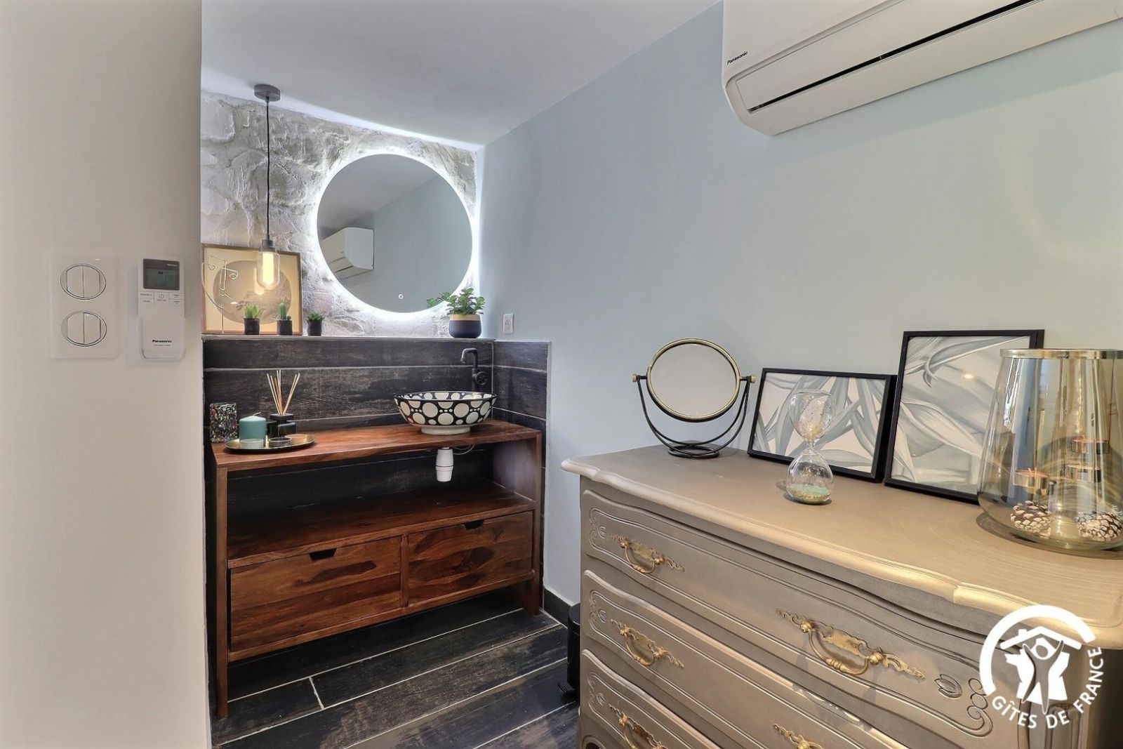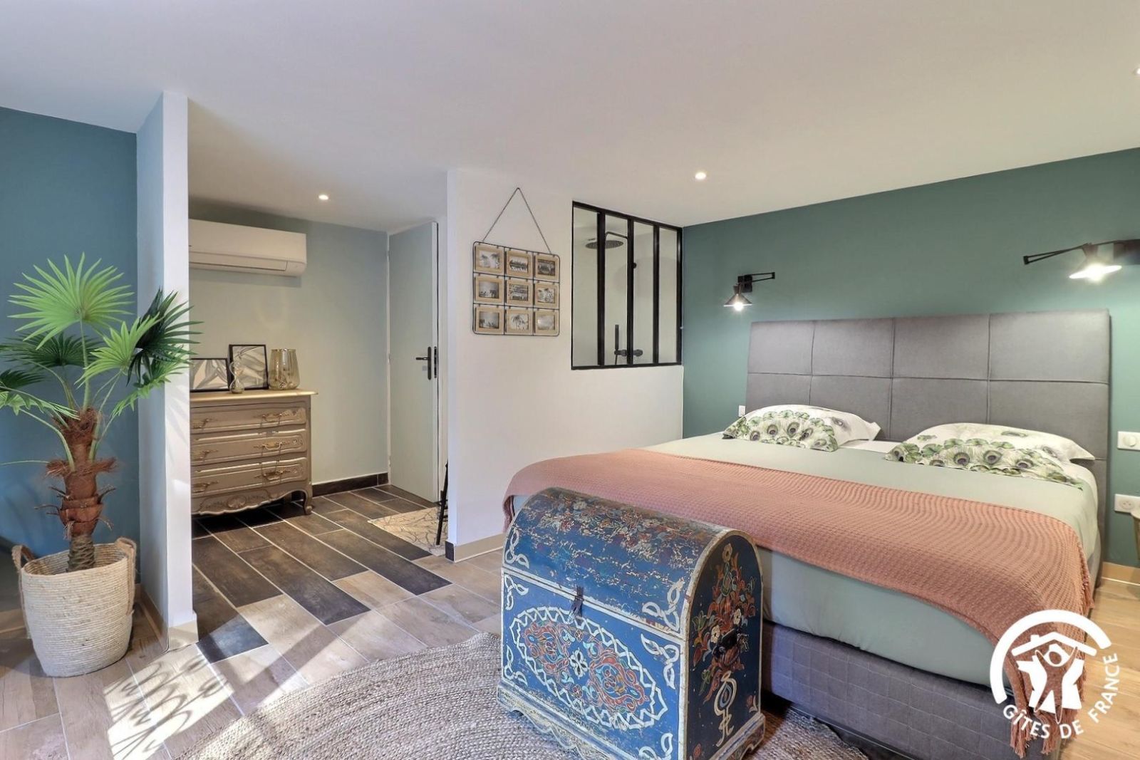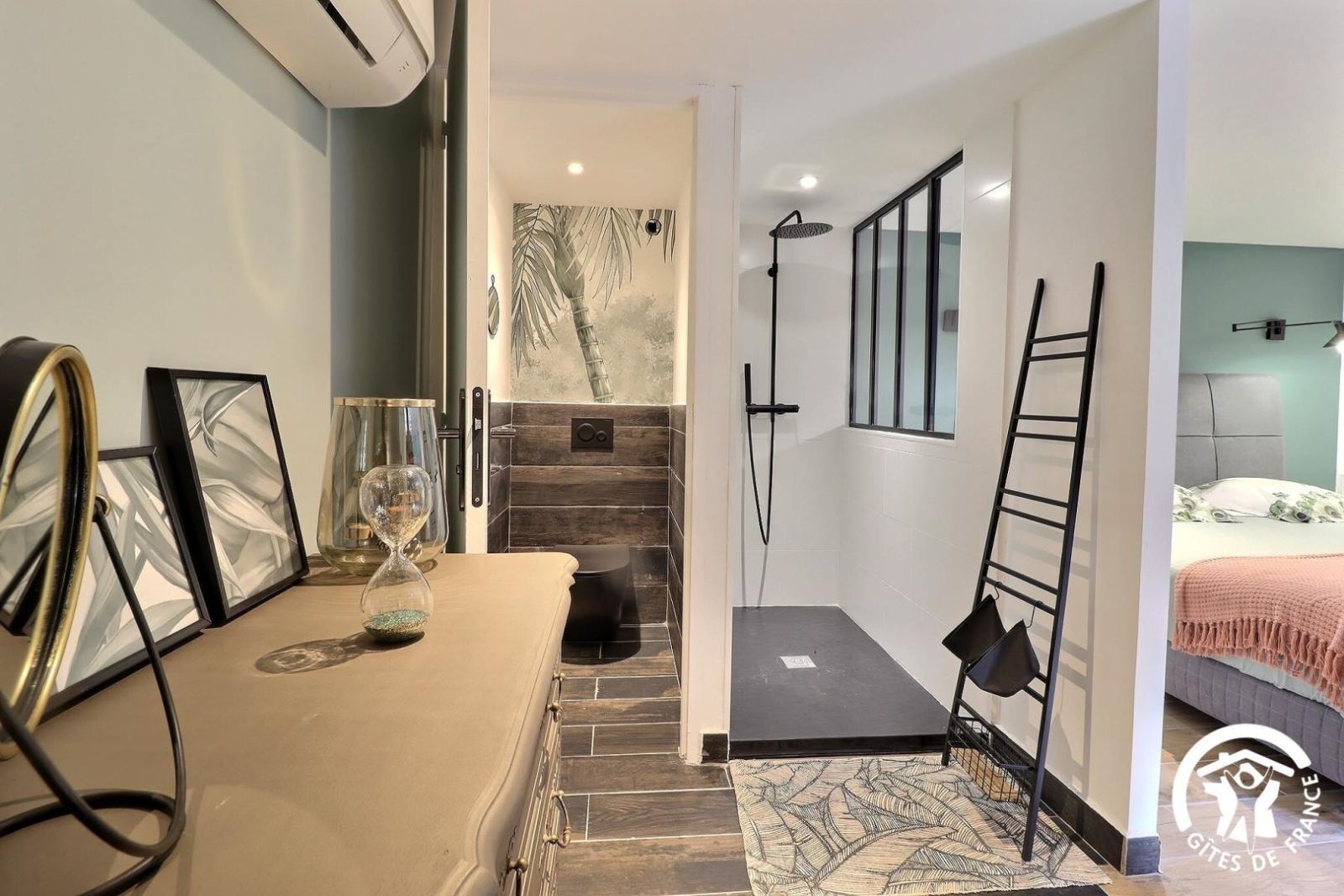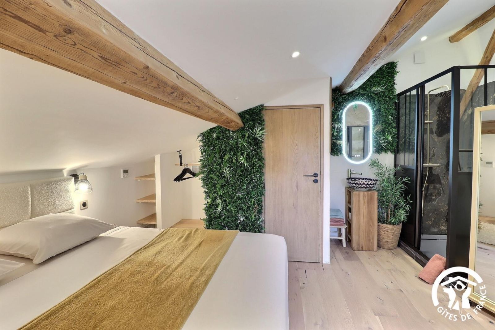 - Chambre avec 1 lit 180x200cm, salle d'eau privative avec douche à l'italienne, vasque et WC indépendant.