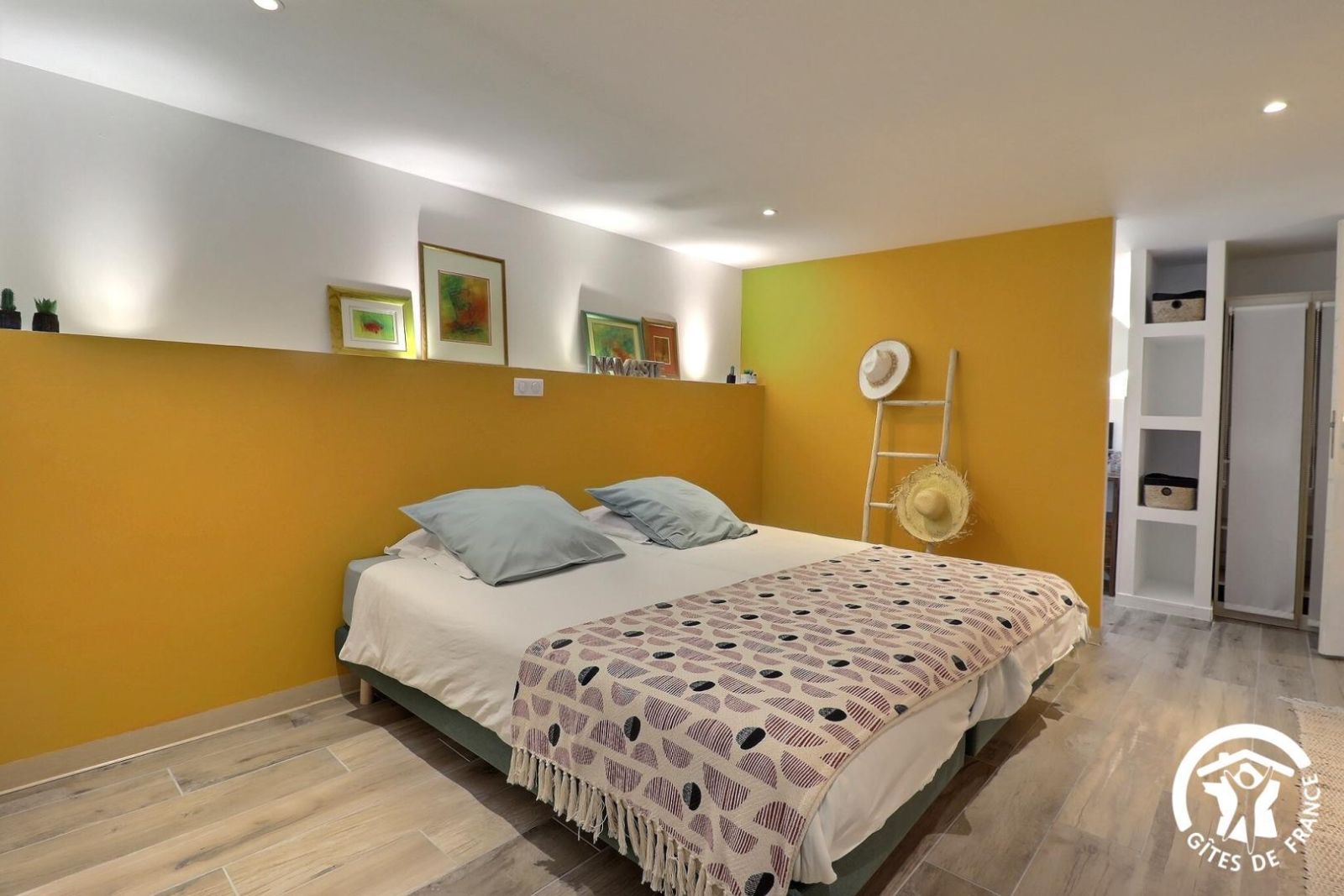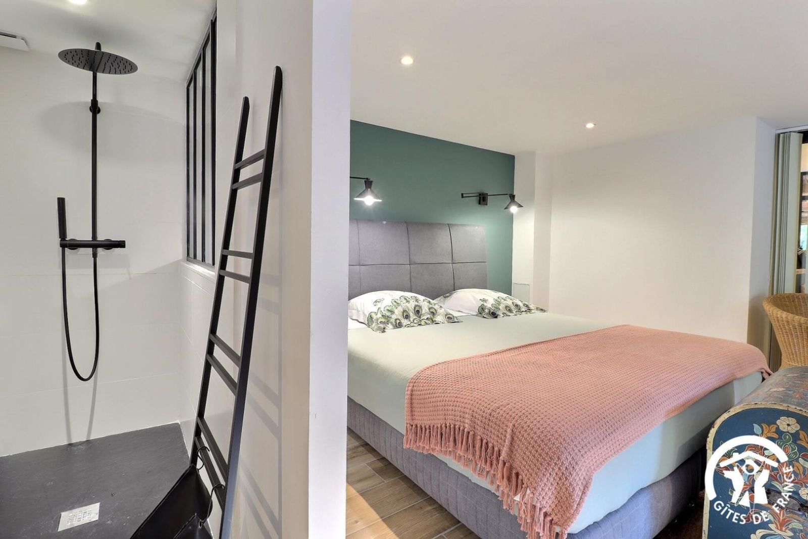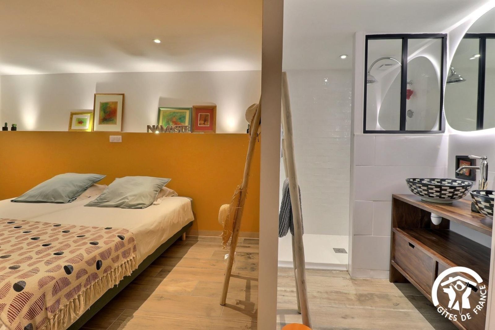 - Chambre se situant à l'étage, avec un lit 160x200cm et une salle d'eau privative (douche, vasque et wc indépendant).