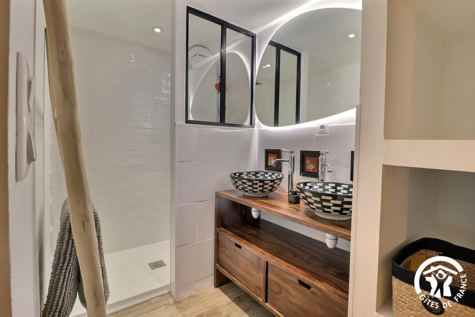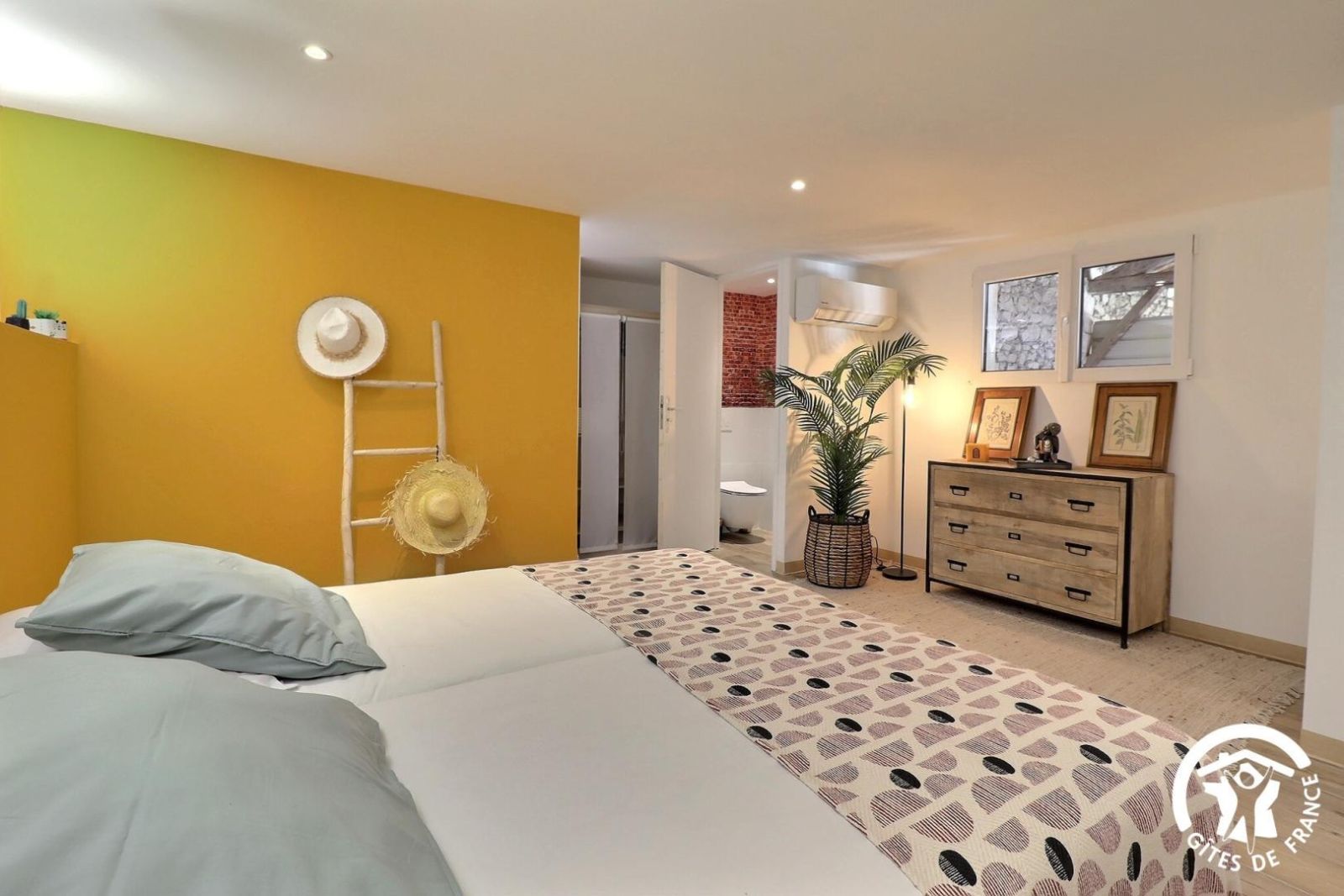 - Chambre avec 2 lits 90x200cm jumelables en lit 180x200cm, salle d'eau privative avec douche à l'italienne, double vasque et WC indépendant