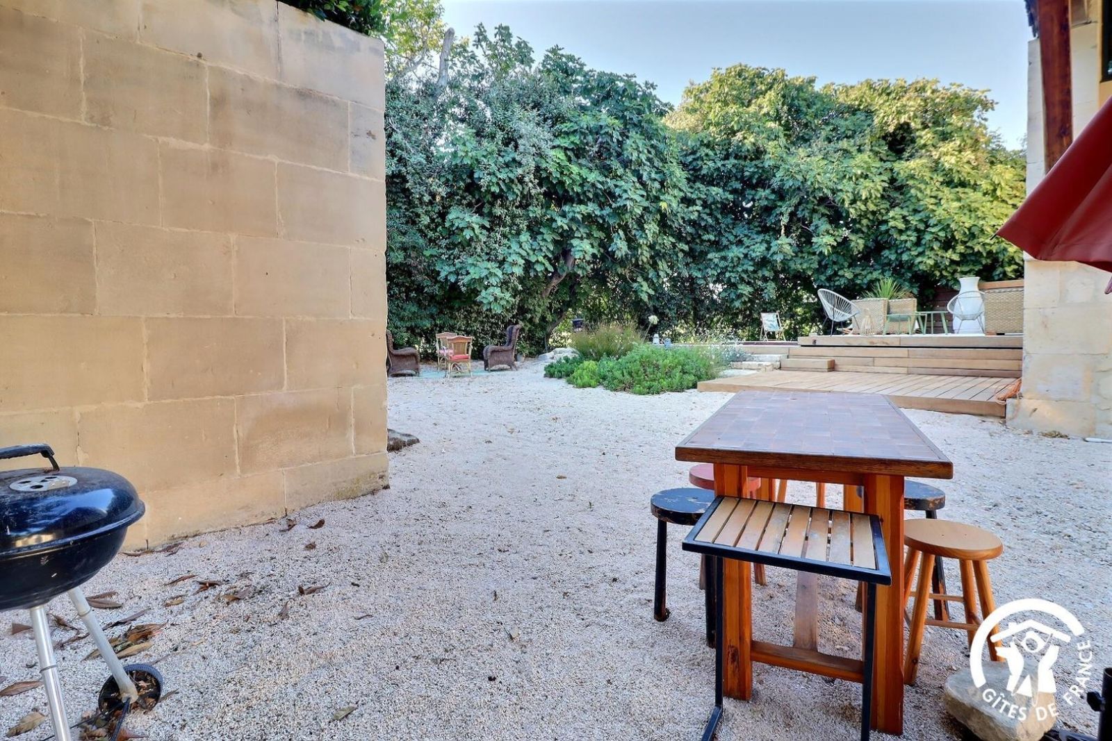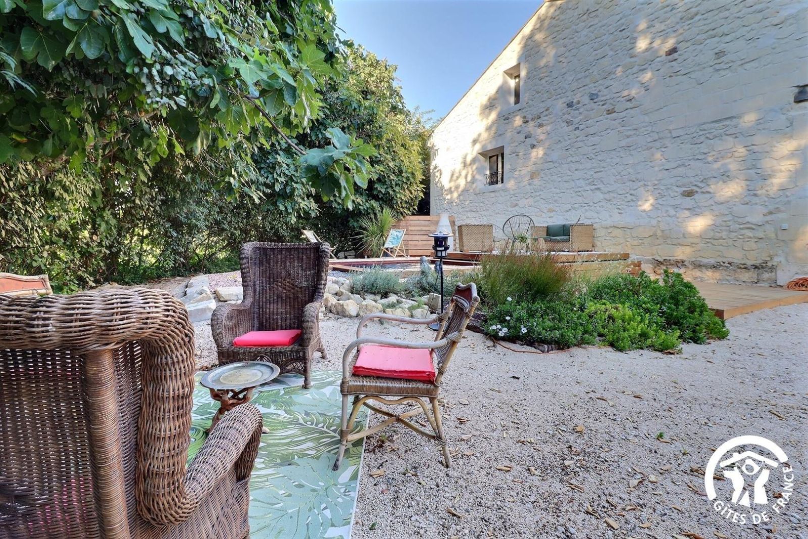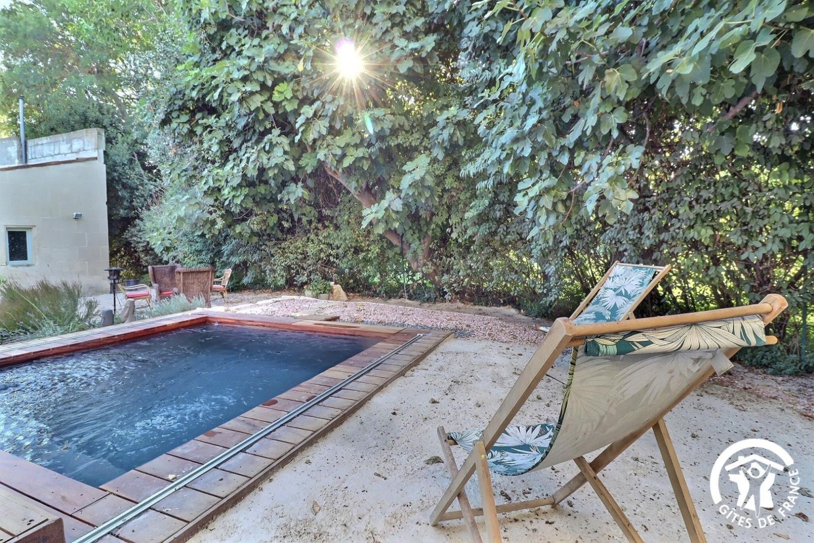 Le gîte est une dépendance située à l'arrière de la maison des propriétaires, séparée par un cour gravillonnée ainsi qu'une piscine privative de 3x3m sécurisée par deck (ouverte de mi-juin à mi-septembre), un coin salon de détente sur une terrasse en bois et un coin repas avec barbecue.