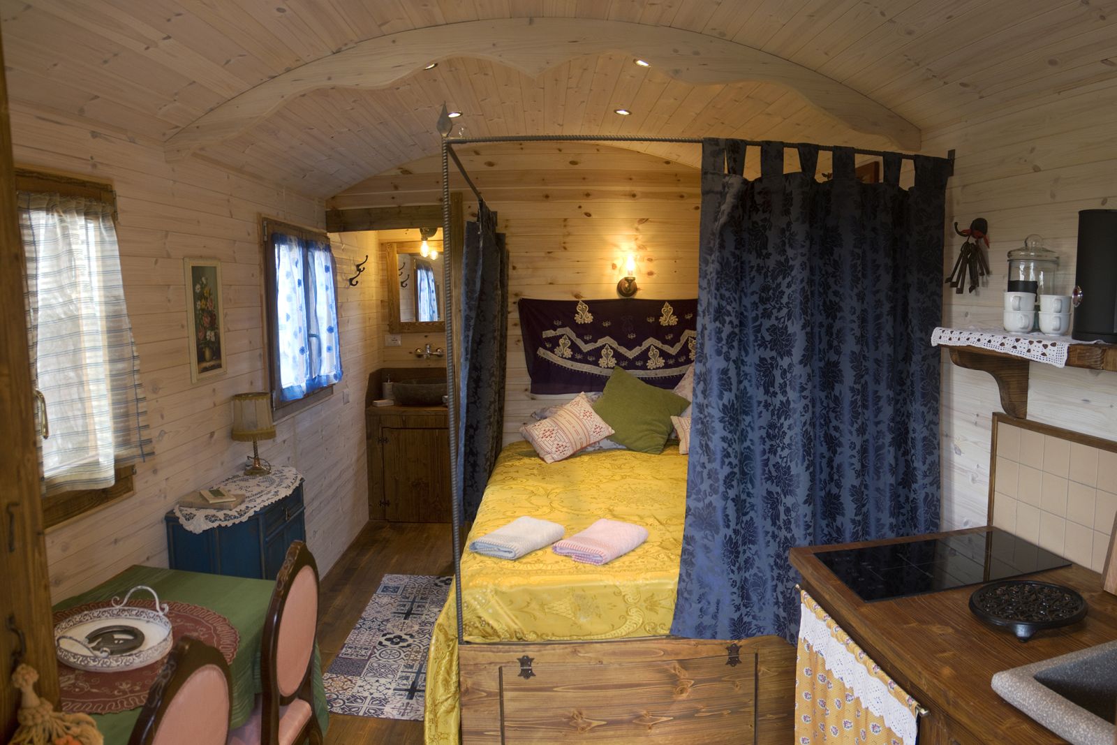 La Chambre Gitane est une roulotte en bois inspirée de la tradition gitane de la Camargue.