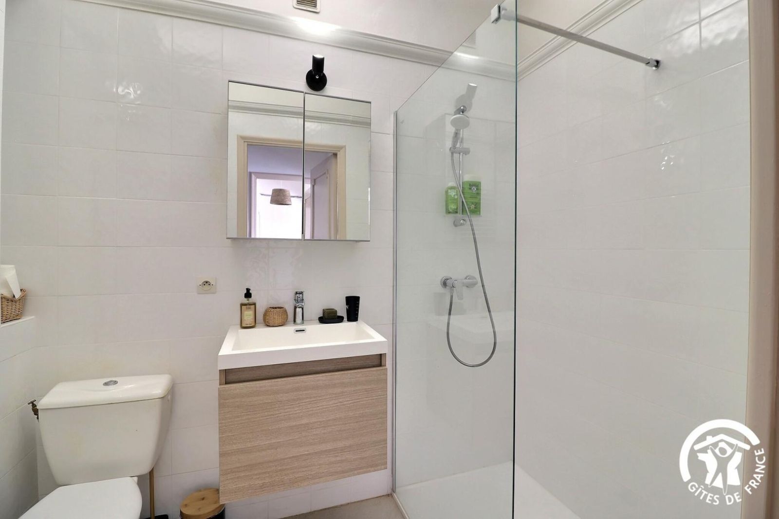 - Salle d'eau douche à l'italienne, vasque et WC.